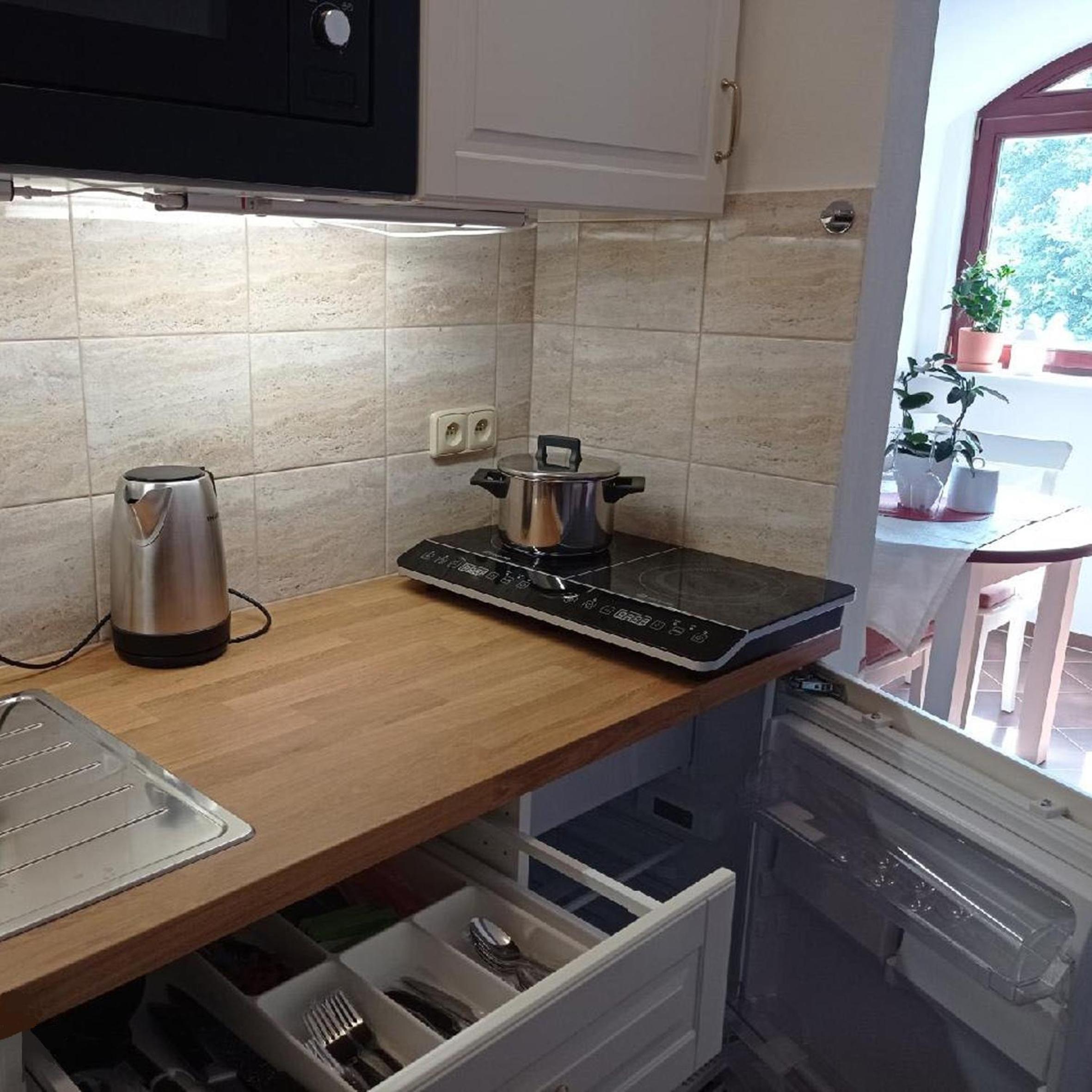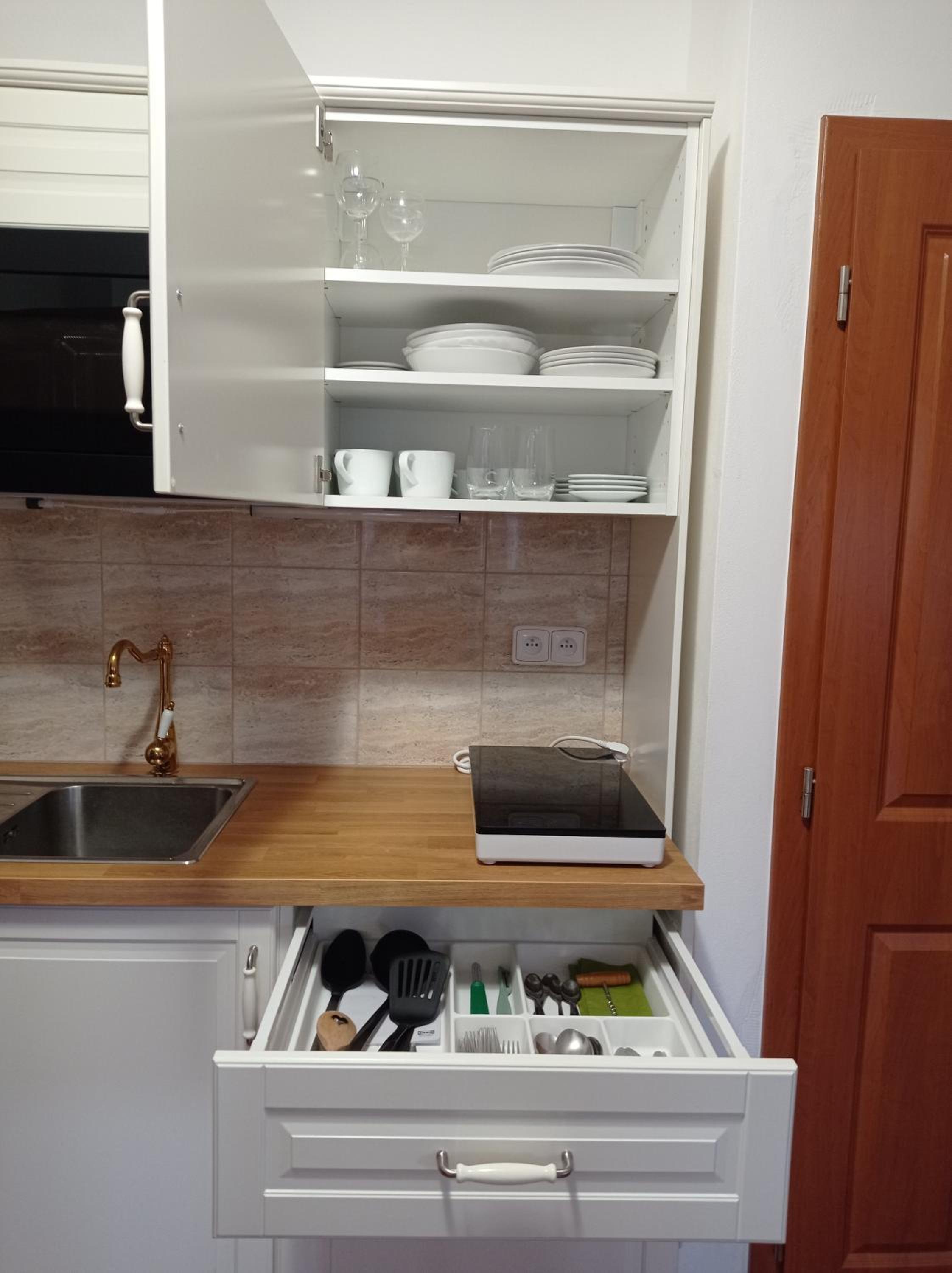 Convenient Kitchenette Facilities: Enjoy the flexibility of preparing your meals with stovetop and kitchenware provided.