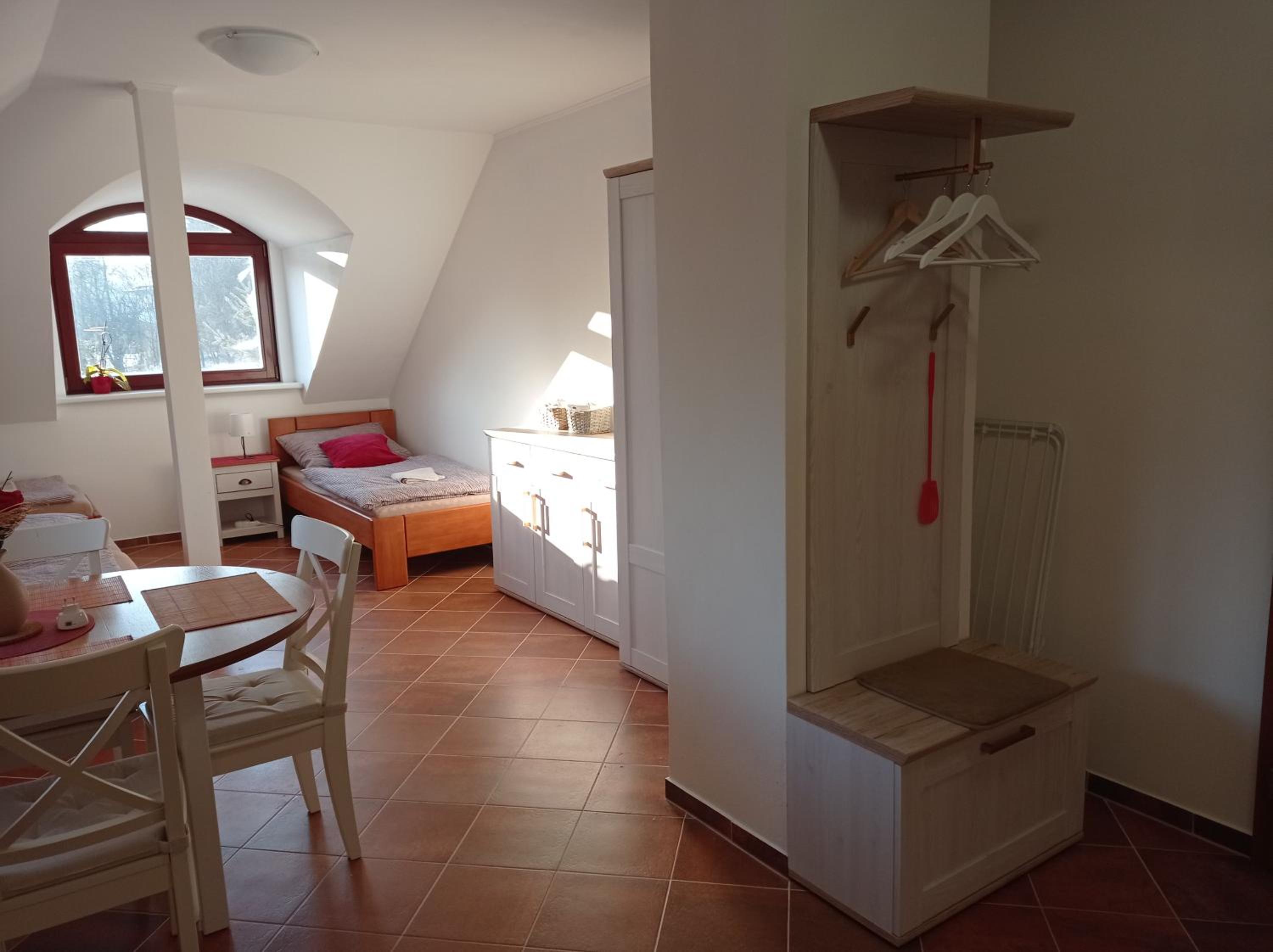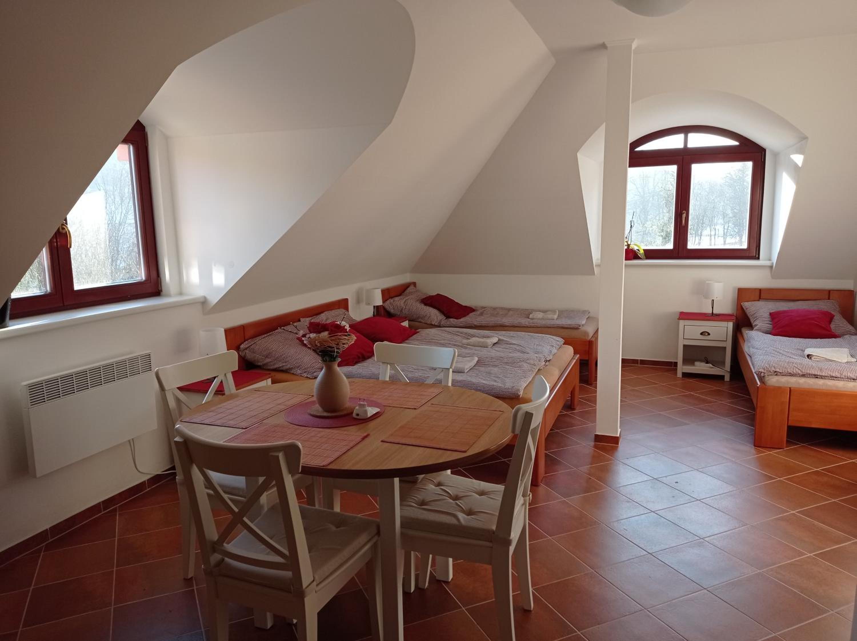 Velice pěkné ubytování, vkusně a pohodlně zařízené. Pan majitel ochotný, umožnil nám uskladnit kola v jeho garáži.