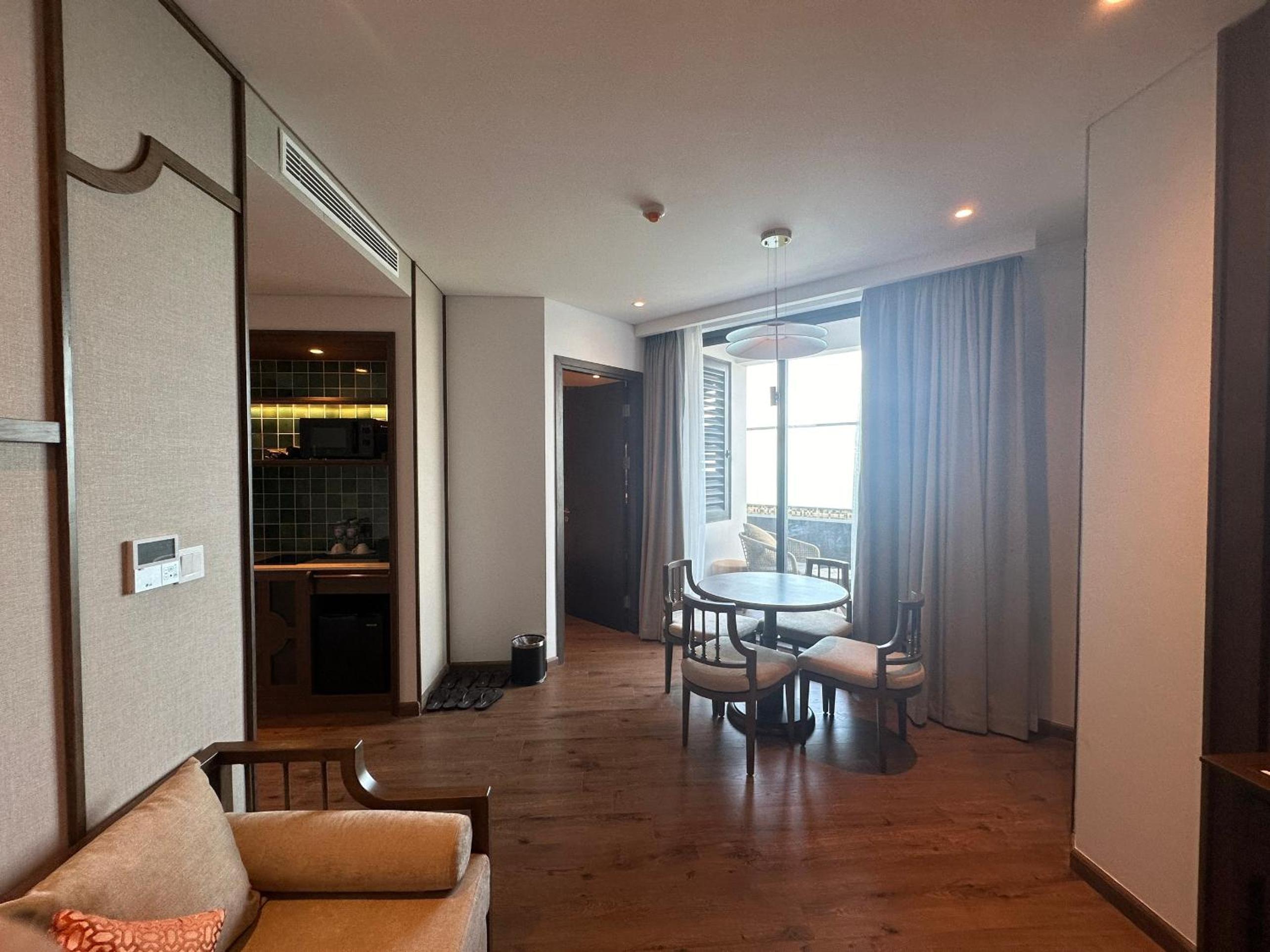 View biển tuyệt đẹp, đúng biển xanh, nắng vàng. phòng ốc sạch sẽ, thơm tho, nhân viên nhãn nhặn, cẩn thận. đồ giặt xong gấp gọn, gói lại gọn gàng, thơm tho. nguyên cái đó xứng đáng 10 điểm luôn rồi