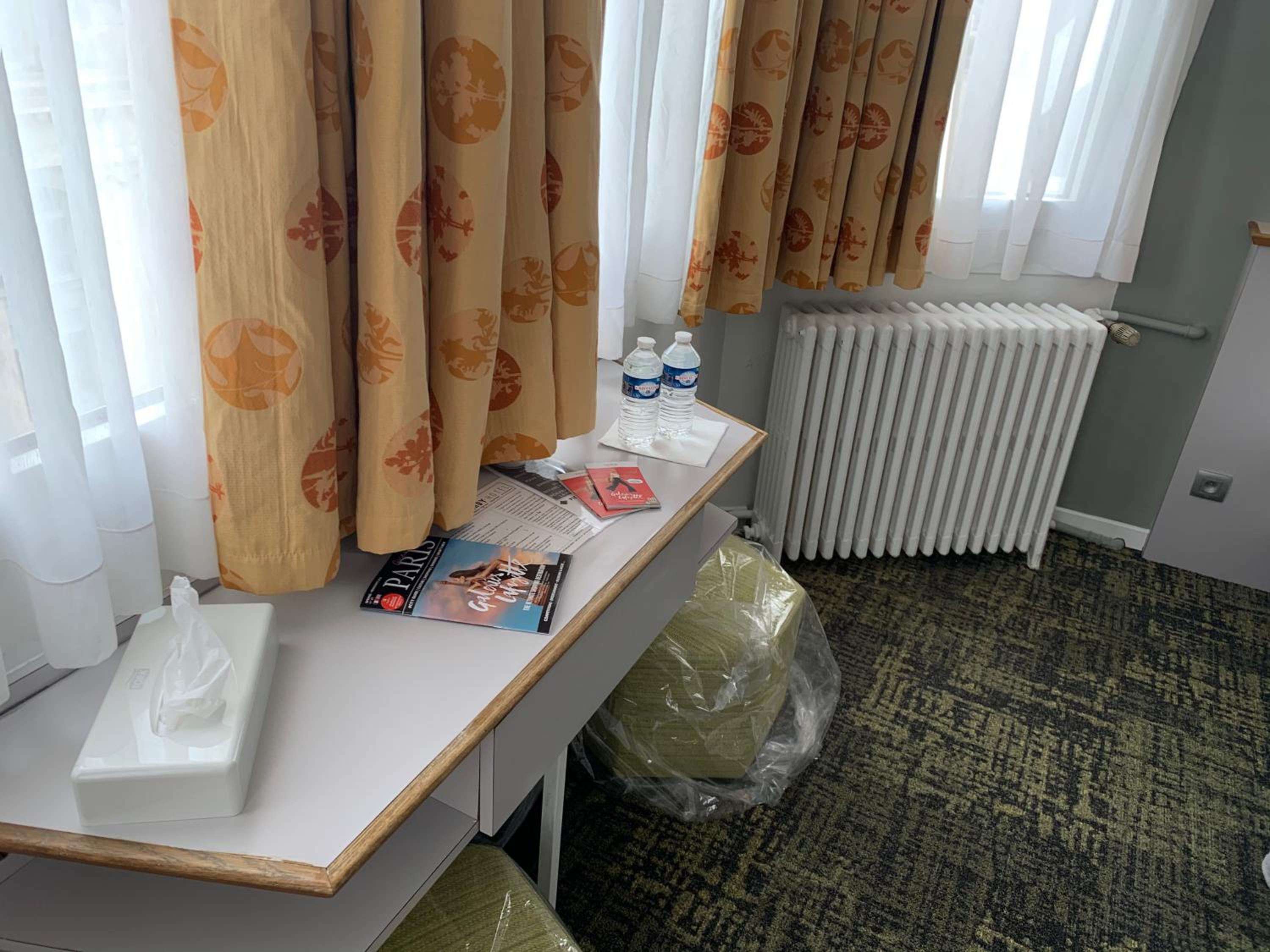 El conjunto : moqueta en los suelos 😑la habitación muy pequeña ,el baño pequeñísimo (el secador no funcionaba, pedimos otro y todavía estamos esperando ,la cisterna perdía agua constantemente ,se lo comentamos pero no hicieron nada) y el desayuno bien (pero solo te servían un croissant 🥐o napolitana por persona)