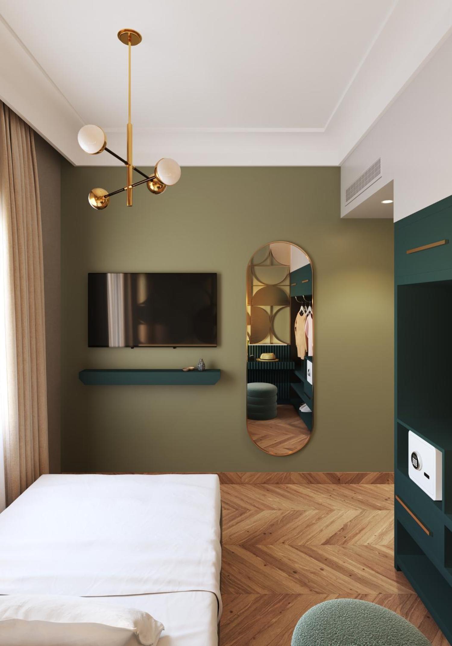 The hotel provides air-conditioned rooms with modern amenities including a desk, safety deposit box, and a flat-screen TV.