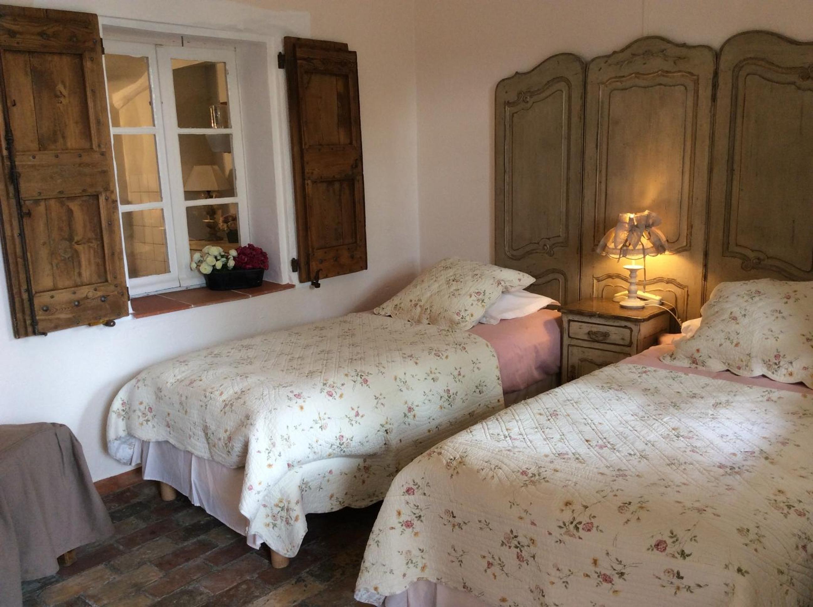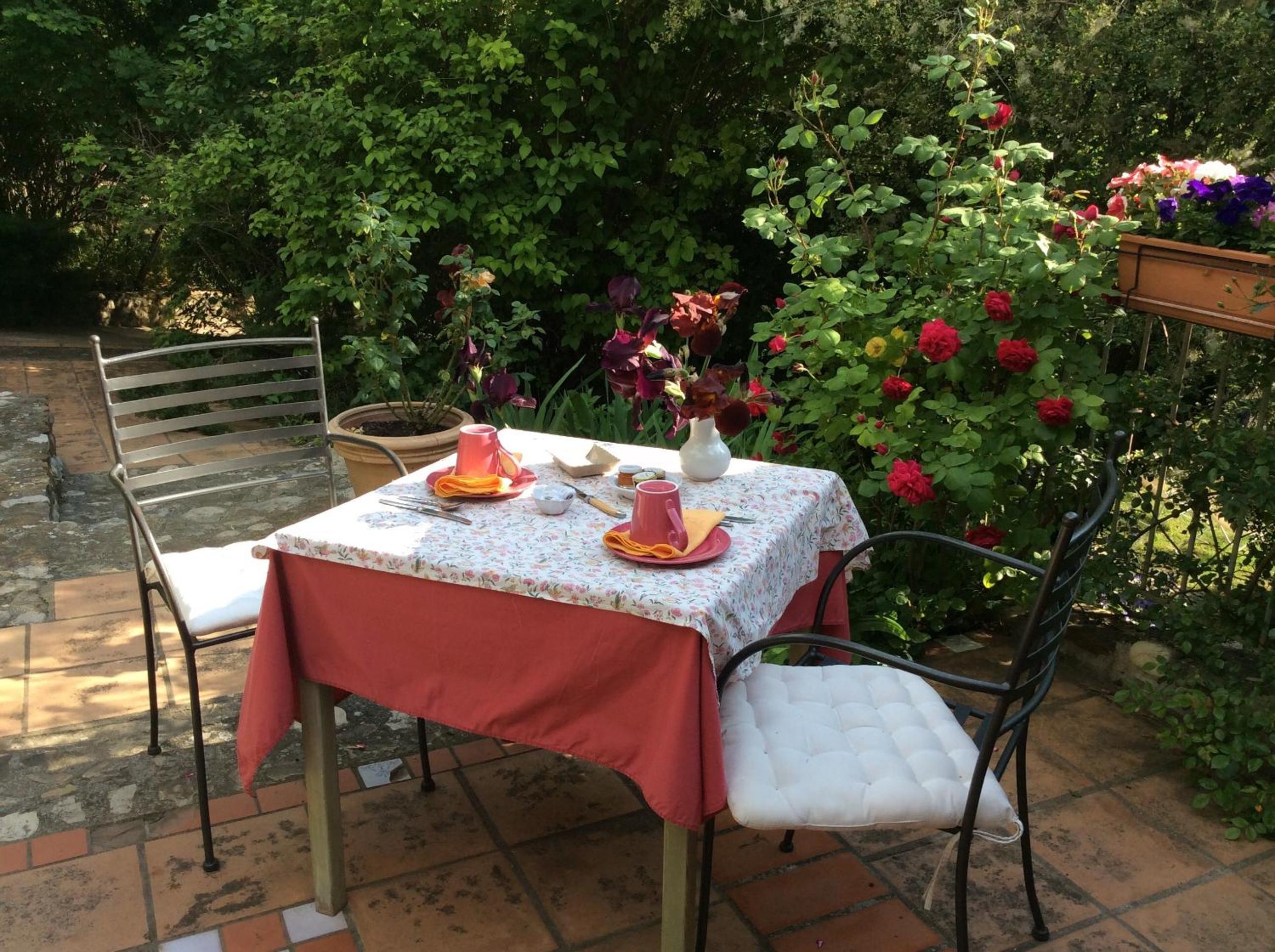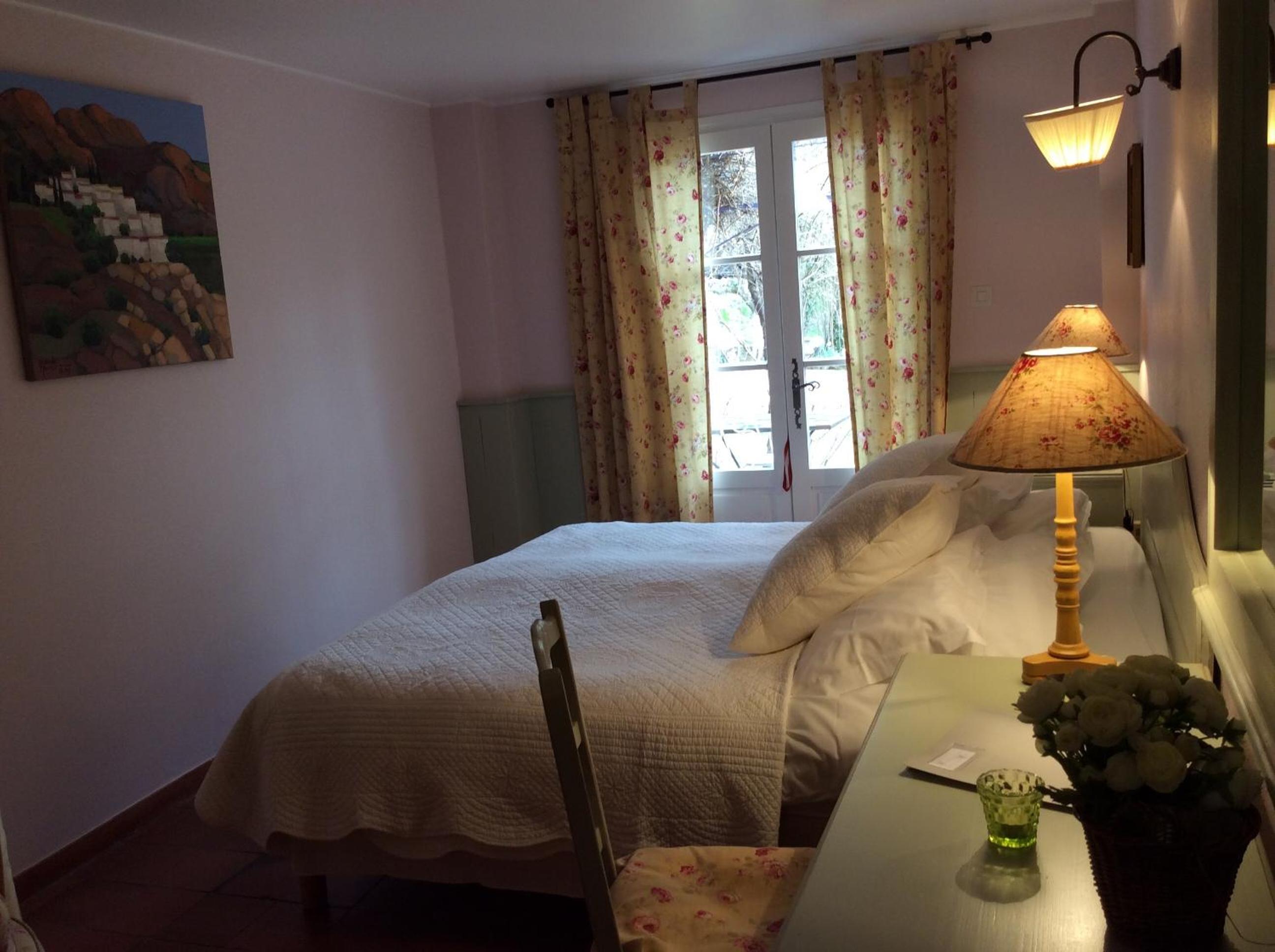 Traditional-Style Rooms with Private Terrace: Enjoy the quaint charm of traditional-style rooms at Clos des Iris, each featuring a private terrace overlooking the beautiful flowered garden.