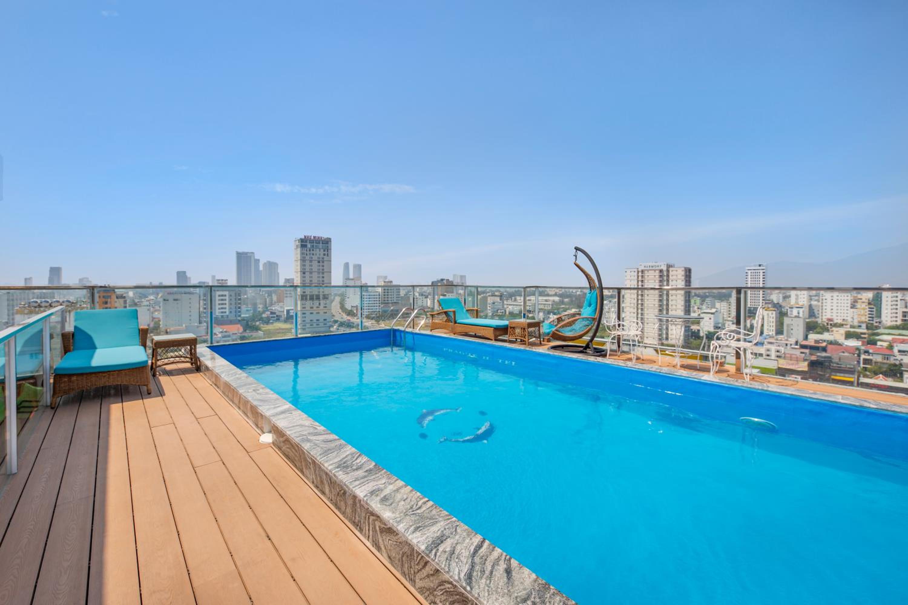 Prague Hotel in Da Nang offers an indulgent experience with an outdoor swimming pool, fitness centre, and a shared lounge. Guests can also unwind on the terrace while enjoying stunning city views.