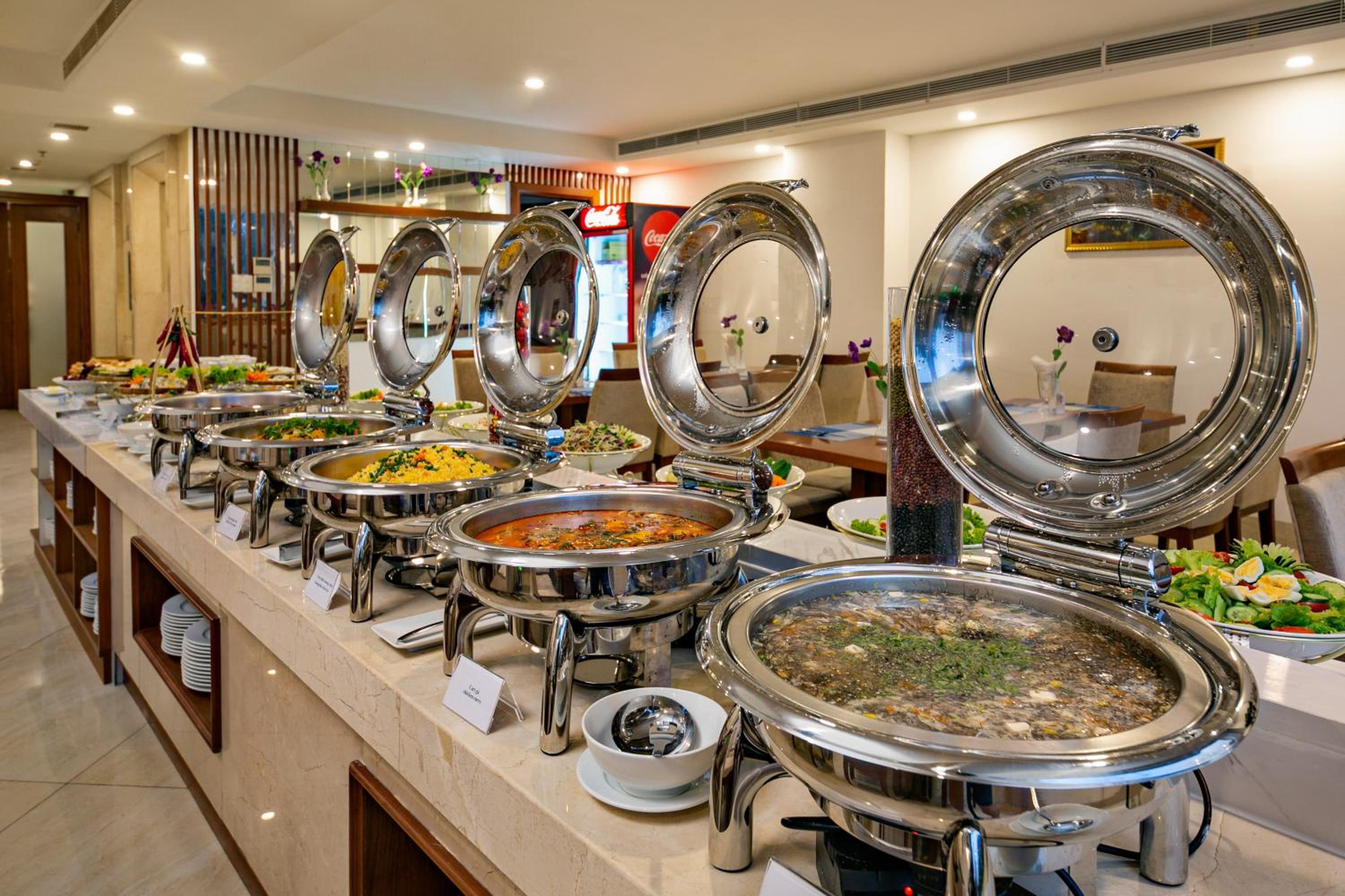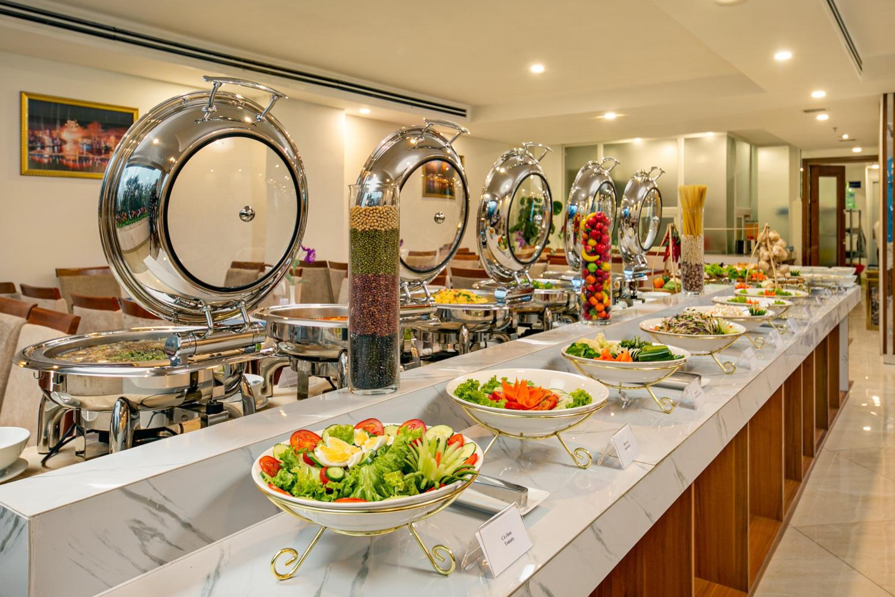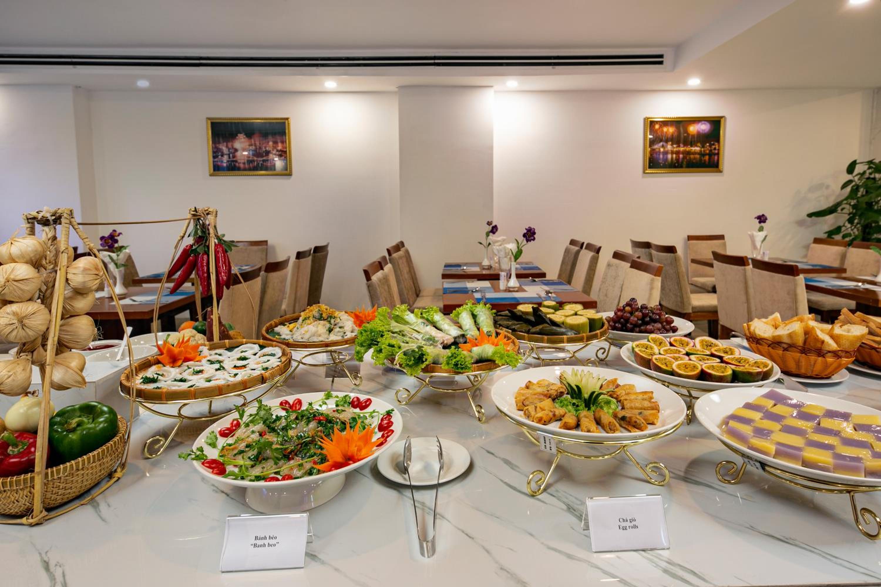 A reggeli változatos: minden reggel van friss gyümölcs, pho leves, friss péksütemények és kenyerek, kávé/tea, gyümölcslé, tojásétel, húsféle.