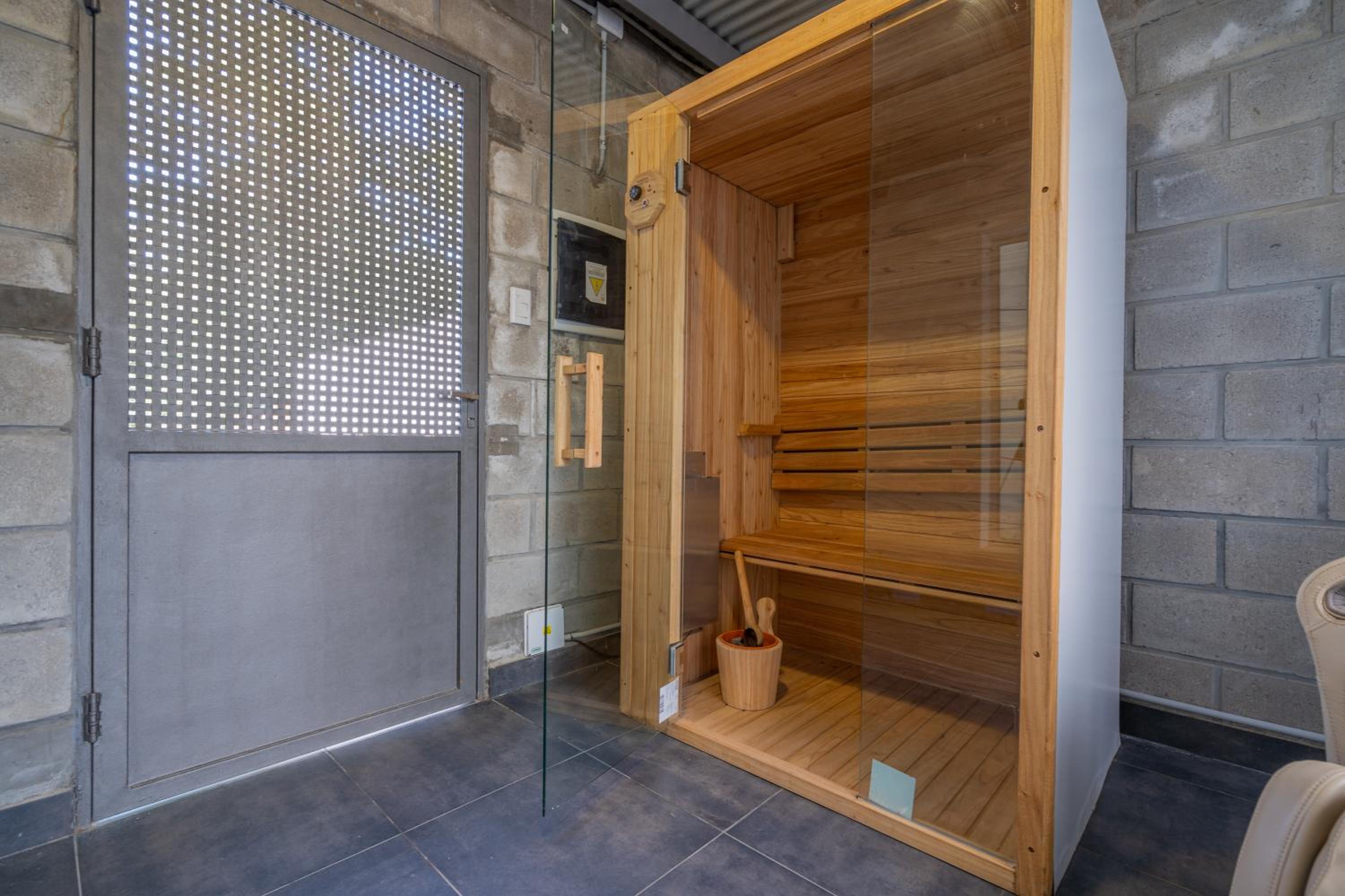 Indulge in relaxation at the wellness area featuring a sauna and hot tub. Unwind on the terrace or take a refreshing dip in the outdoor swimming pool.