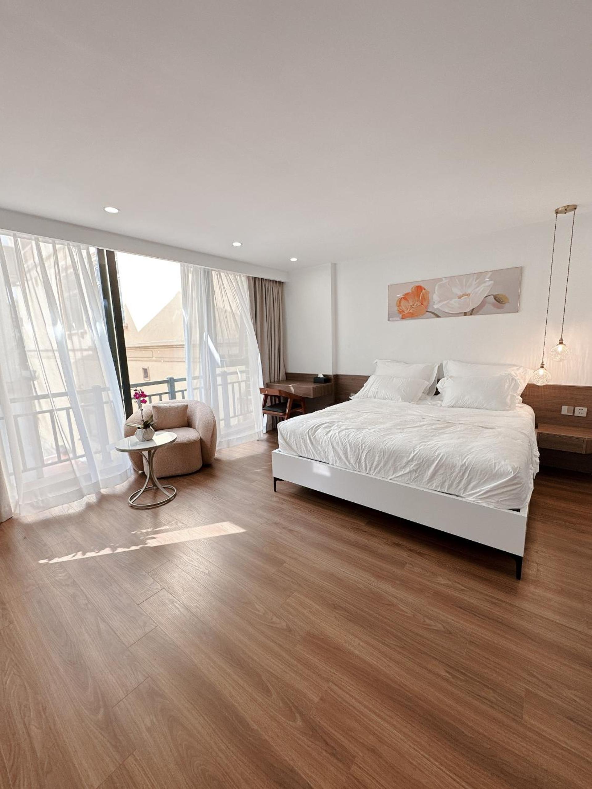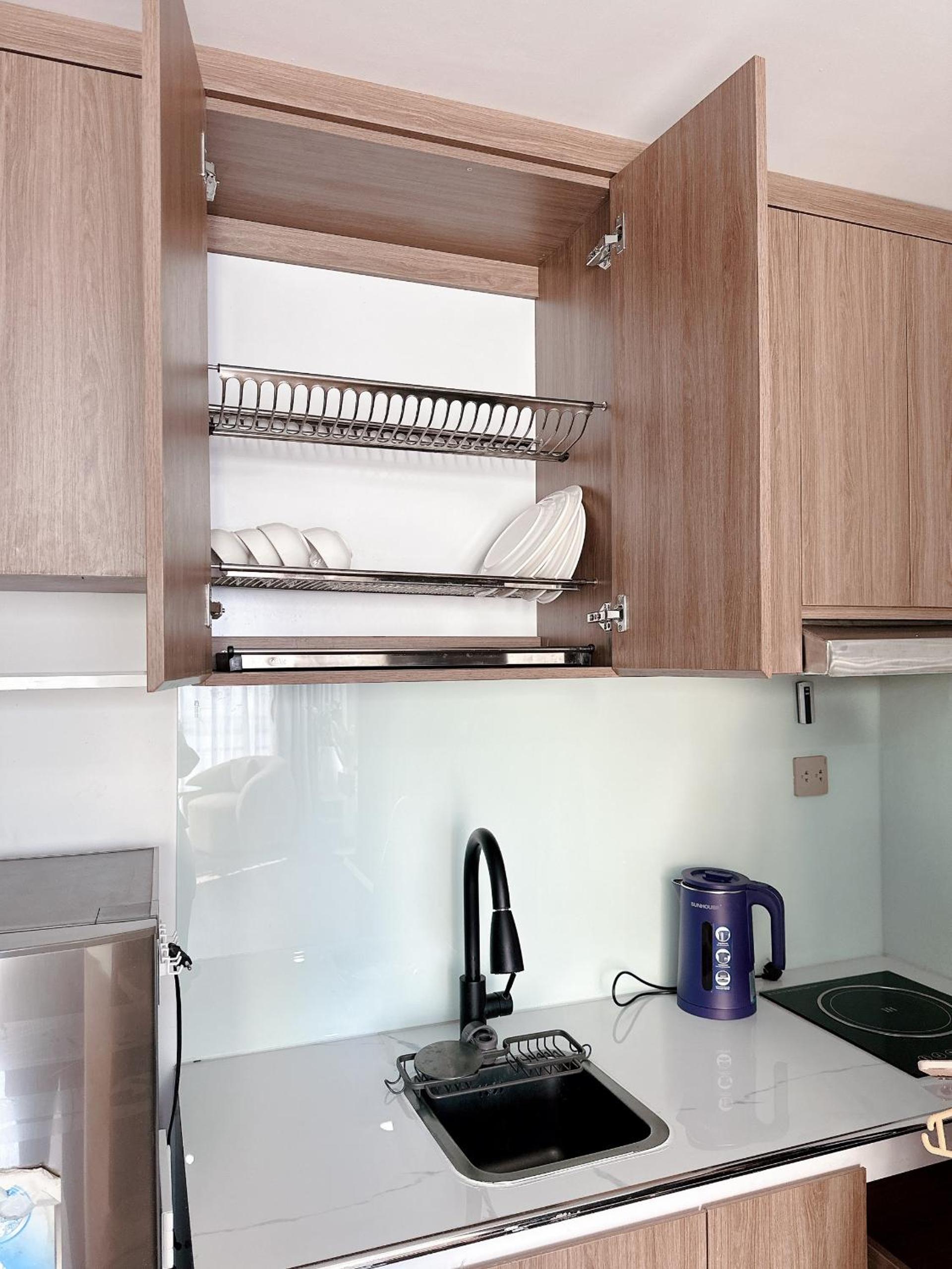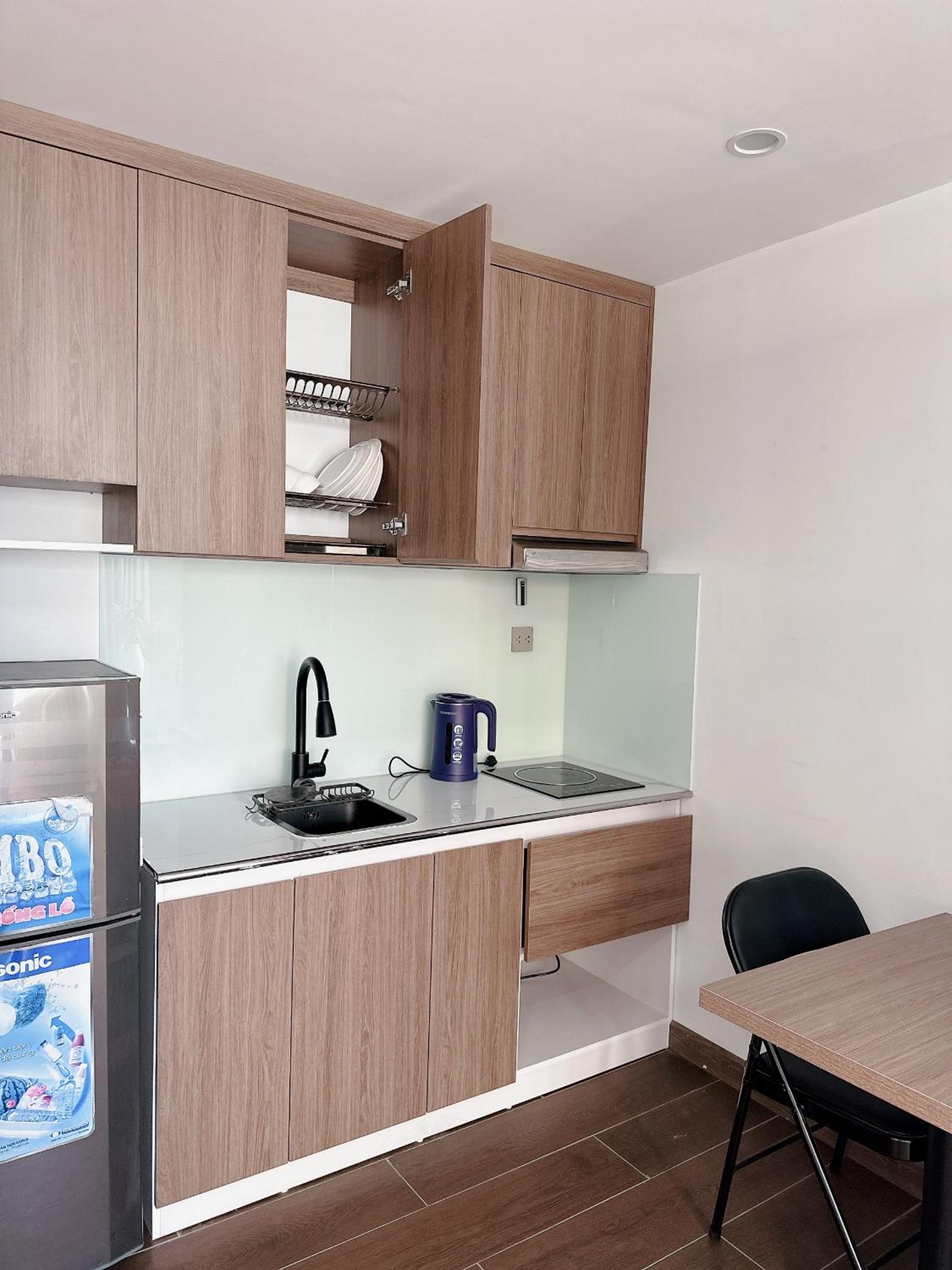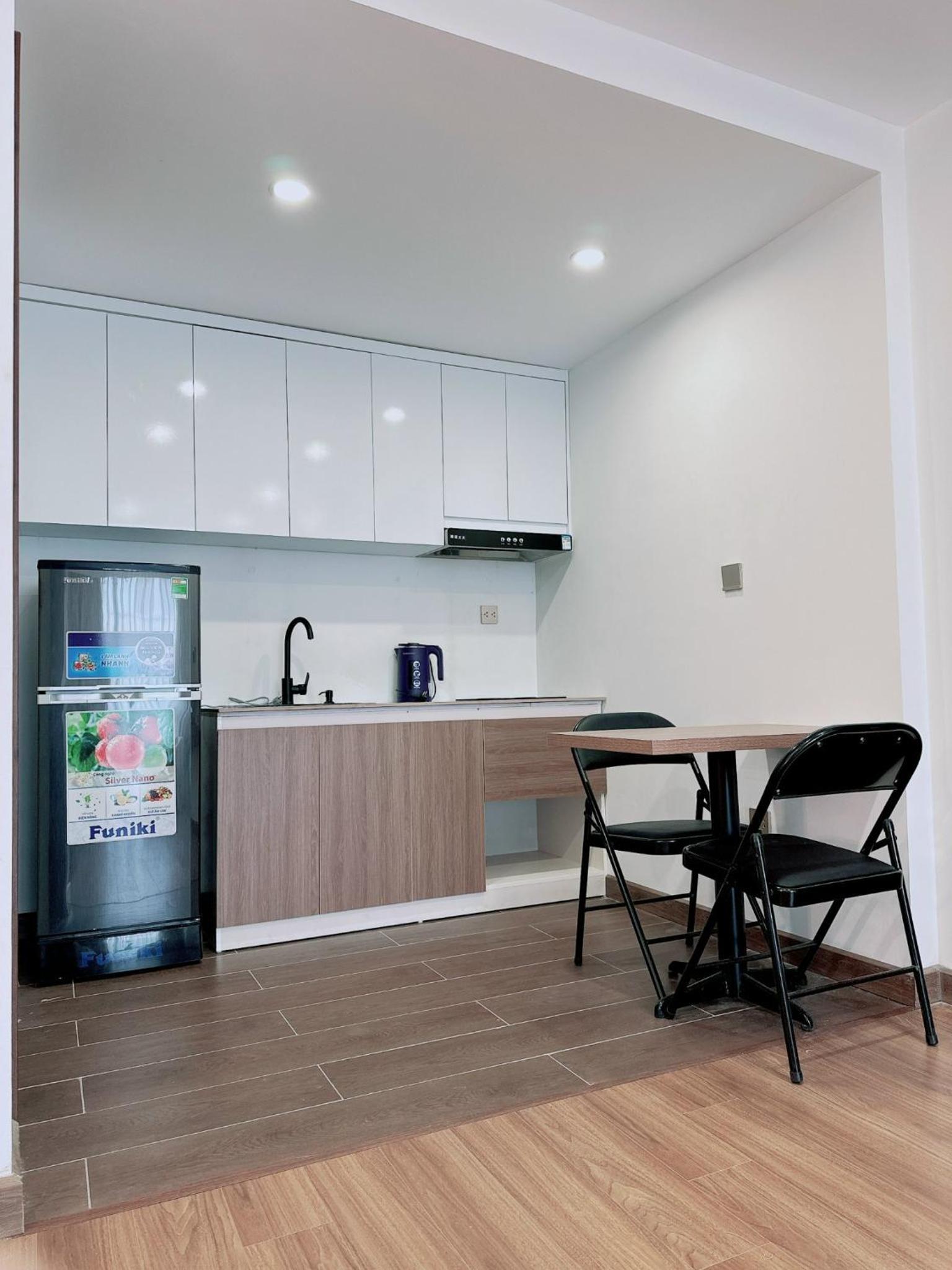 The location is very difficult to find, the sign for the apartment is difficult to see and we felt that better information could’ve been given in sending photos of the entrance as is down a small lane and doesn’t show up properly on Google Maps. The lady at Reception was lovely but speaks no English at all and had to contact the host by phone whilst we were there. We were only given one elevator key and one room key which meant that neither of us could go out separately for a walk etc. As we couldn’t get back in. I ended up asking the lady the next day for a separate key which she was reluctant to do but it was necessary. When we arrived, the fridge was still full of food from the previous guest which smelt badly, the Reception lady came and cleaned that out after we contacted the host to let them know. There was no rubbish bin in the kitchen and the toilet paper was the last small amount remaining left by the previous guest, I had to request toilet paper. The main cupboard doors wouldn’t open so we struggle to get the quilt out for the bed at night, the air conditioning is reasonable but not fantastic and the Internet was very poor. There is major construction on the main road as they appear to be putting in a new underground railway system from Hanoi railway station. We felt instructions could’ve been much clearer over all . The host did address each of the issues that we mentioned above but not a good start to a stay in a hotel. We have been travelling Vietnam for five months now and this is probably the least Suitable accommodation we have booked so far