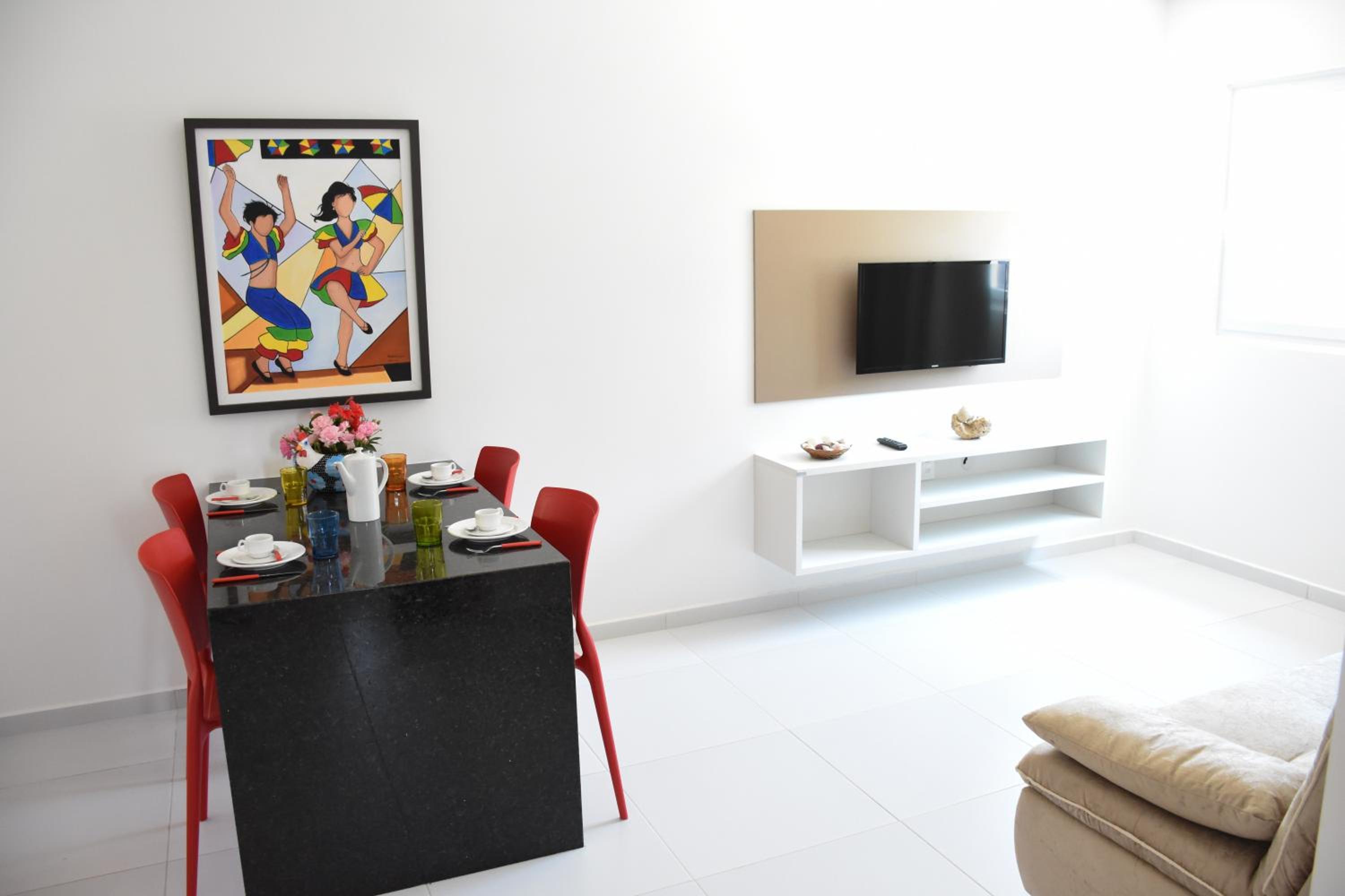 Quite noisy (from the street). The access road to the beach not ideal. No reception desk, hostess not speaking English (very common in Brazil). We only saw her after we had to call her to give us access to the room although we had already informed her of our arrival time. Note the apt was difficult for the transfer driver to locate and access. Also hostess did not reply to our query how to check out / where to leave the keys.