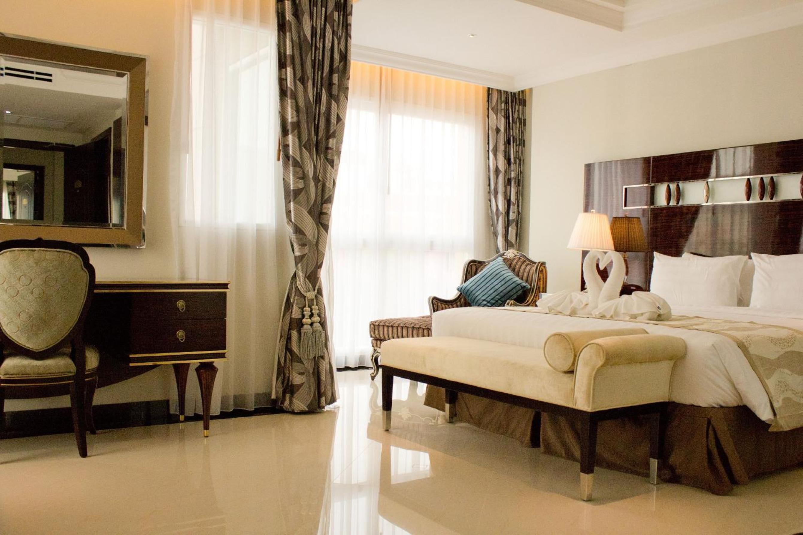 The hotel offers airport shuttle, concierge services, fitness center, and access to swimming pool and sauna at LK Royal Suite nearby. Le Kitchen Restaurant serves a variety of Thai and European dishes.