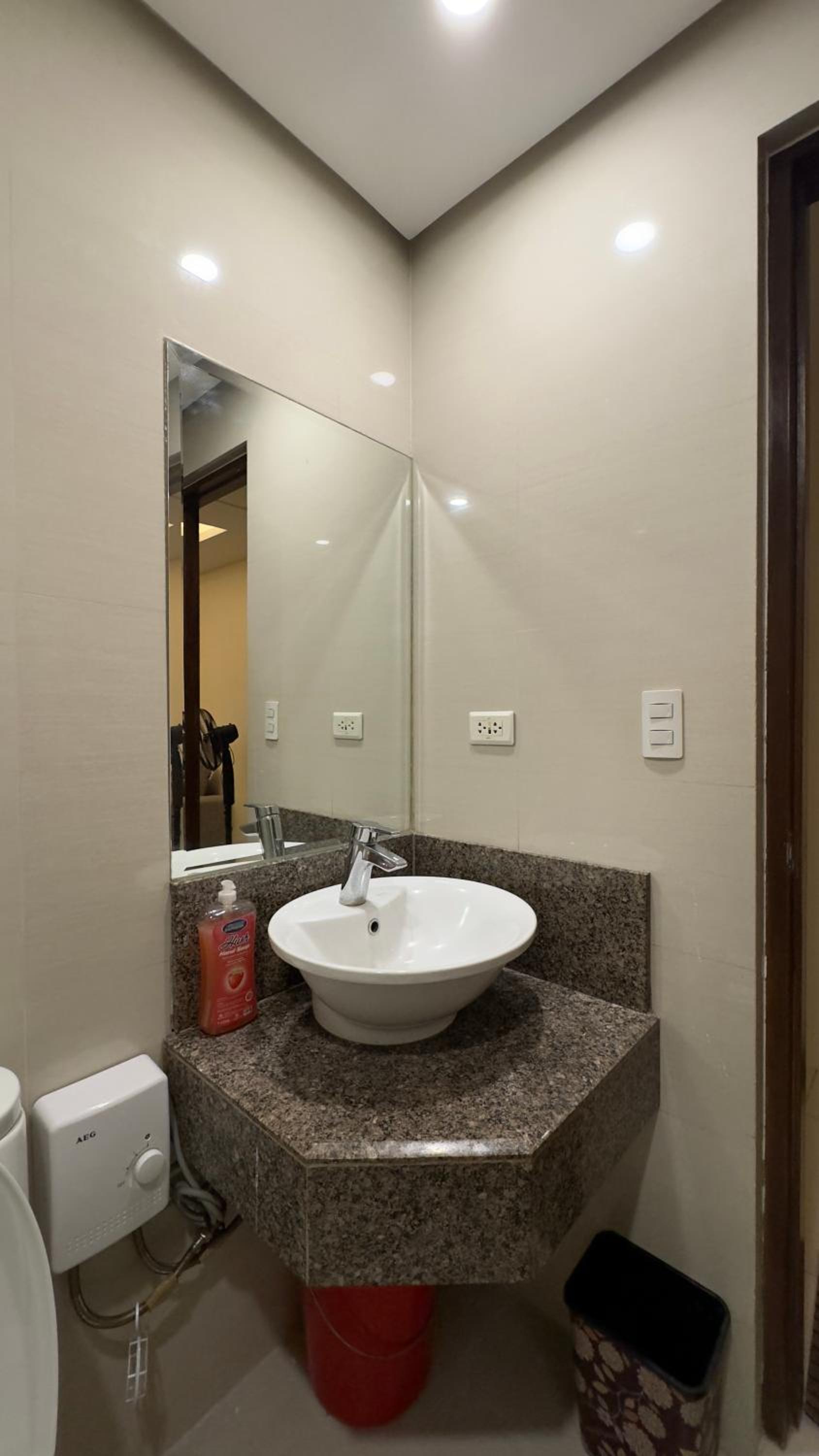 There were problems with the bathroom, The bidet tube was so stiff and very hard to use so we were unable to use it. It was also leaking so the bathroom floor was always wet. The water also seeped into the tiles and would permeate out from under the tiles when you stepped on them. We tried our best to keep the floor dry, but it was a hassle. The pressure of the faucet water in the shower was great, but when you turned it to the shower, it trickled so little water. There must be a blockage from the faucet to the shower. We ended up just cowering down and using the faucet instead of the shower. Also, no hair dryer and bring your own toilet paper if staying longer. I requested twice but no response.
