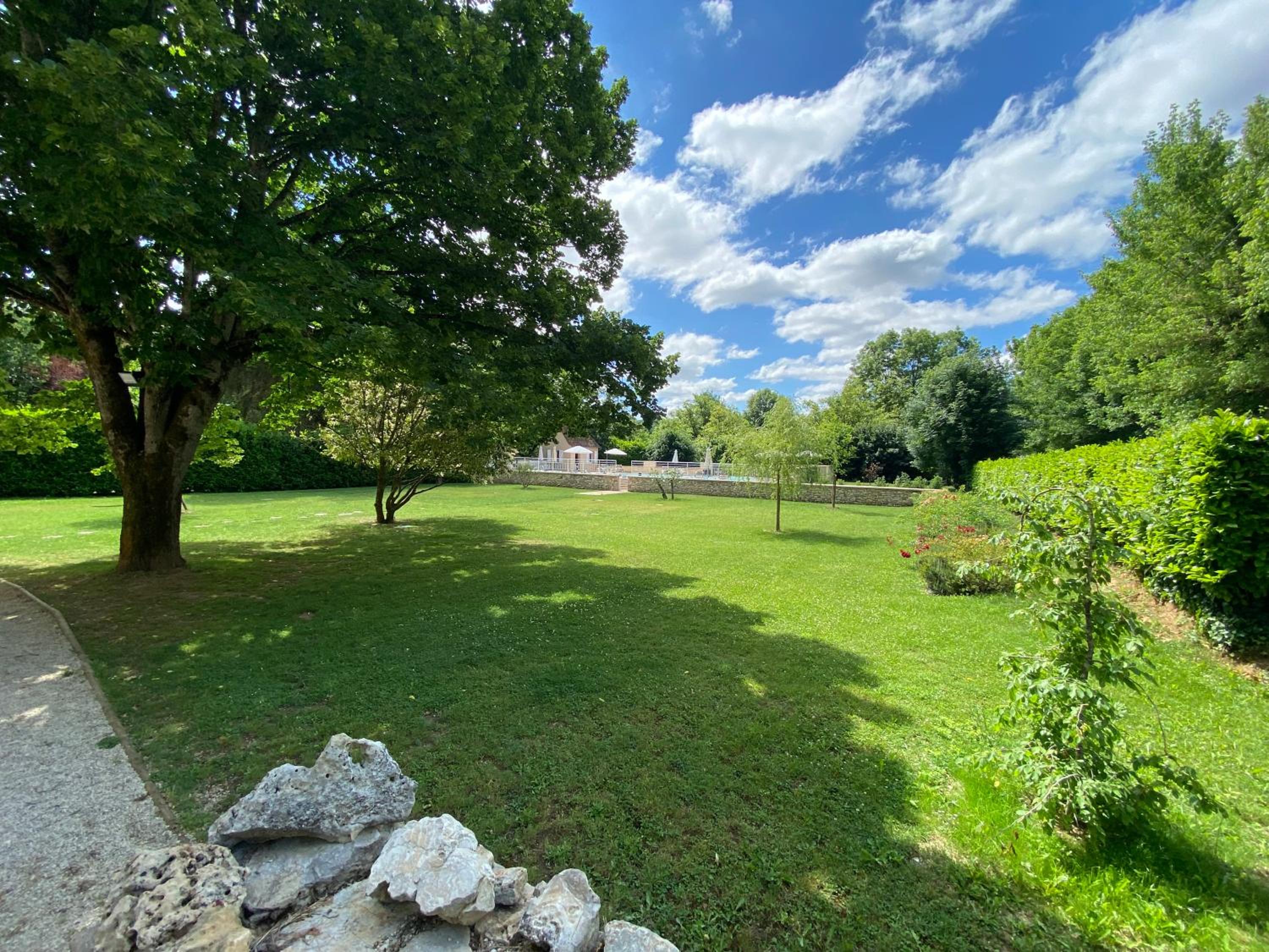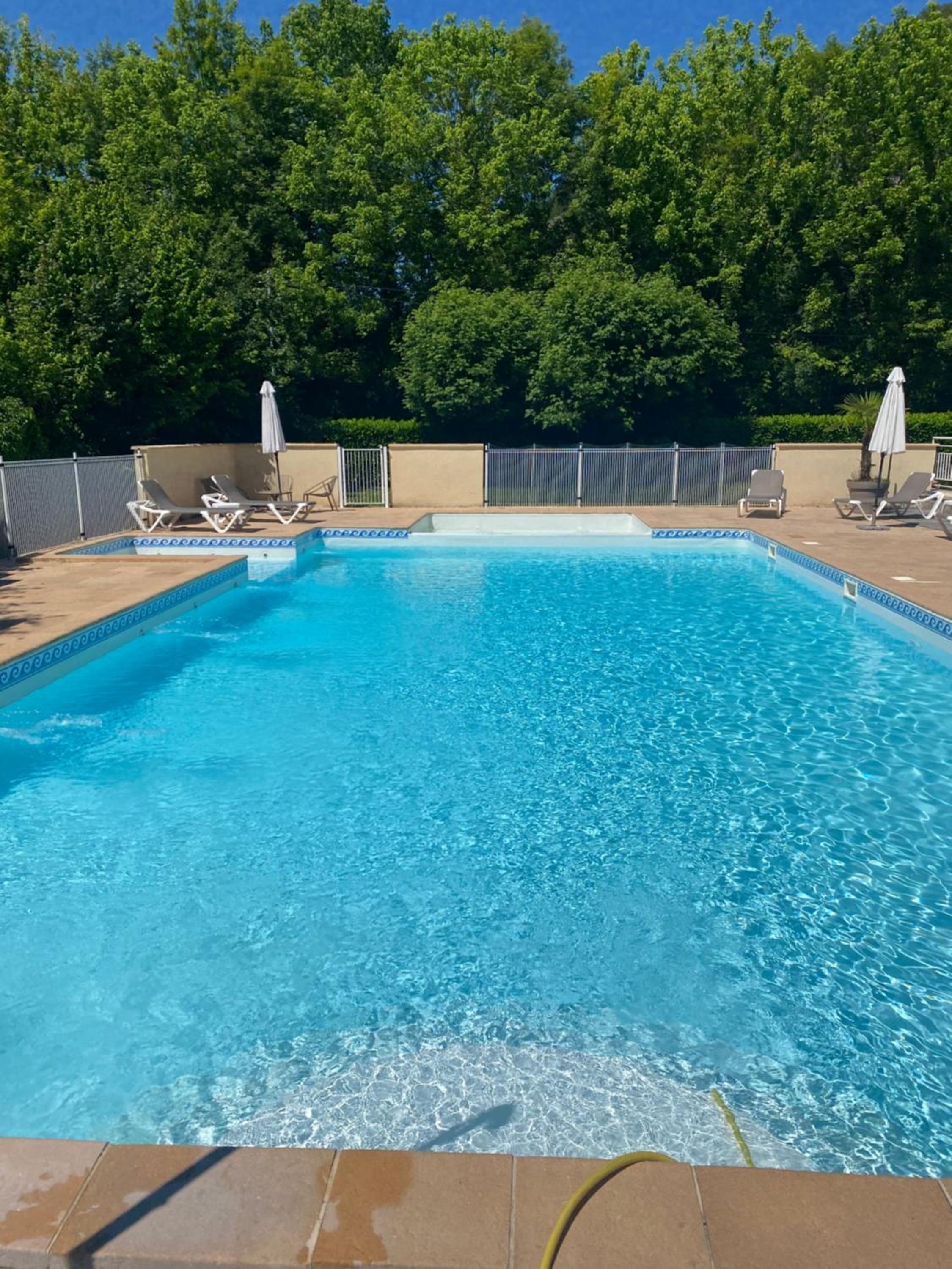 Bel établissement au calme avec une belle piscine , un beau parc et à quelques mètres de la rivière.
