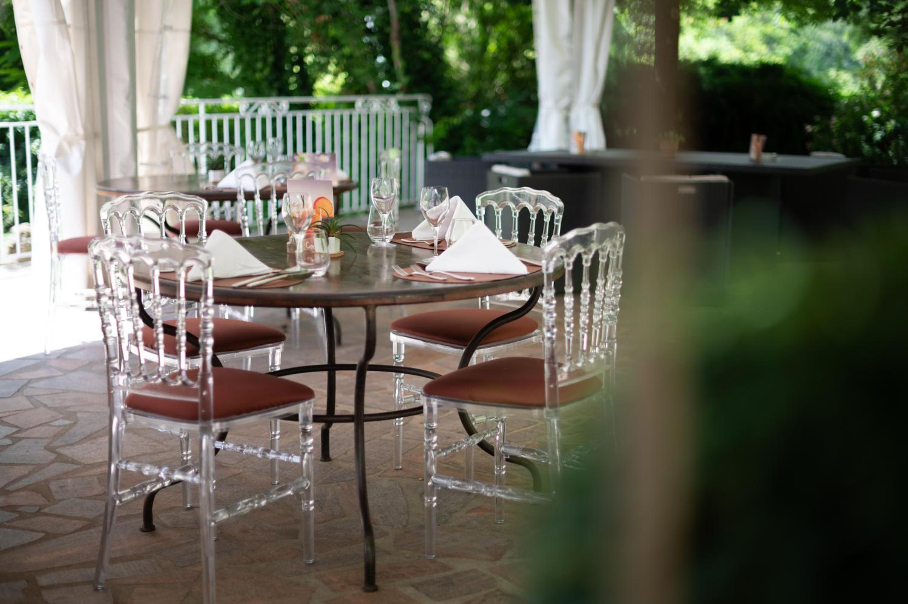 La terrasse ombragée est très agréable pour diner