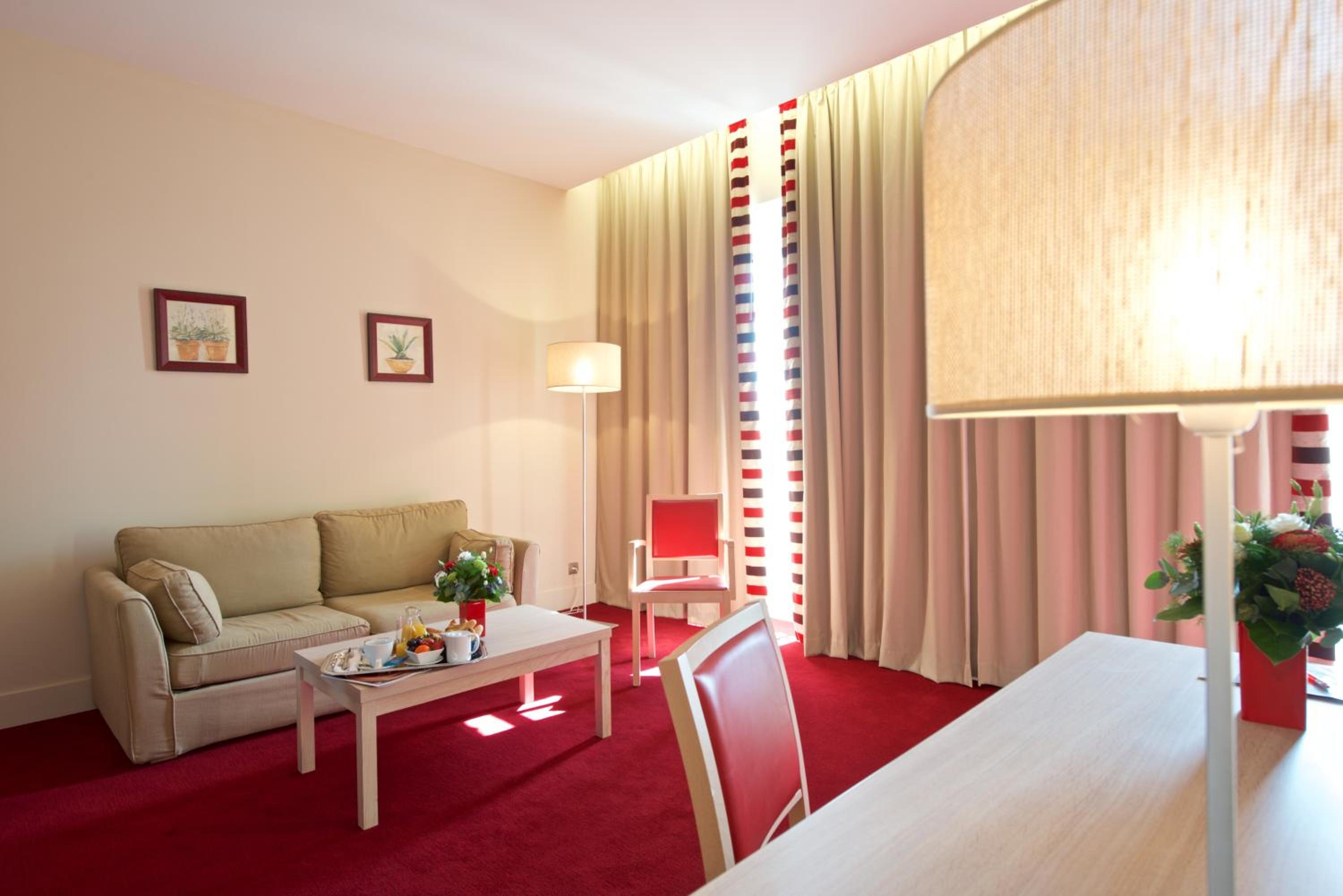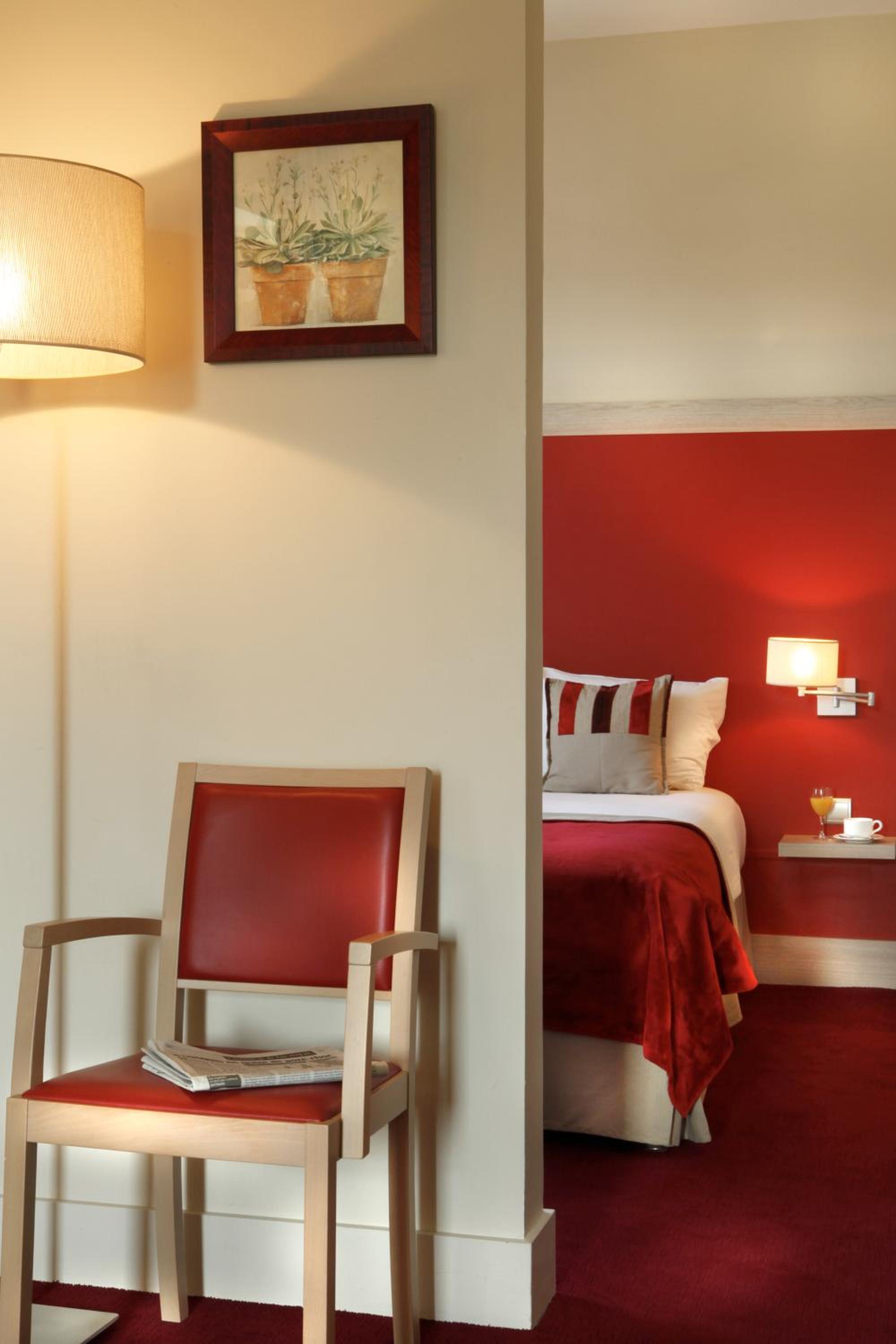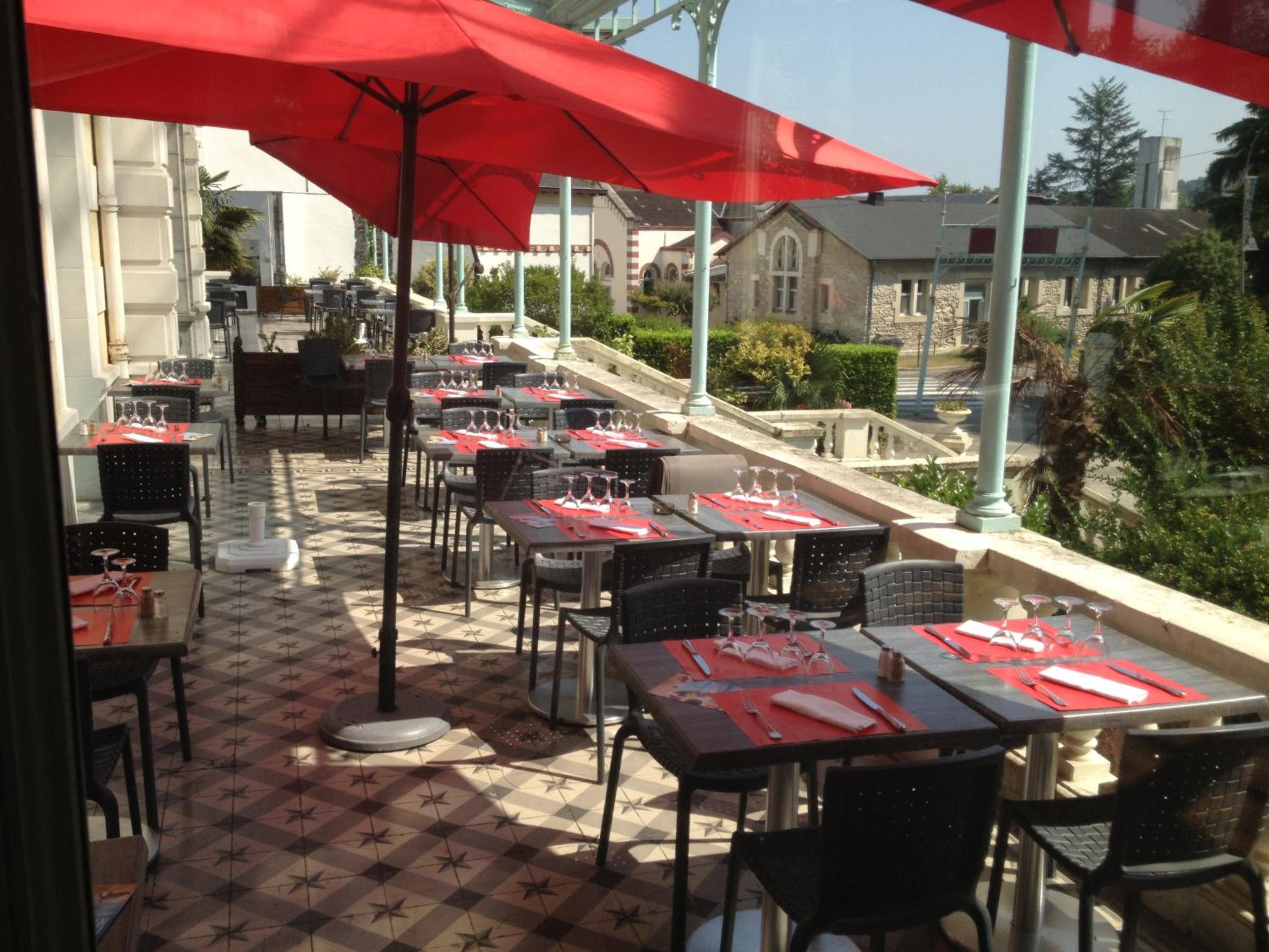 Enjoy the picturesque views of the garden from our sun terrace at Hôtel du Parc. Relax with a drink at the bar or savor a delicious meal at the on-site restaurant.
