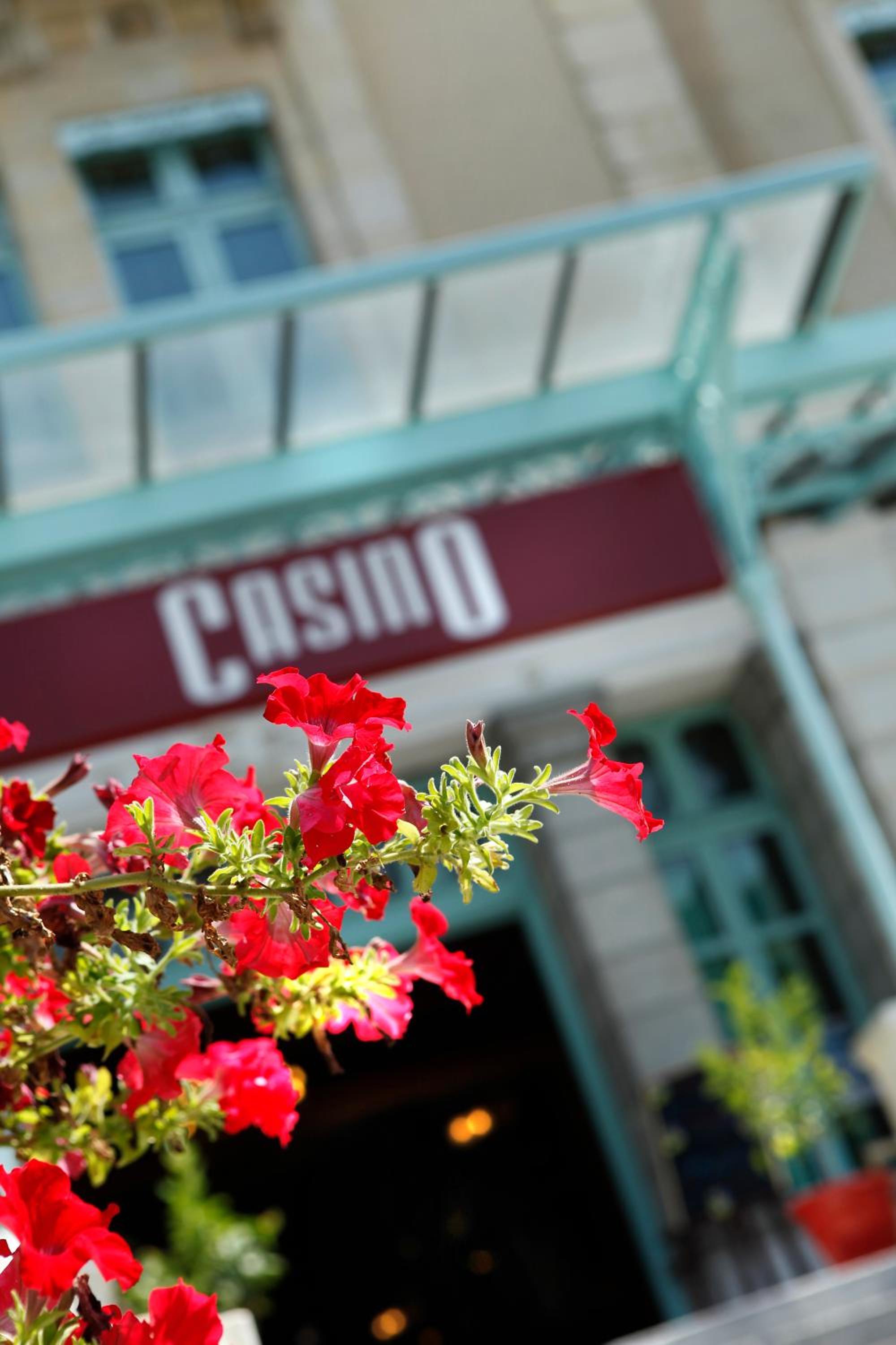 Salle de l'hôtel transformée en casino ave machines à sous. Saleté et décrépitude dans de nombreux endroits de l'établissement