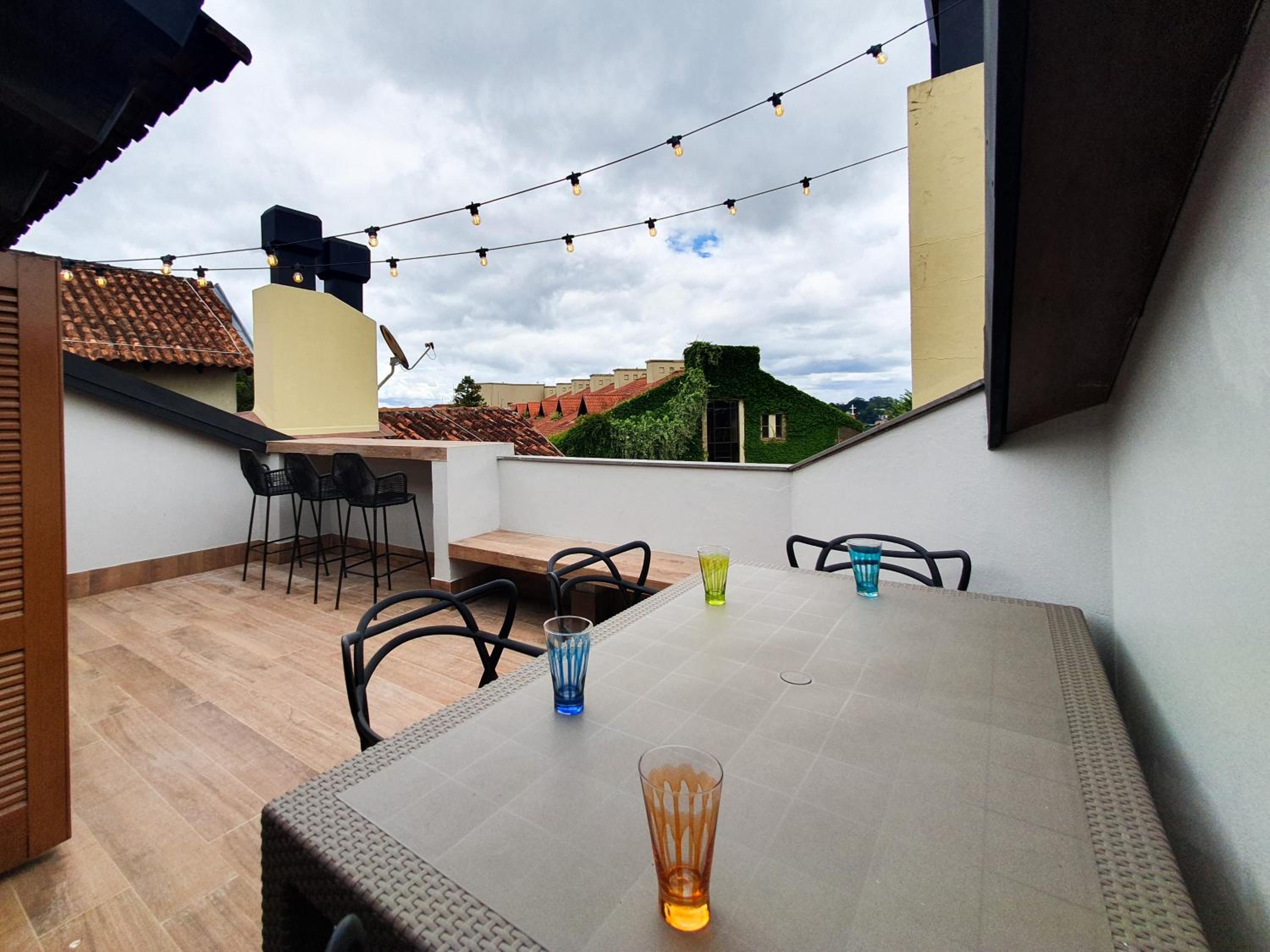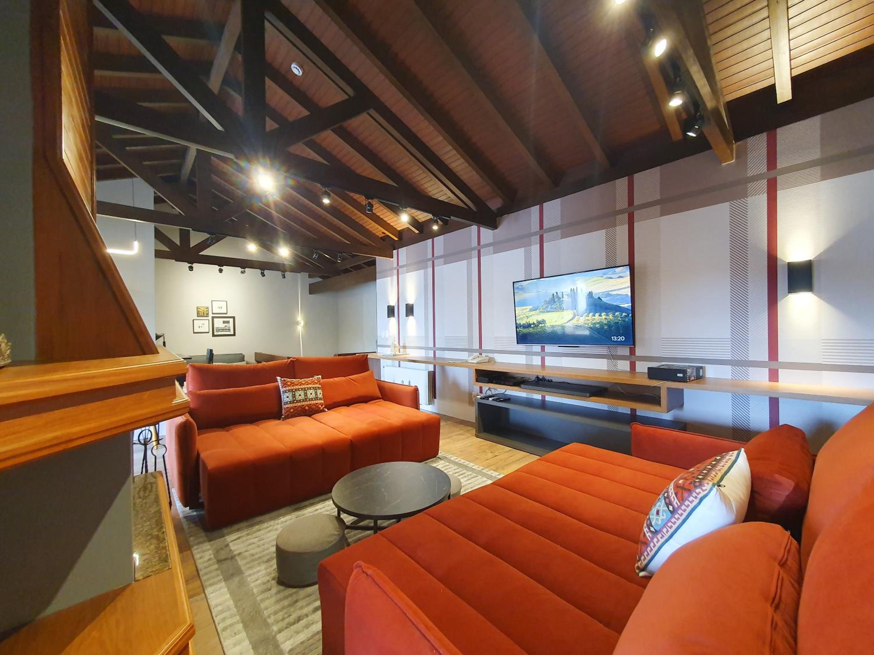 Indulge in the comfort of our 3-bedroom aparthotel with a terrace offering stunning city views. Relax in the hot tub, gather around the fireplace, or dine on the private balcony for a memorable stay.