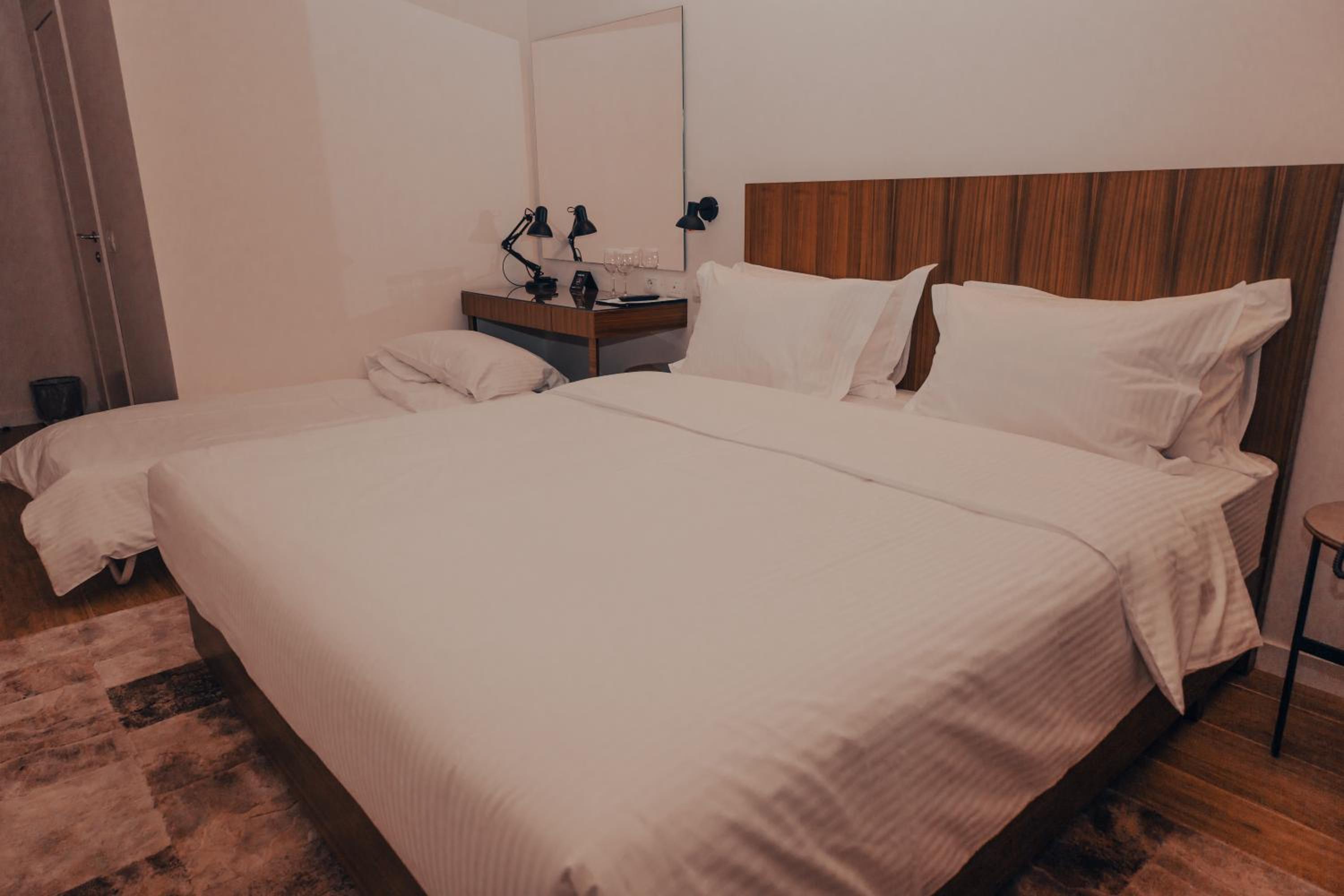 Mycket fint rum med bra ljud isolering. Sköna sängar och kuddar. Mycket fräscht välstädat rum. Trevlig bemötande av all personal.