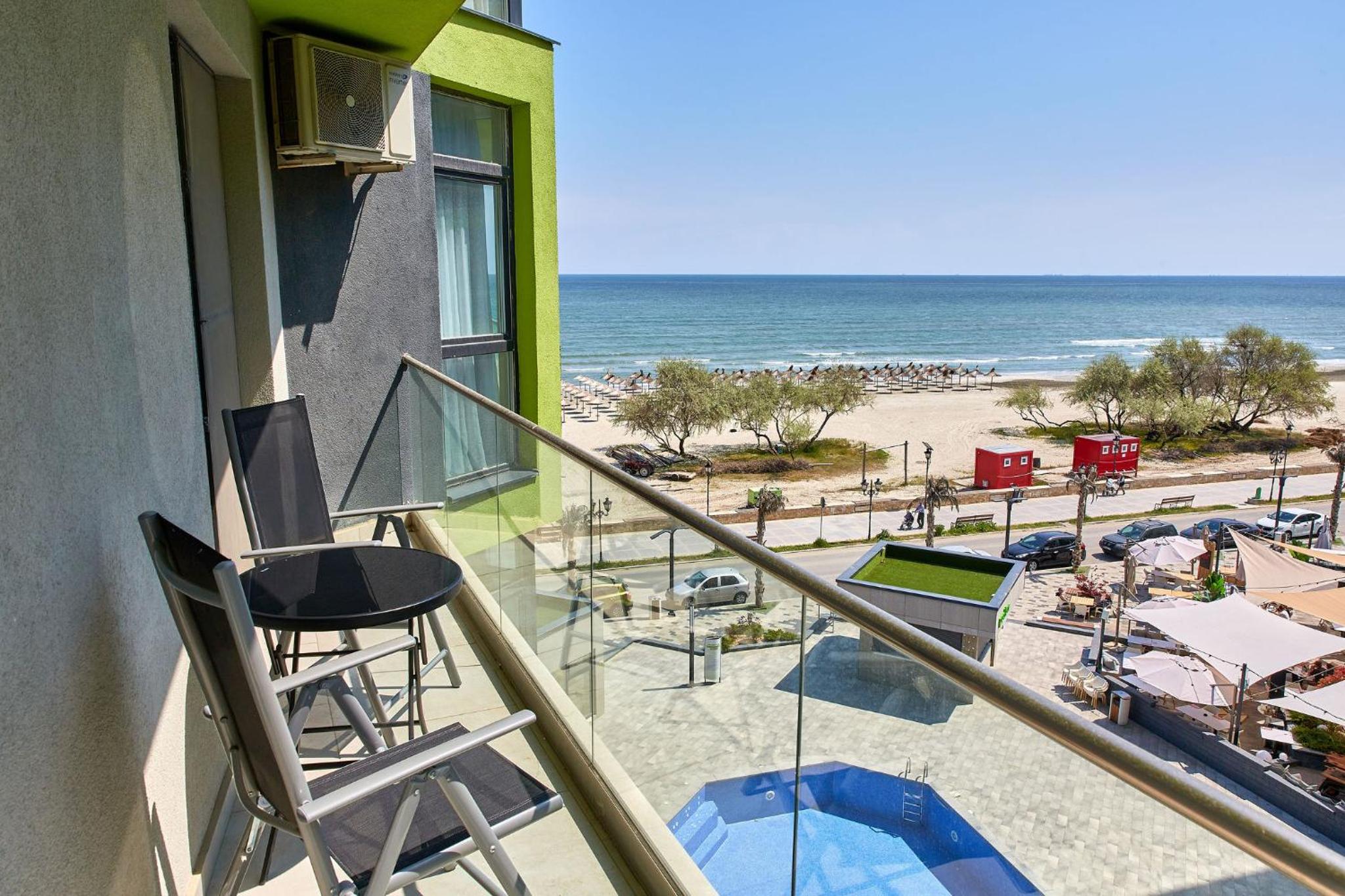 Deluxe by Alz in Mamaia Nord offers a 4-star beachfront accommodation with a seasonal outdoor pool, fitness center, and a restaurant. Guests can enjoy a private beach area, sauna, and spa center, along with free WiFi throughout the property.
