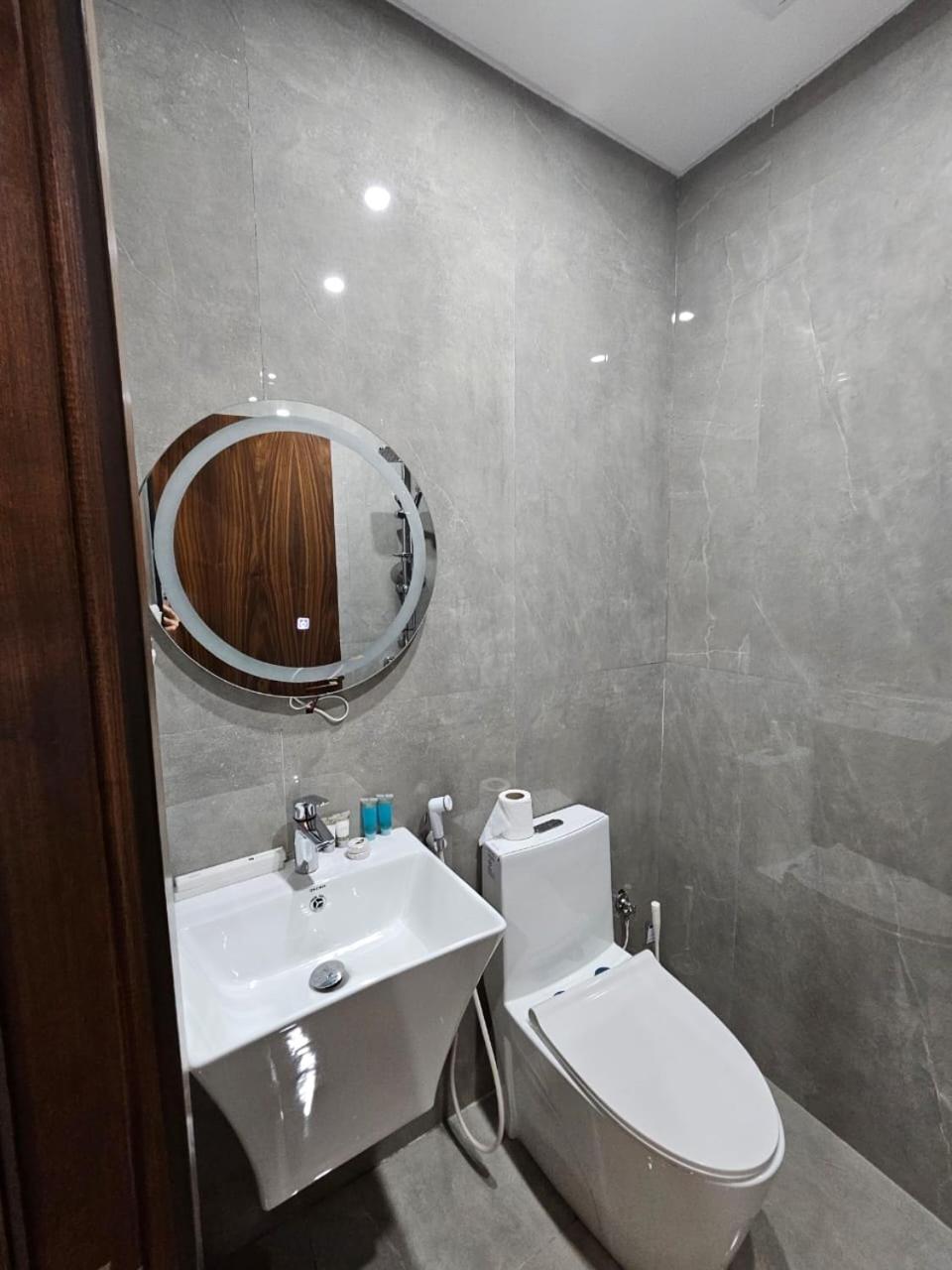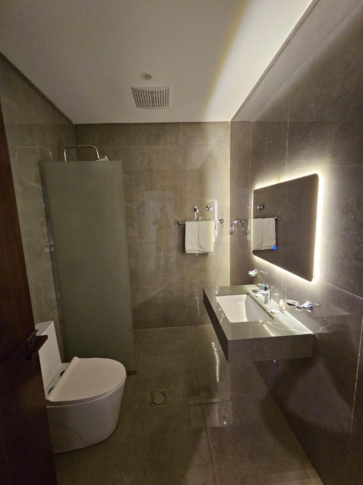 الحمام صغير جدا ولايوجد سلة مهملات فيها.
