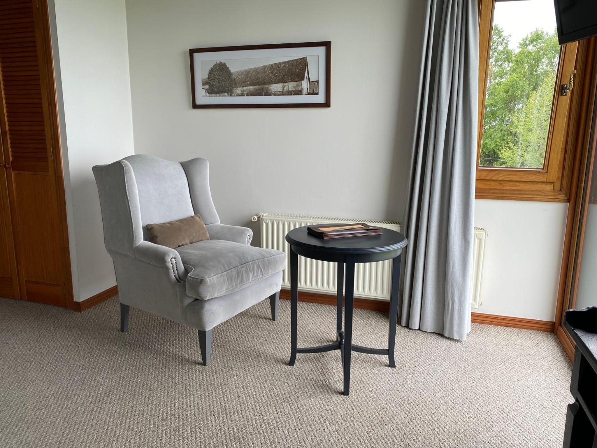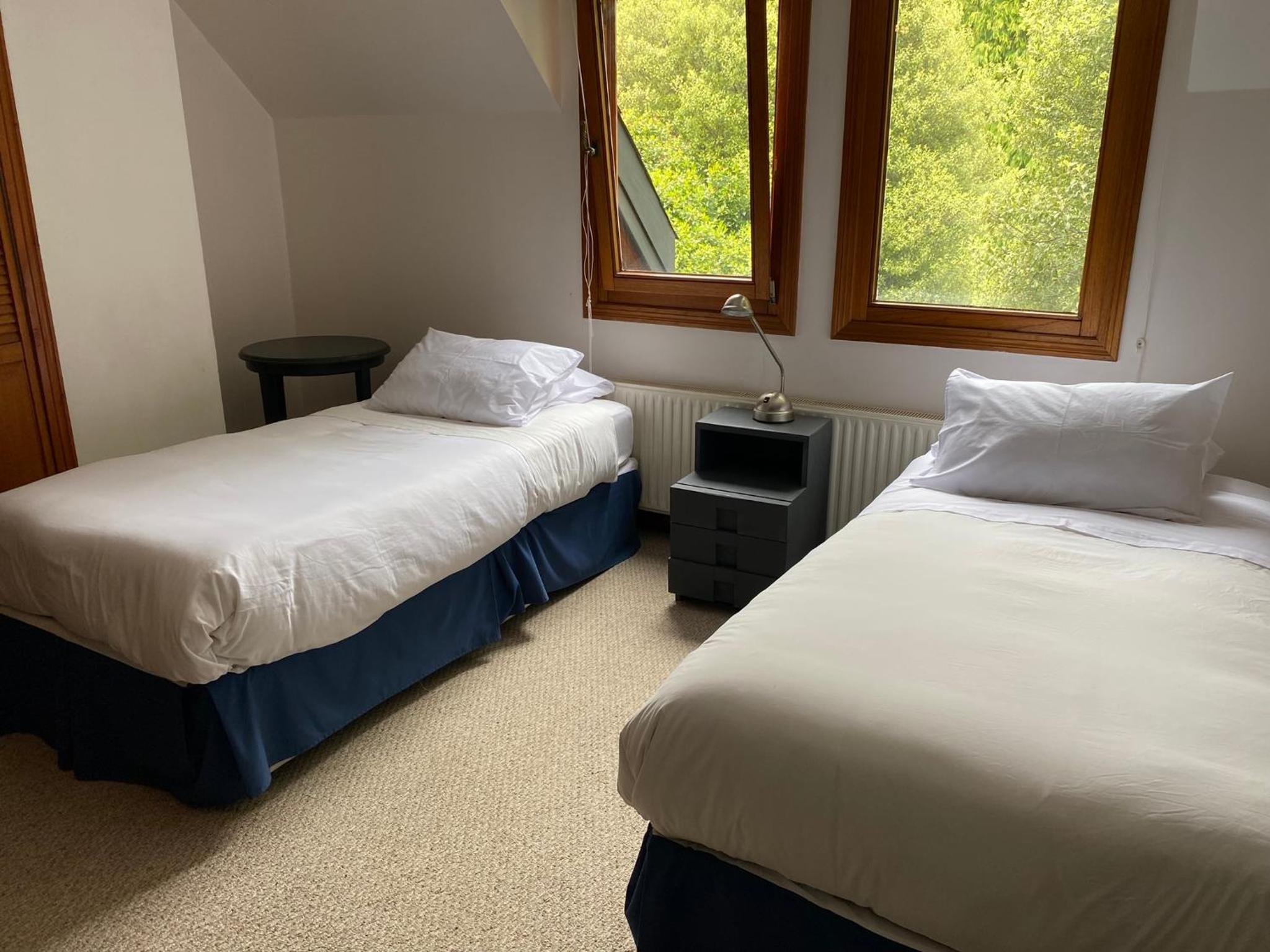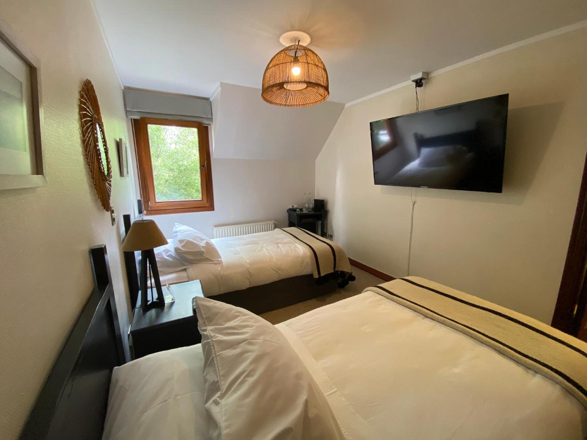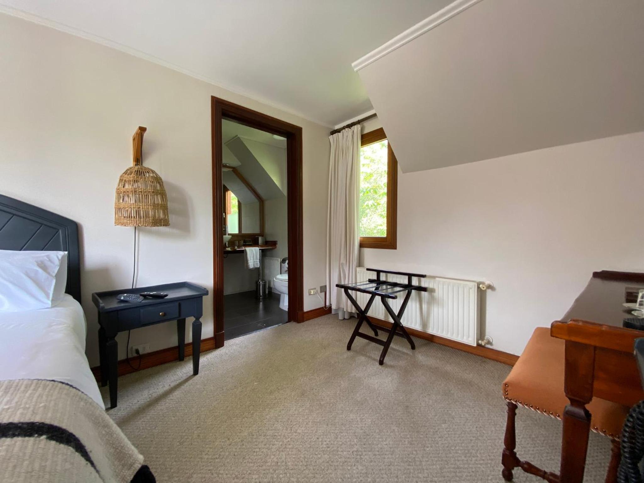 The rooms at Casa Molino Hotel Boutique & Restaurant Puerto Varas are designed for both relaxation and convenience, featuring ample windows to let in natural light and a cozy living area with modern amenities like flat-screen TVs.