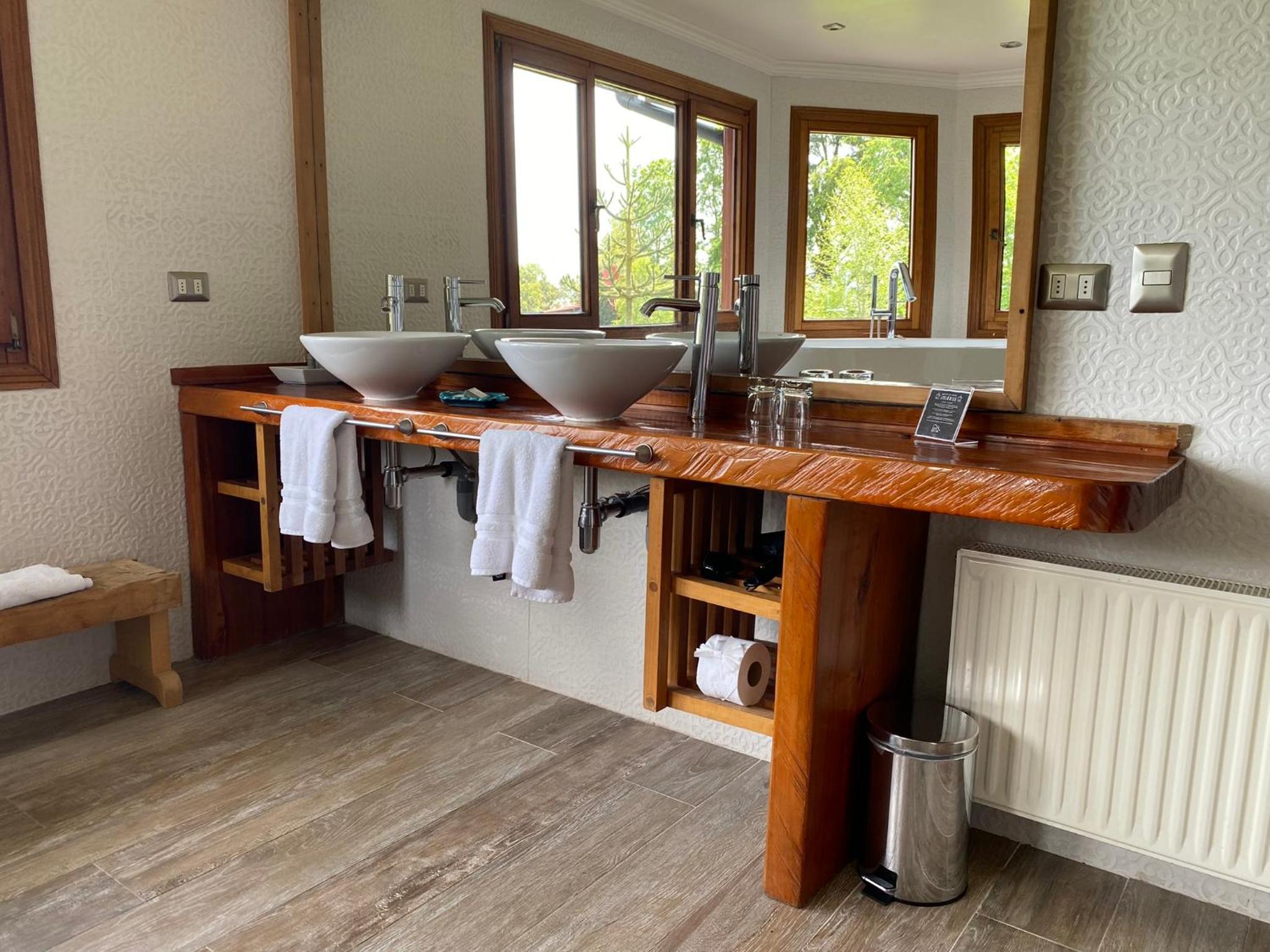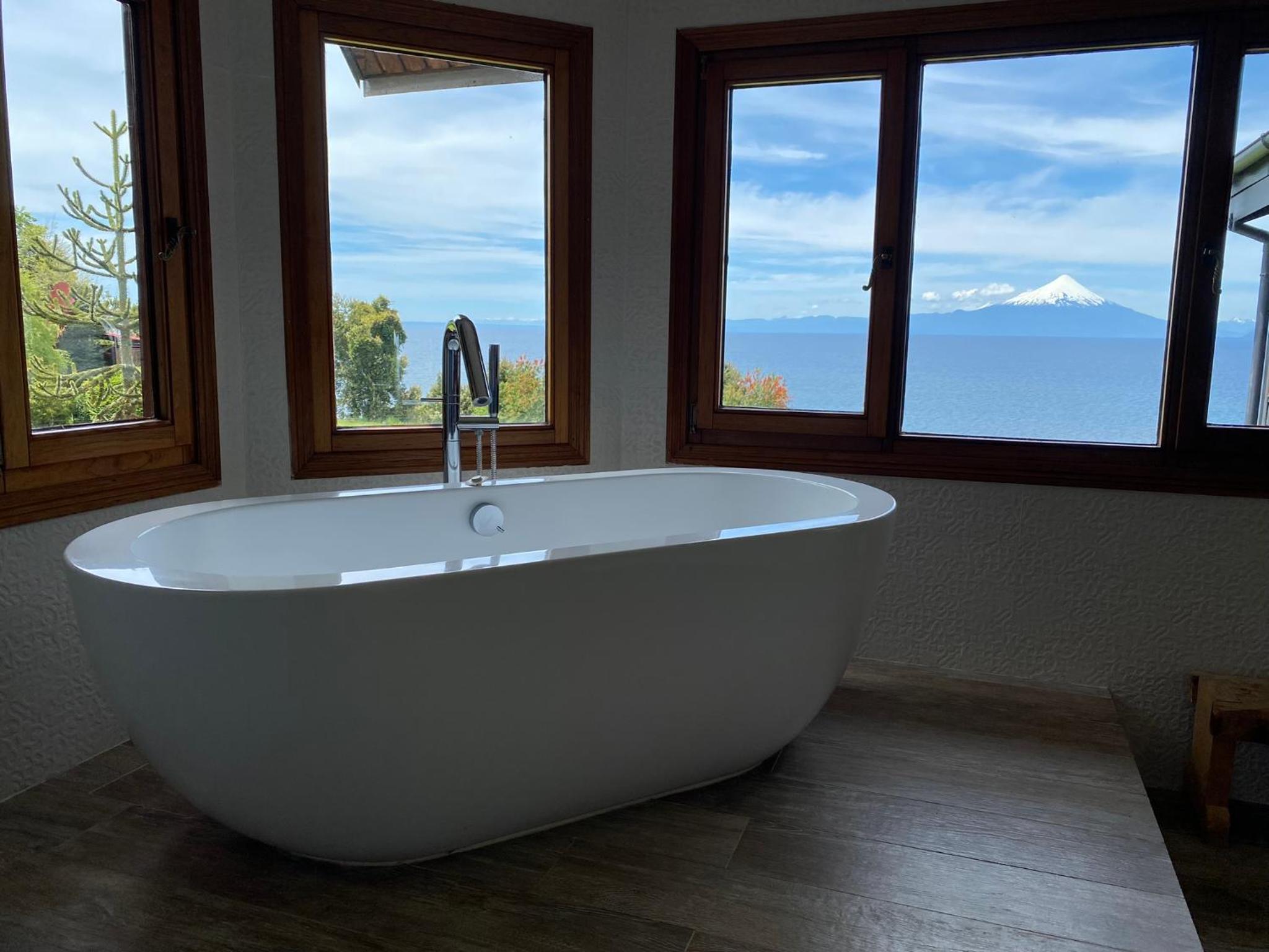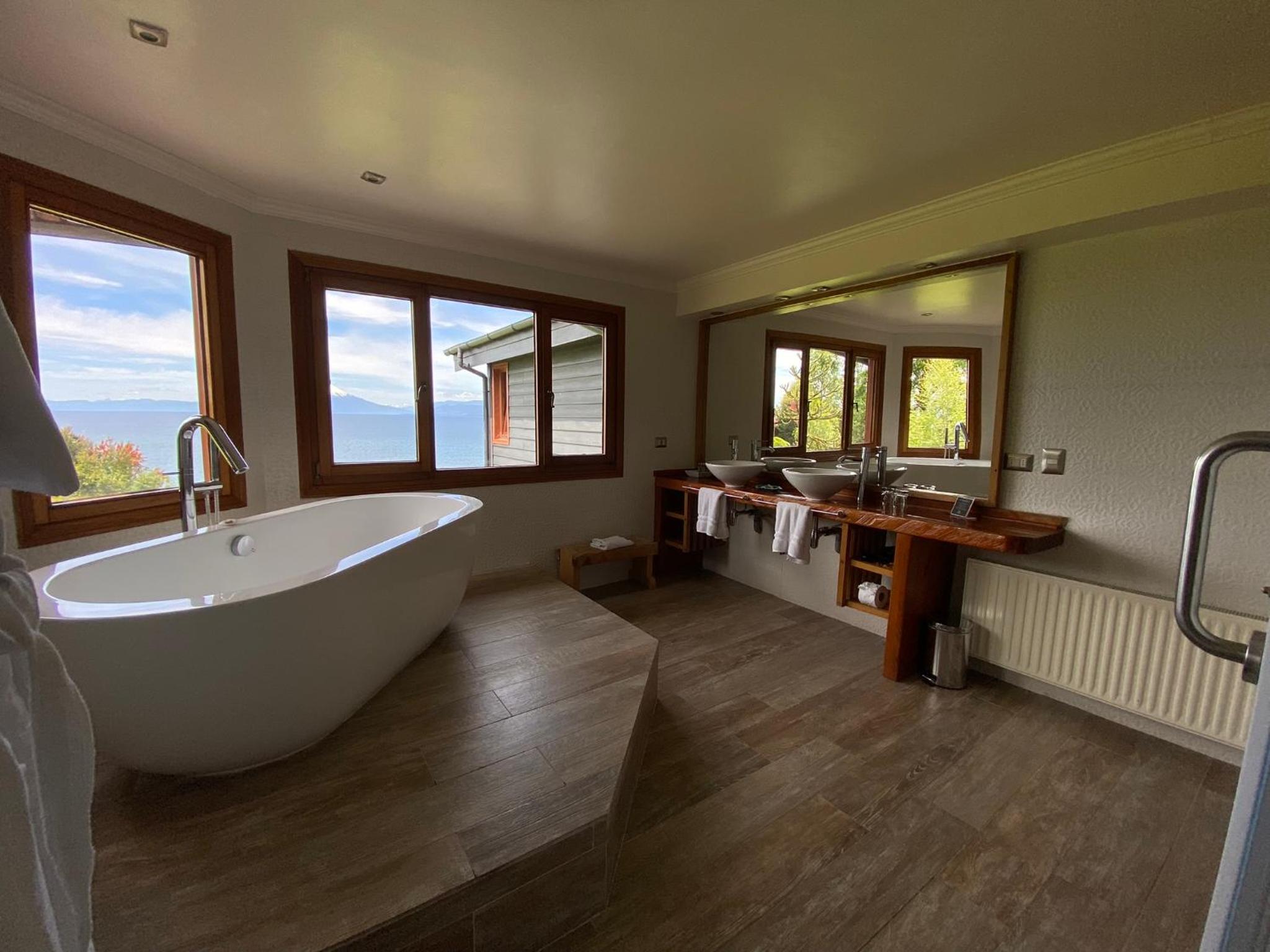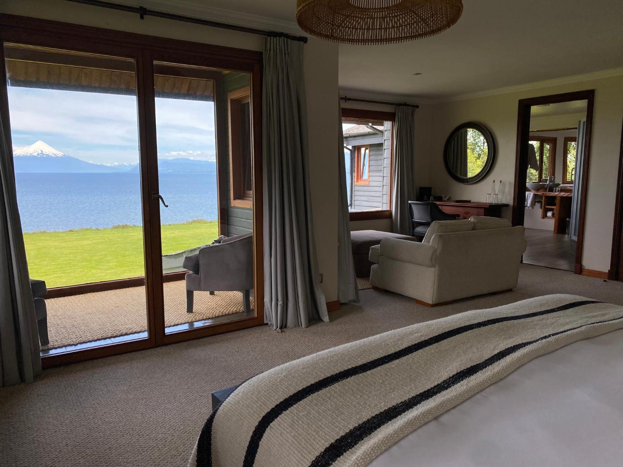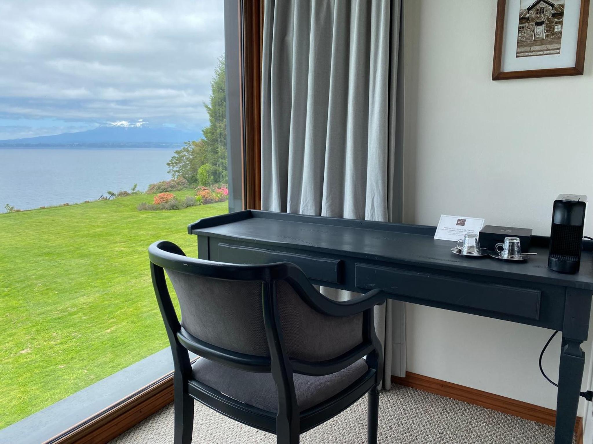 Prachtige locatie!!! Wat een aanrader! Huiselijke sfeer. Super vriendelijk personeel. Mooie tuinen. Uitzicht op het meer en de Osorno vulkaan. Hot tub met meest fantastische uitzicht! Wahw!