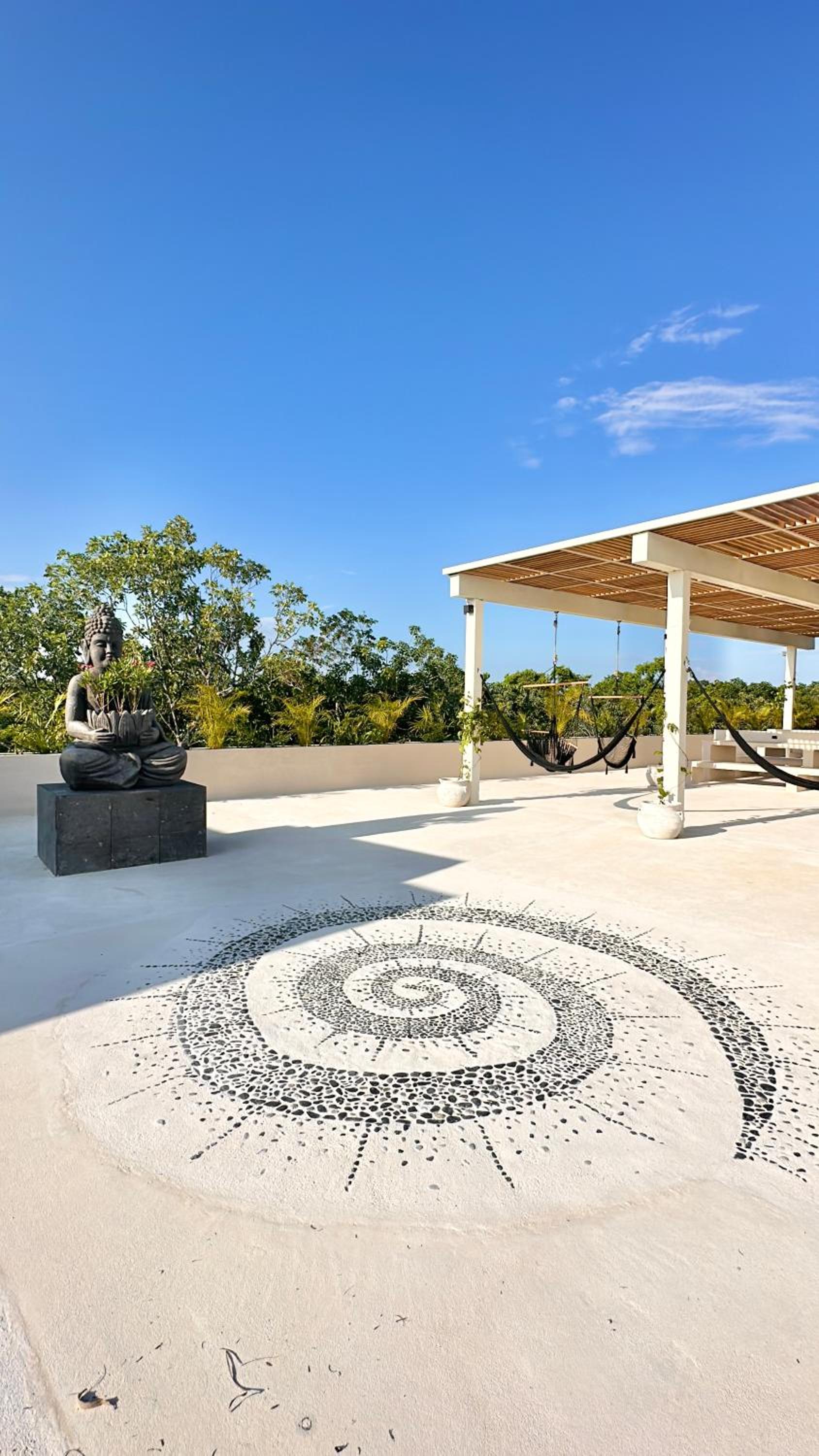 I love the sound of the waterfall, everything on the rooftop, and the staff (Gio & Alejandra).