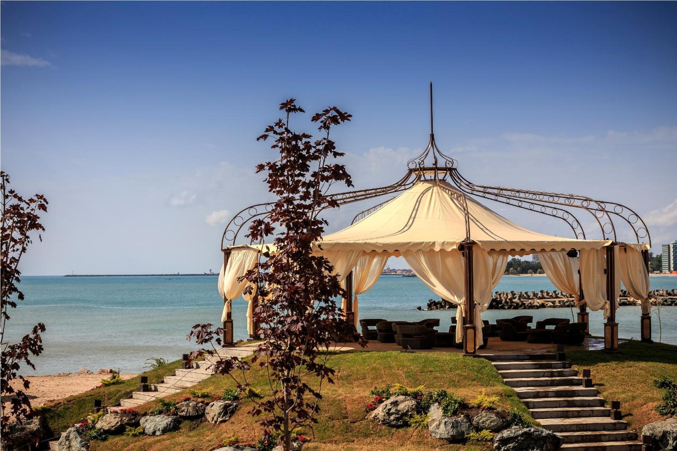 Mic dejun excepțional, cafea super si proseco. Locația, la fel, marea si plaja curate, fara alge, fara pietre, superb. Au o plaja situata intr-un golfulet în care nu se formează valuri si cred ca e pt prima data când îmi pot vedea picioarele în apa în Marea Neagra. Daca avea o culoare mai verzuie o confundam.