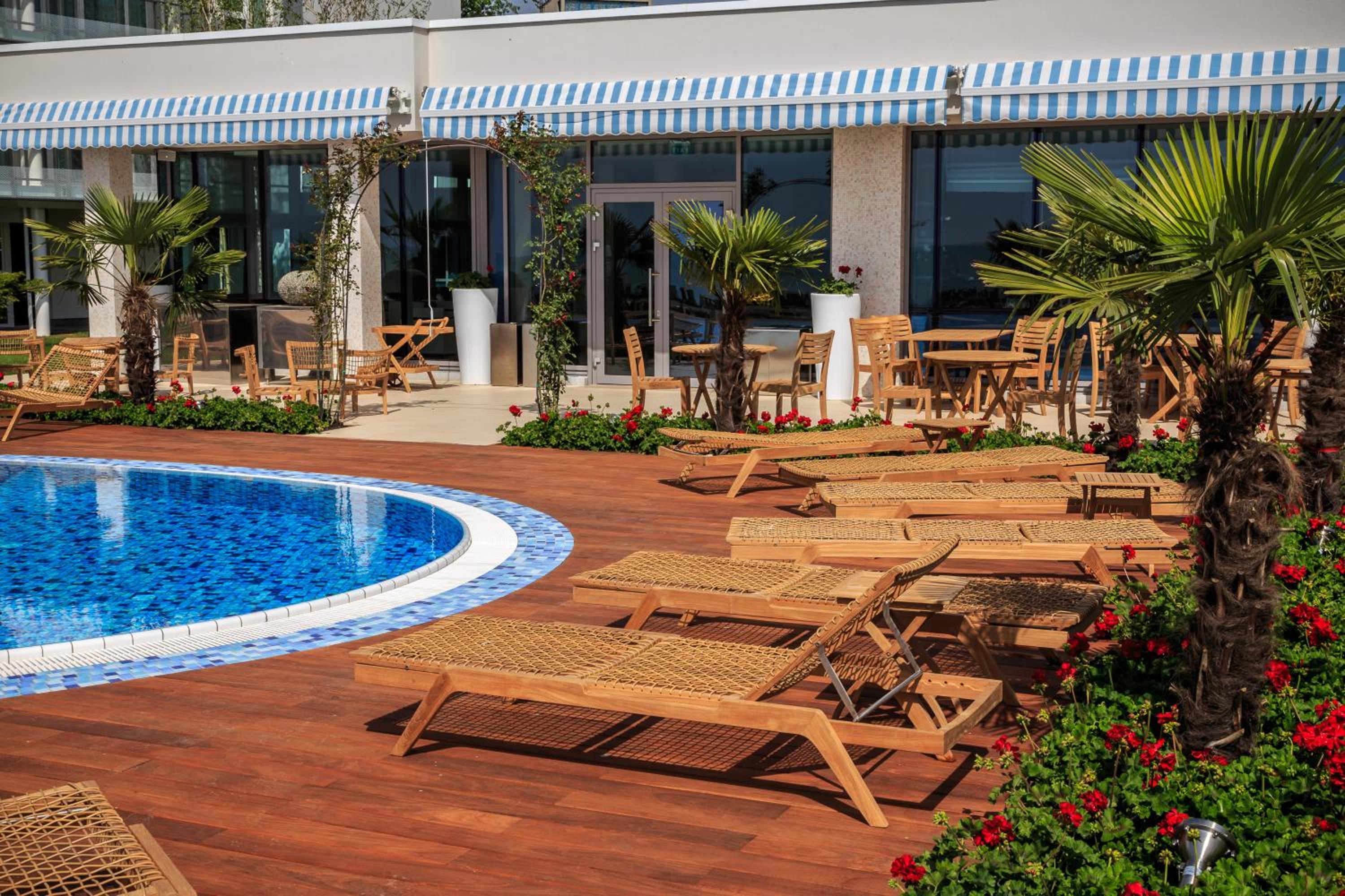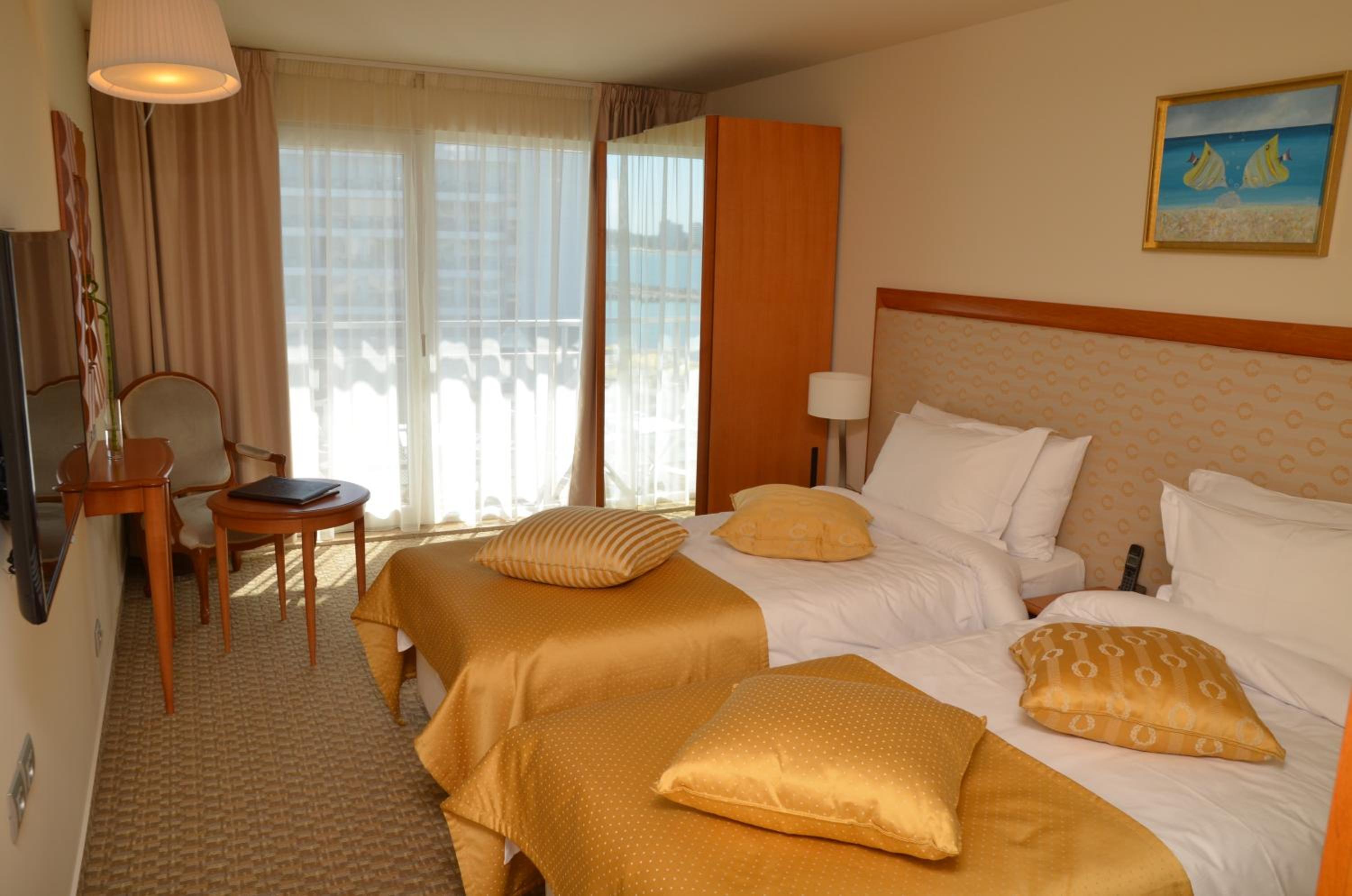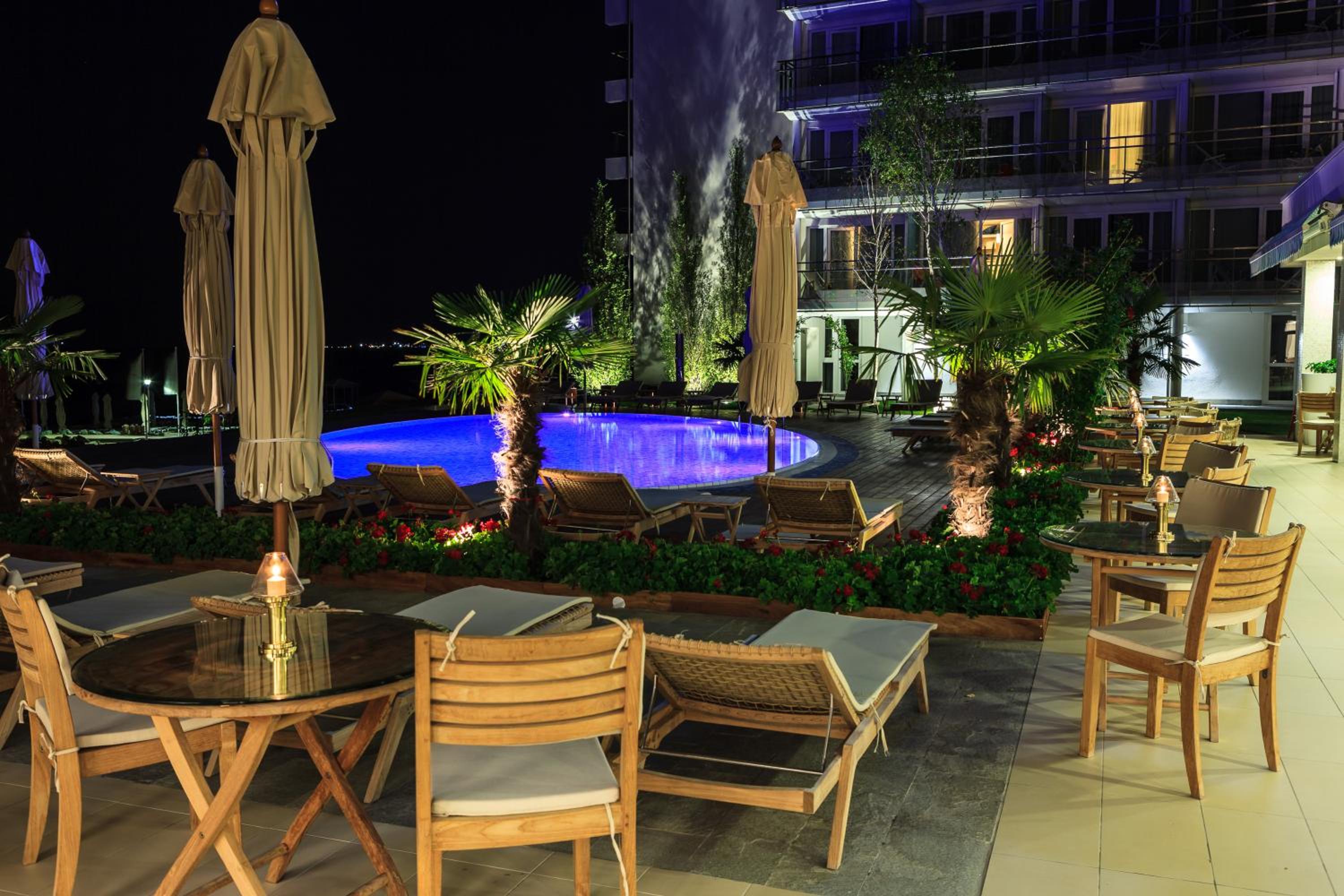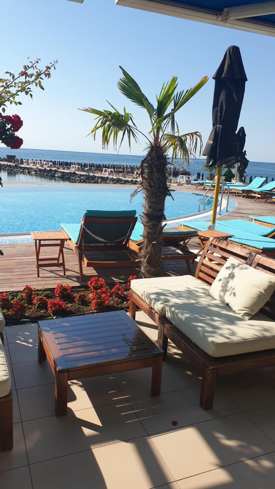 Locatia foarte buna, pe malul marii, mic dejun variat si foarte gustos, iar piscina fantastica. Locul de parcare a fost binevenit, totul la superlativ. Restaurantul hotelului nu mai zic, am servit cina dar si pranzul zilnic acolo si nu pot sa spun decat “ mancarea a fost fantastic de buna”.
