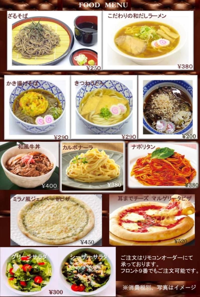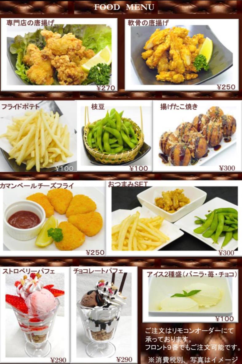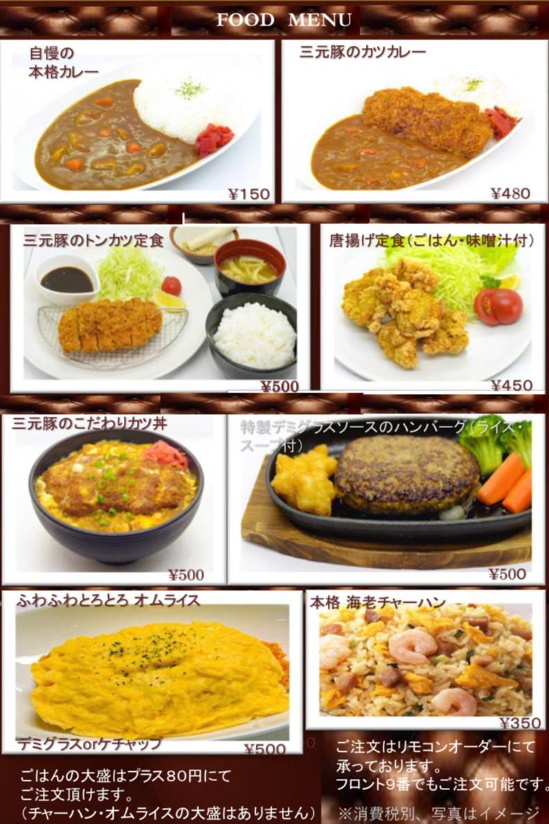 設備やフードメニュー。
