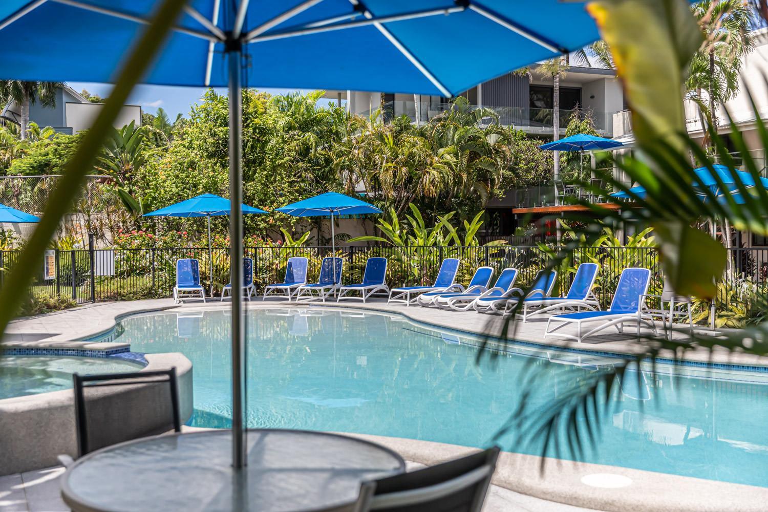 Beautiful swimming pool. A great place for families to holiday. Right beside 4 mile Beach. Easy walk to the shops. Easy parking. Staff were super helpful in fixing an electrical problem on our first night