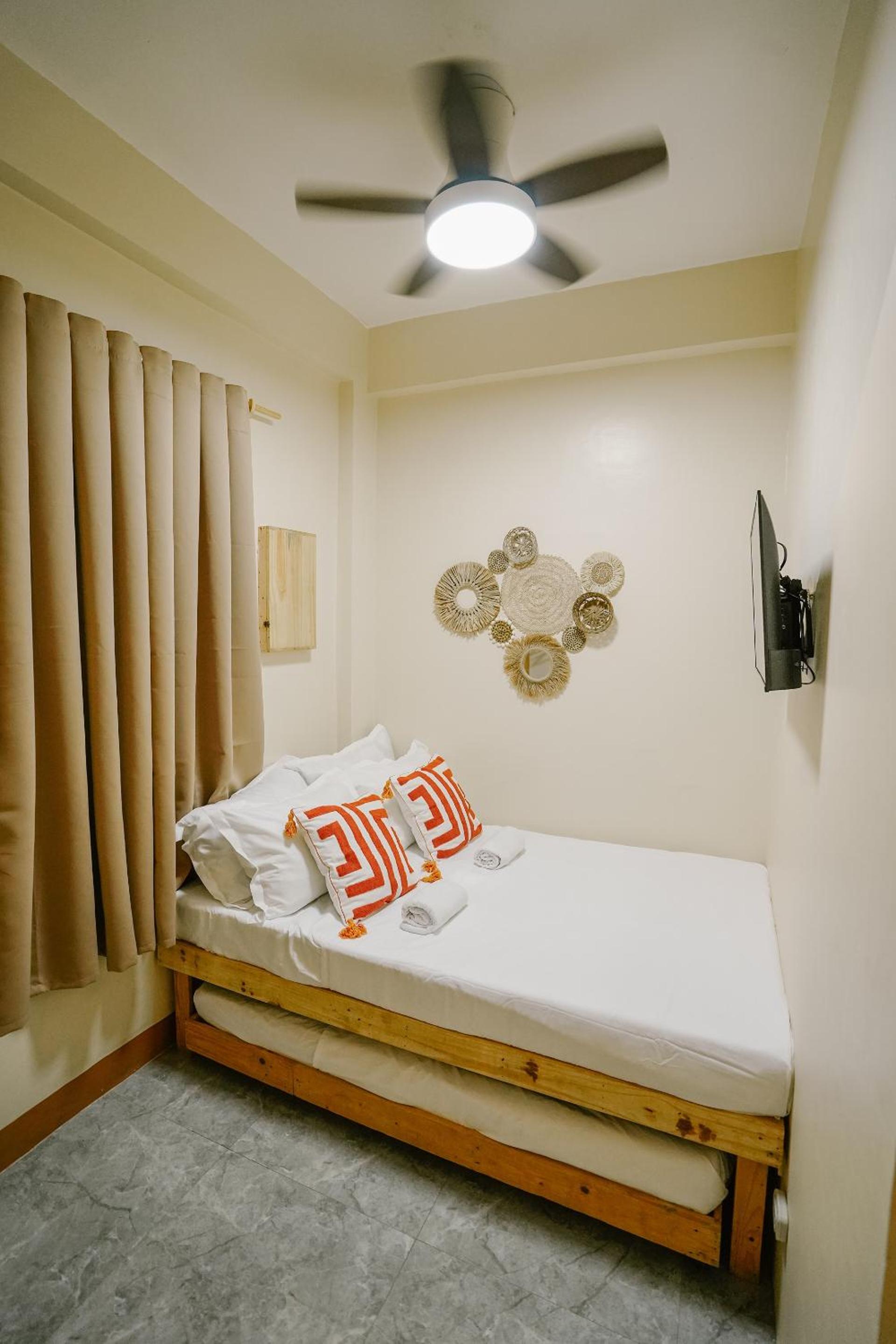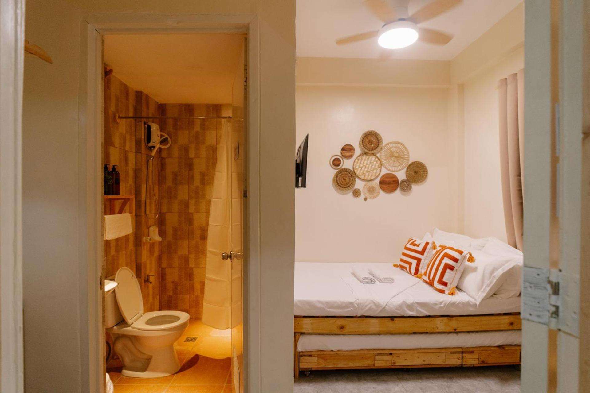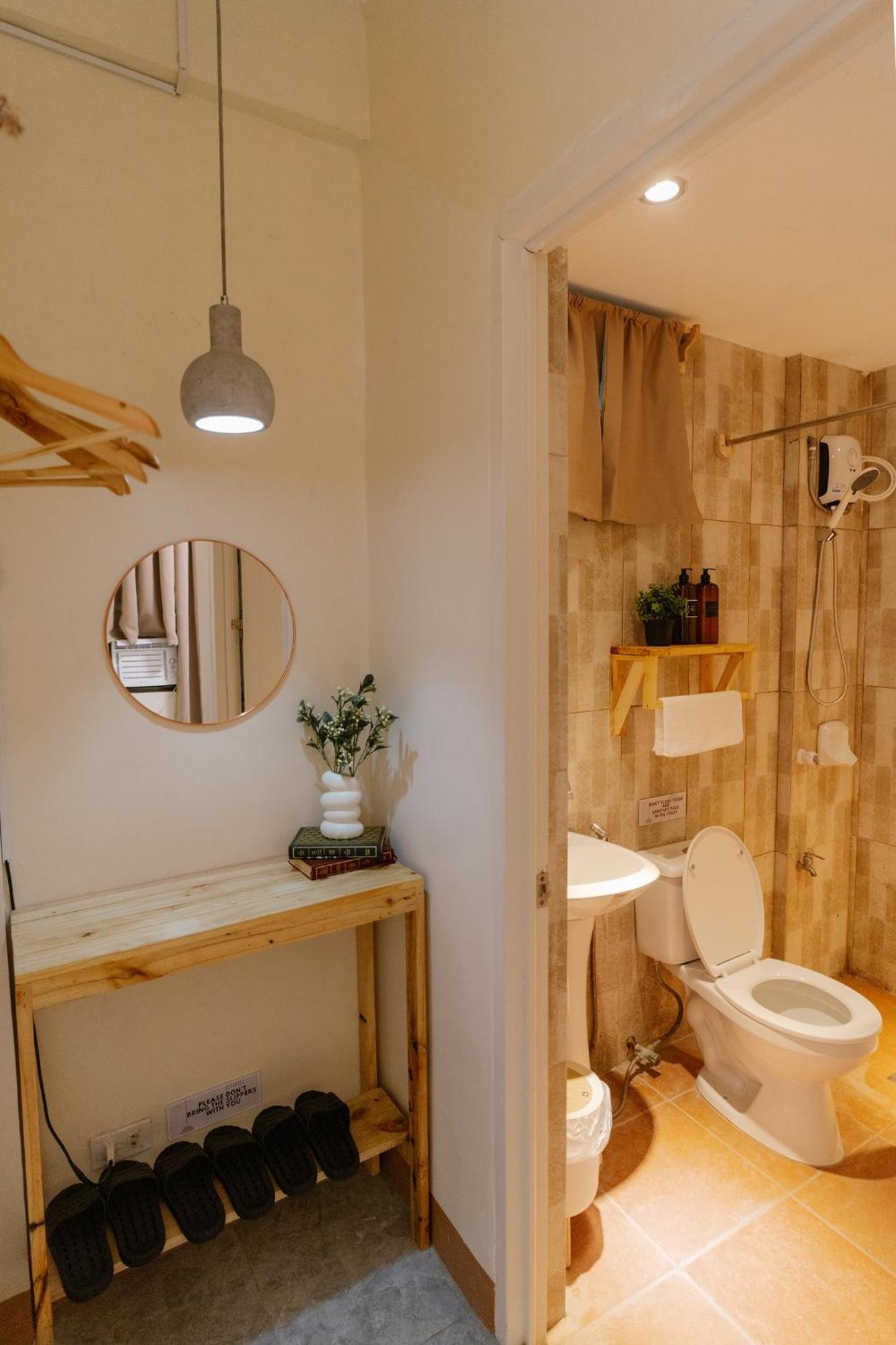 The room is tiny but cozy. We loved the amenities provided. A pull-out bed is also available if you'd like to have an extended bed. The bathroom is clean (for those who chose room w/ private bathroom) and there is a heater and toiletries as well. We also liked the indoor slipper that other lodgings doesn't have. We also liked the idea of self check-in. Overall, good experience :))