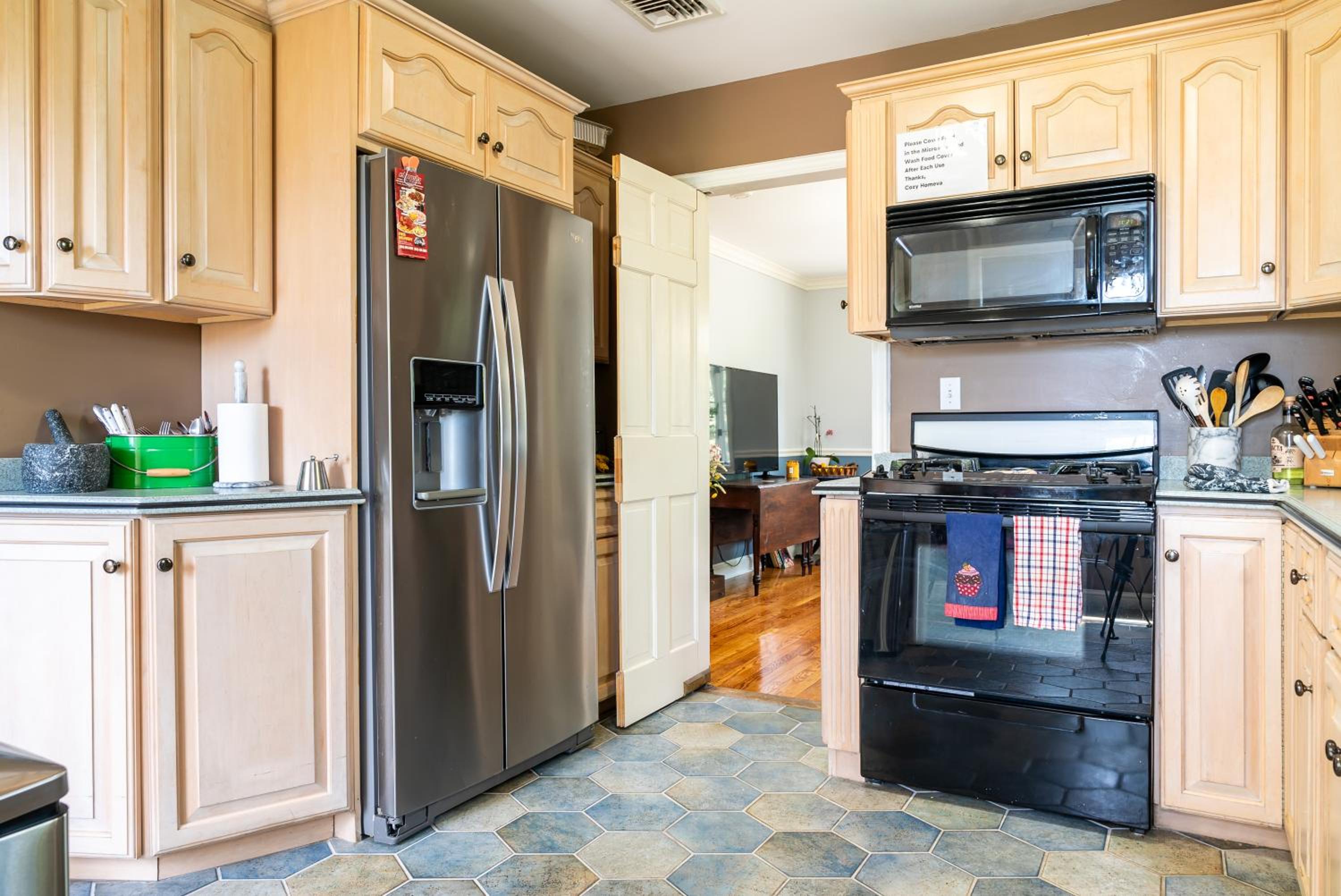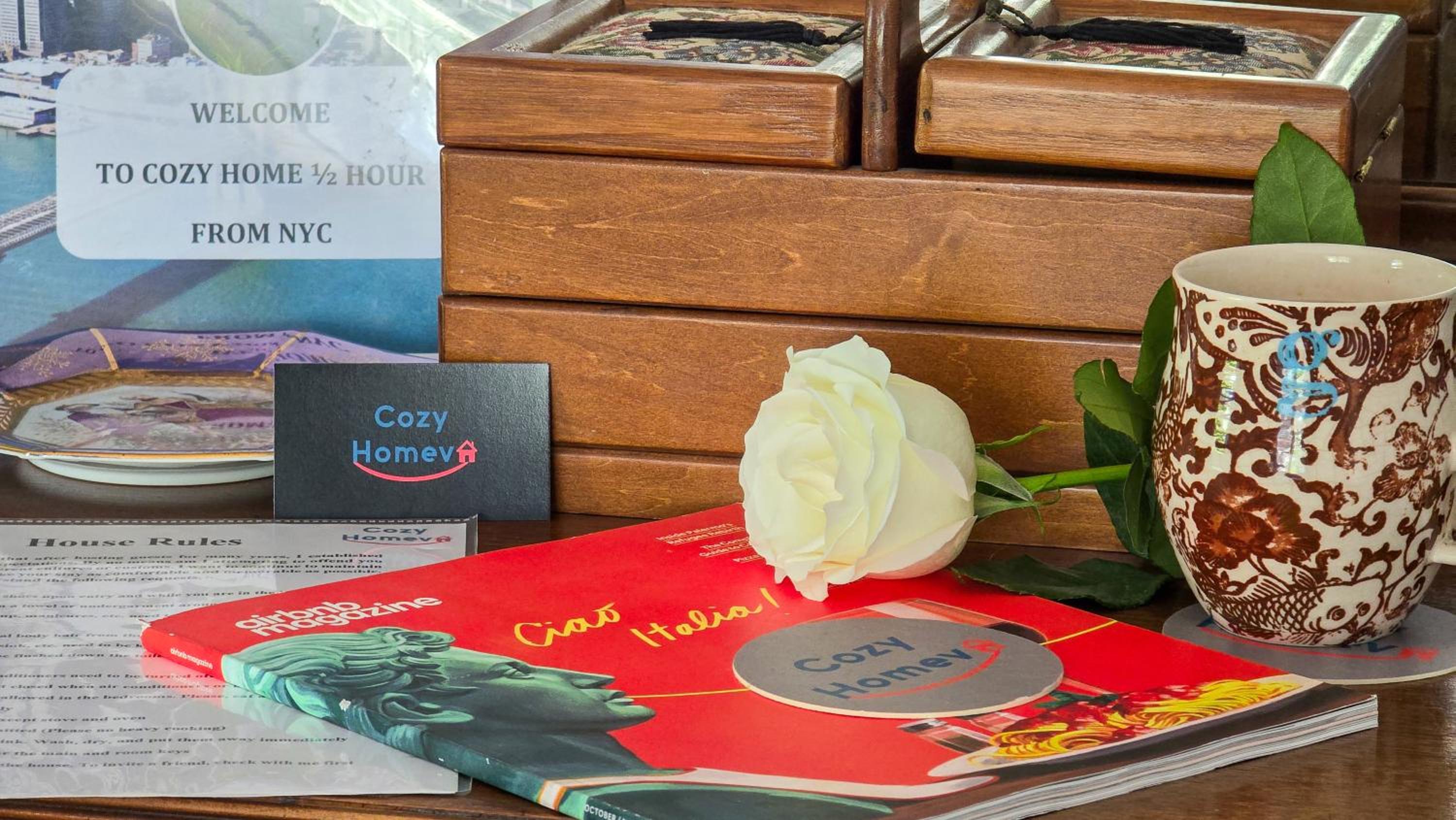 Cozy Homeva has everything you need: equipped kitchen, nice bathrooms, laundry facilities. Very good location, close to the train to NYC. Safe neighbourhood.