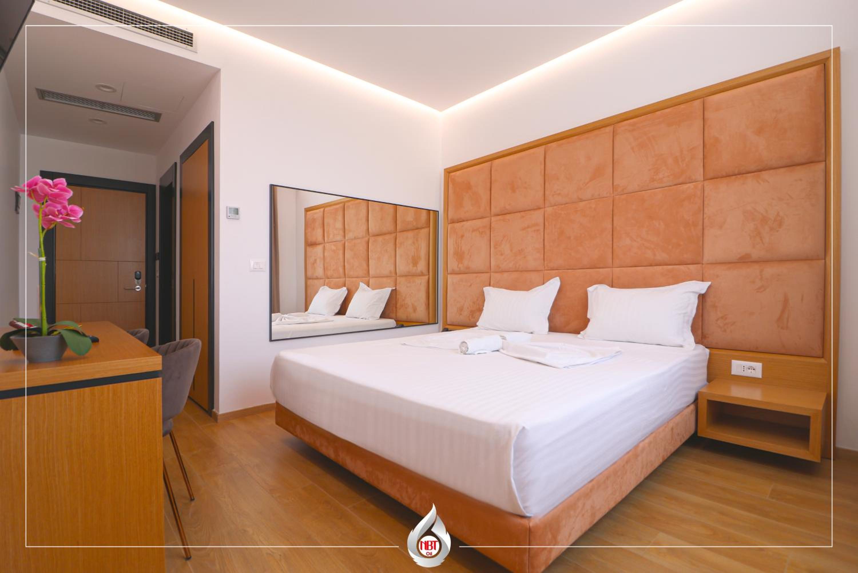 NBT Hotel Lac, located in Laç, offers upscale accommodation with modern amenities including a flat-screen TV, air conditioning, and plush bed linens.