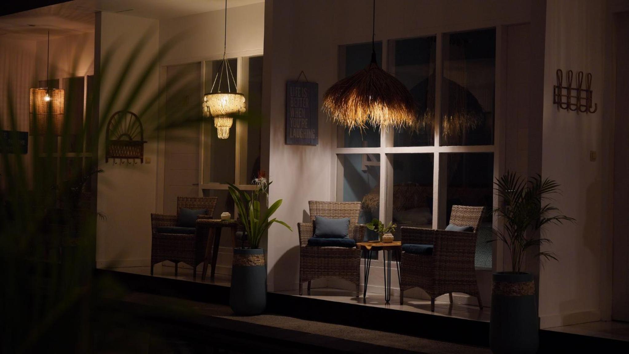 kävellen pimeällä matka ravintoloista tuntui pitkältä, mutta vuokrasimme polkupyörät jolloin matka taittui nopeasti. Oven raosta pääsee hyönteiset ja pikkuliskot sisälle, joten tämä kannattaa ottaa huomioon mikäli niitä kammoaa.
