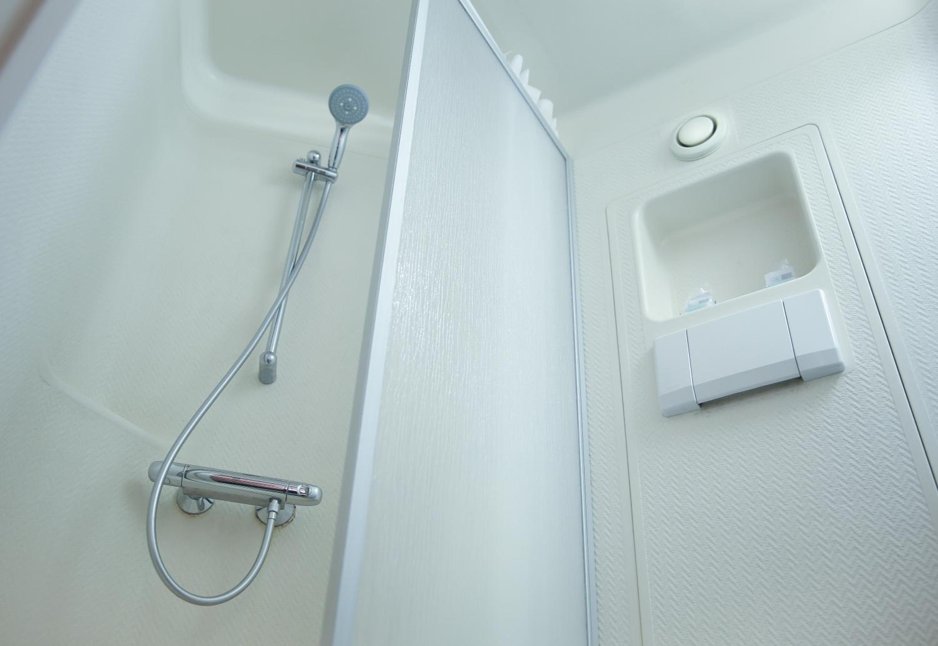 Douche un peu petite et eau pas assez chaude à mon goût... ( mais j'aime les 42°c )