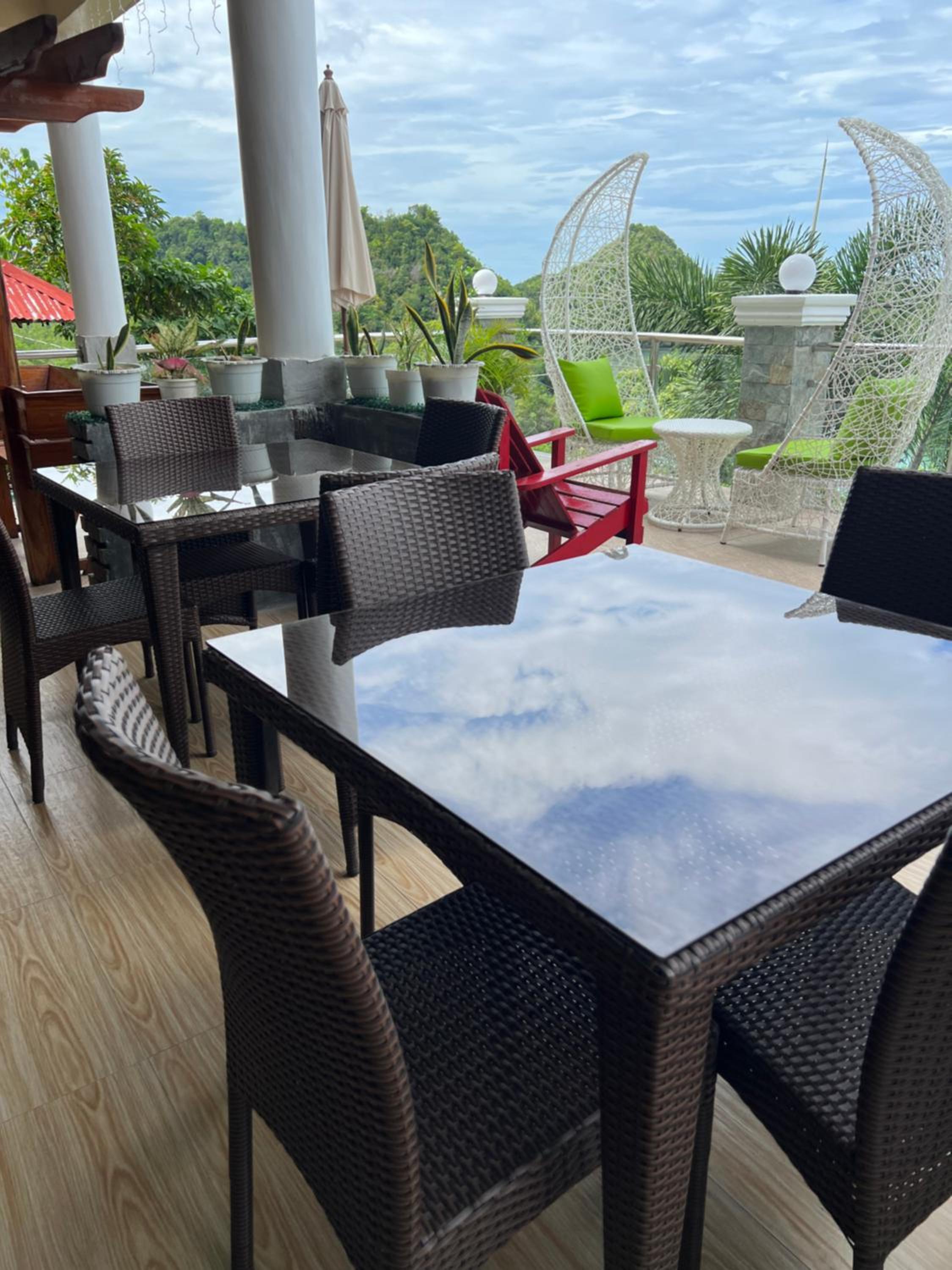 The view from the rooms and the restaurant is outstanding. It overlooks some wonderful islands and at sunset is surreal. We ate at the restaurant and the food was excellent. Value for money is excellent. The swimming pool is fantastic and I also walked down the steps and went for a swim in the ocean.