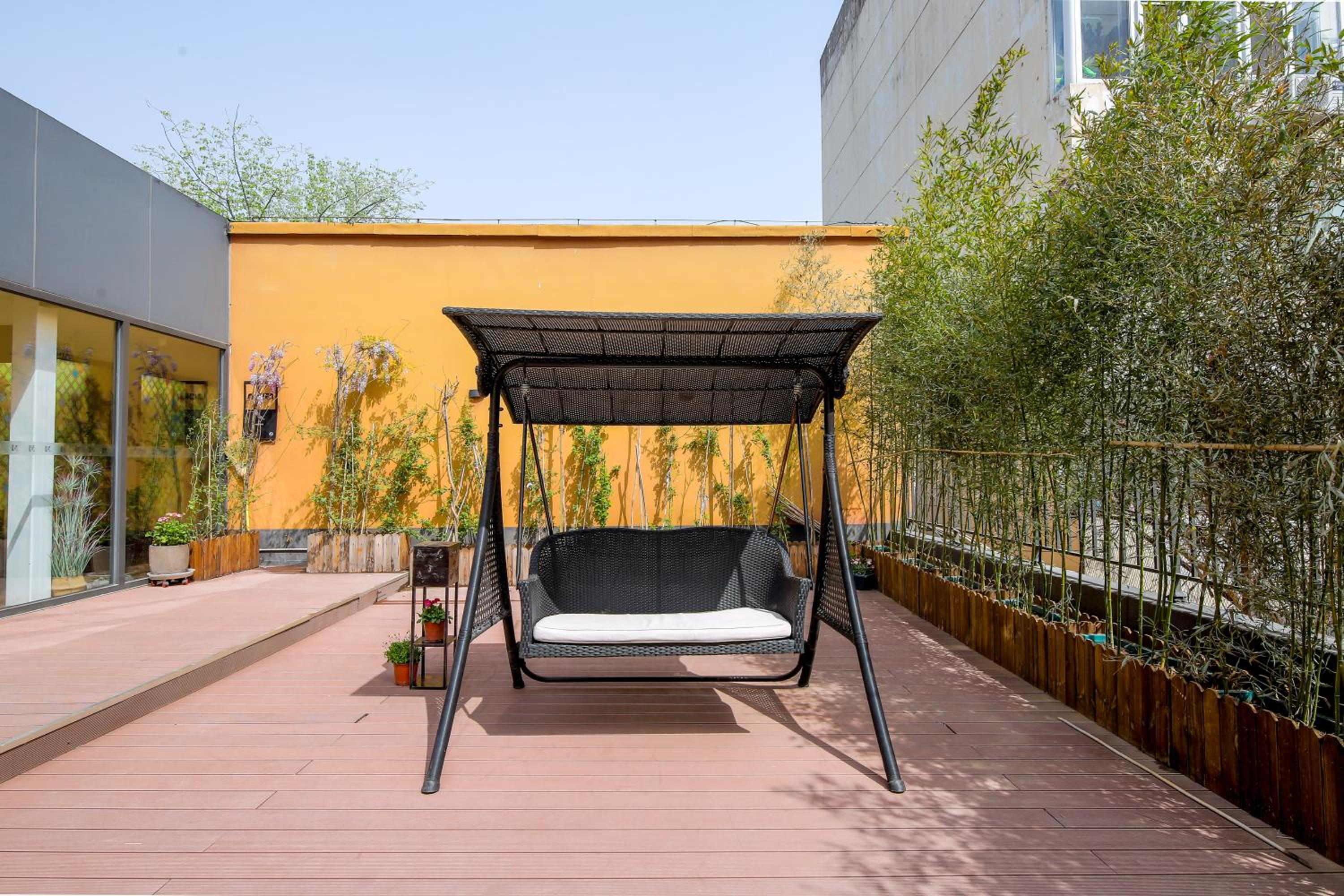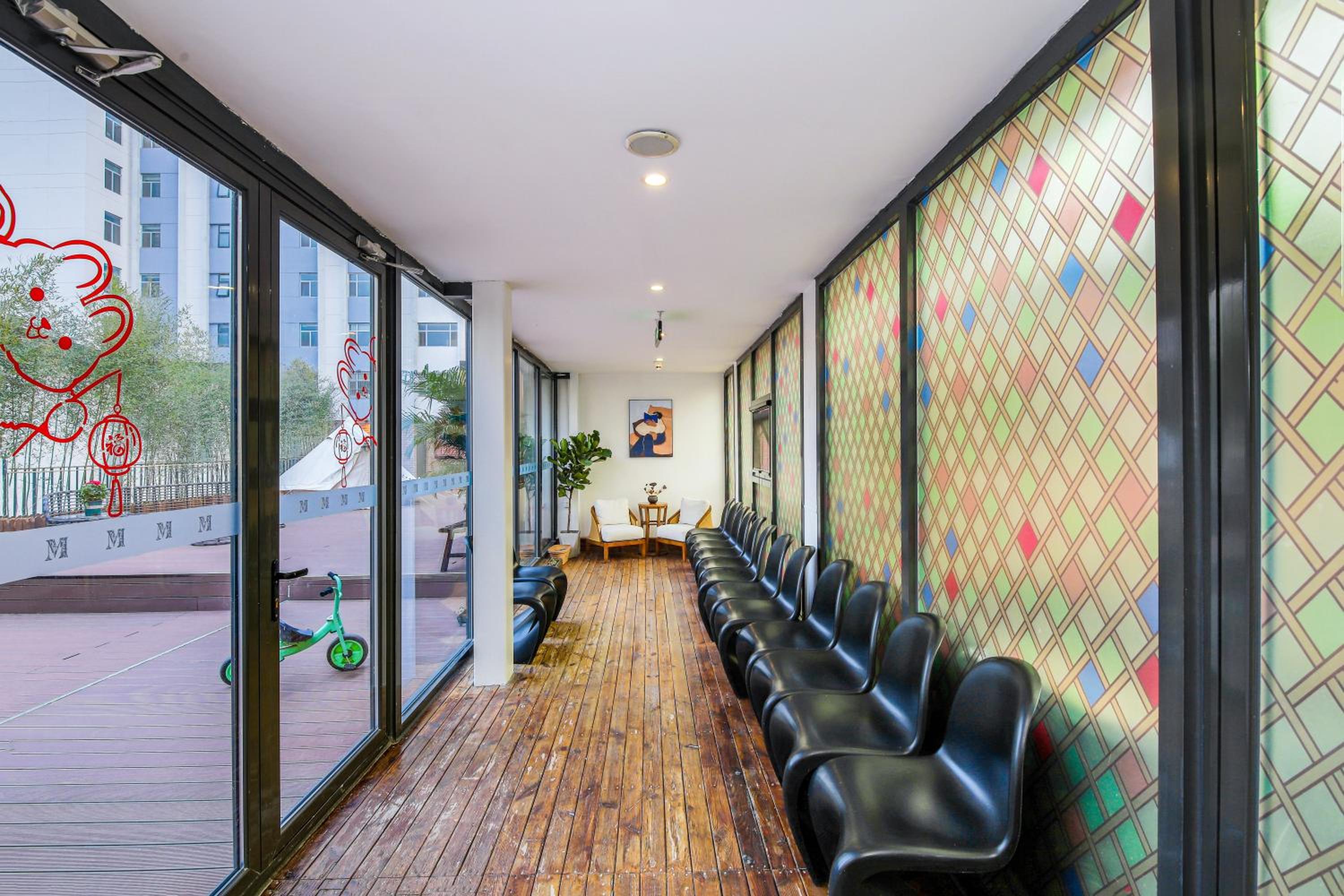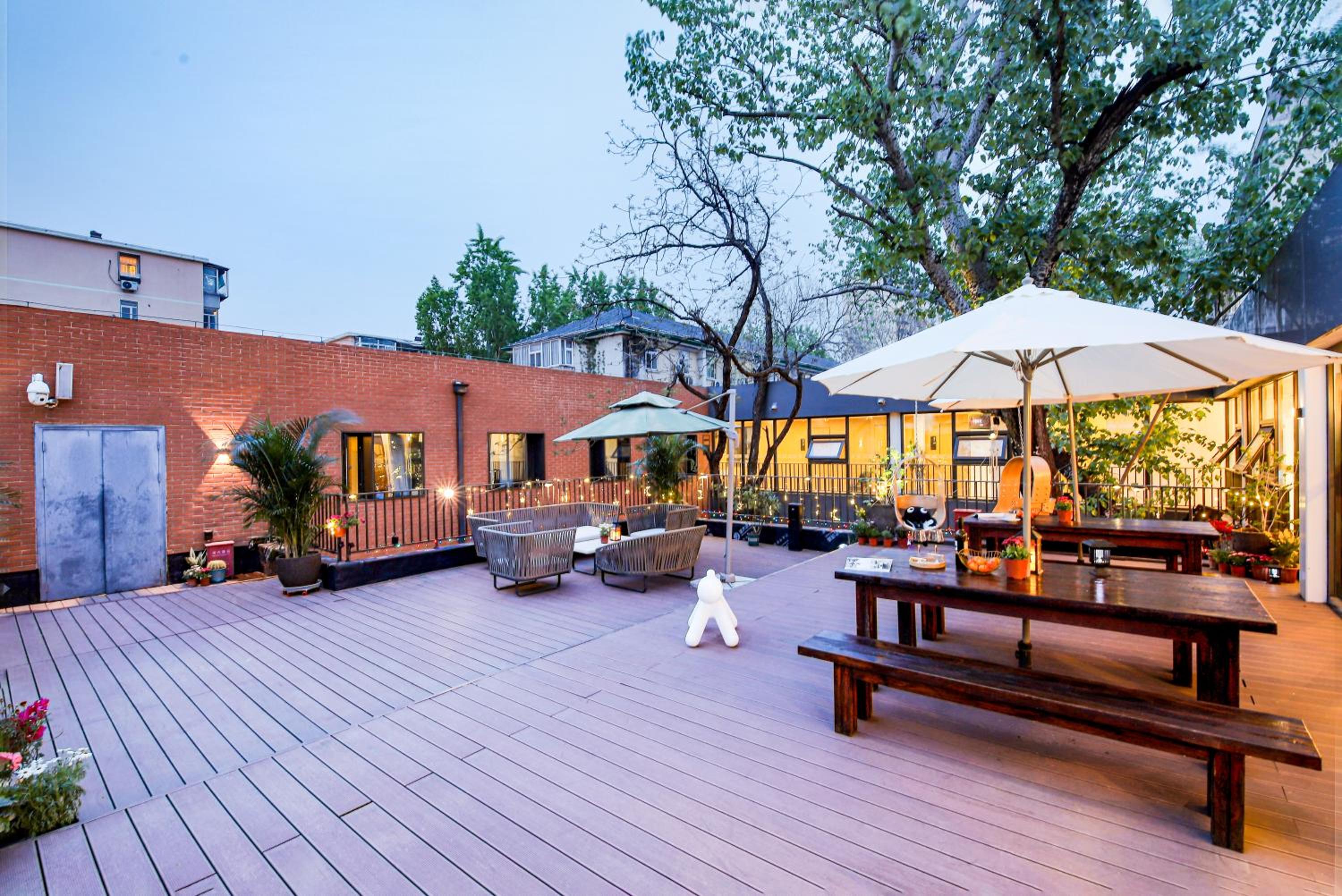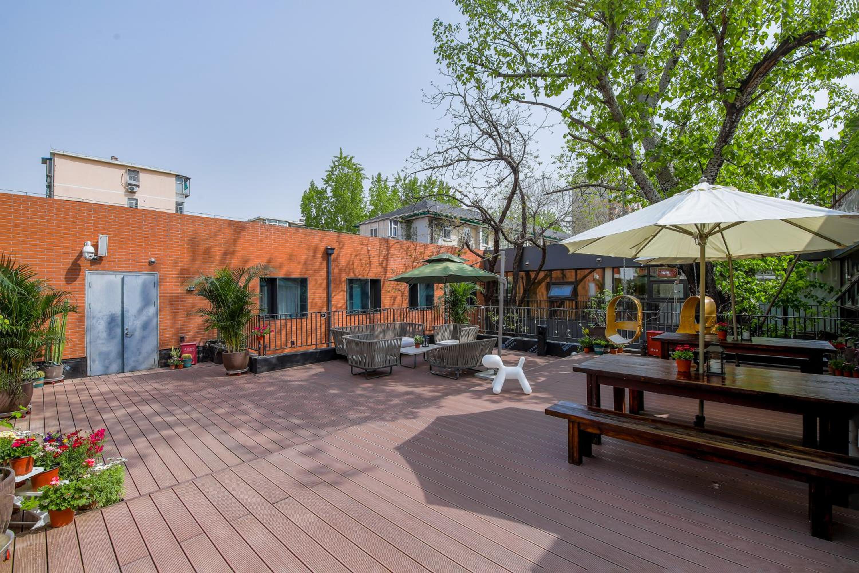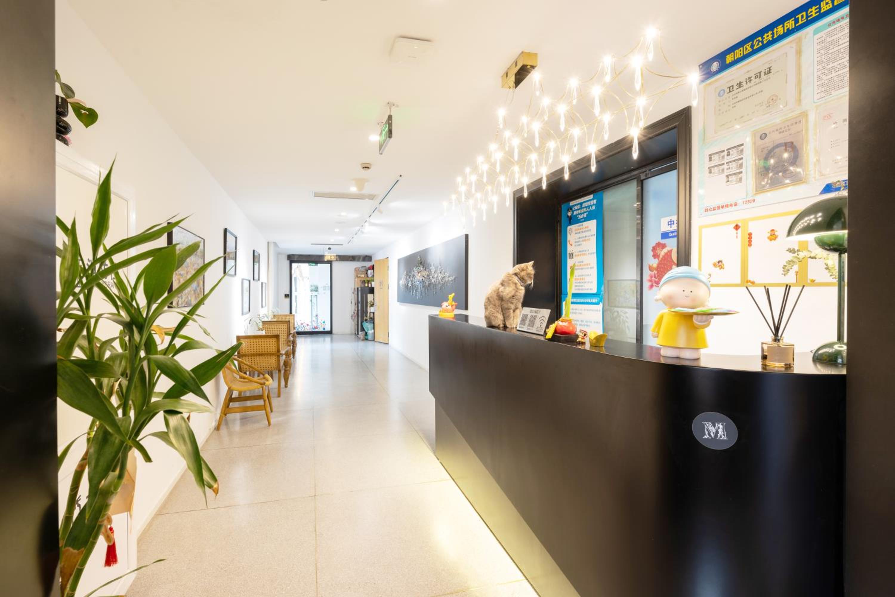 This cozy boutique hotel had incredible charm and offered a peaceful atmosphere despite being a couple hundred meters from major roads. It is tucked away in a smaller ally, ushing in some quiet, although the location is still near plenty of restaurants. The hotel is incredibly clean and is monitored by several cats. The staff is friendly but you may struggle if you can't speak any Mandarin. Room info was transmitted to me via Wechat. The room I booked was incredibly spacious and comfortable. While the furniture was a bit dated, the overall layout was great. There was a big closet to hang clothes, a huge desk to do work, a compact couch to lunge on and plenty of bathroom and other amenities. Outside the door was a nice courtyard that was beautifully lit up at night. The bathroom had its own washer and was blessed with a nice shower. As I departed on my last day, one of the staff provided me with a bag of treats as a gift. Top notch all the way. About an 8 minute walk from the nearest metro station and the bustling Sanlitun shopping district not much further. Can't recommend enough.
