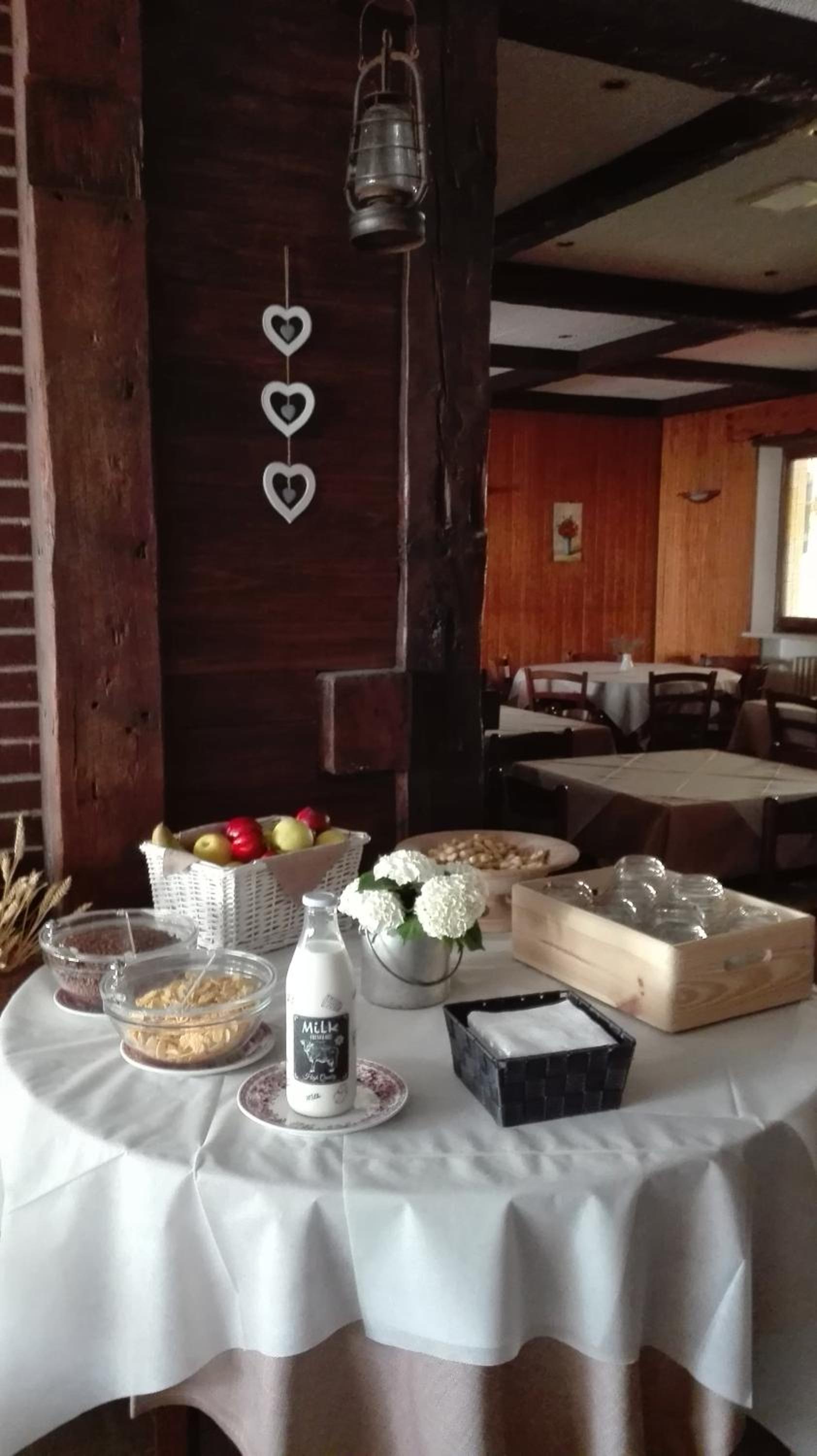 The restaurant at Saint Nicolas serves Italian cuisine and specialties from the Aosta Valley region. A sweet breakfast is offered daily. Meals are based on fresh local products.
