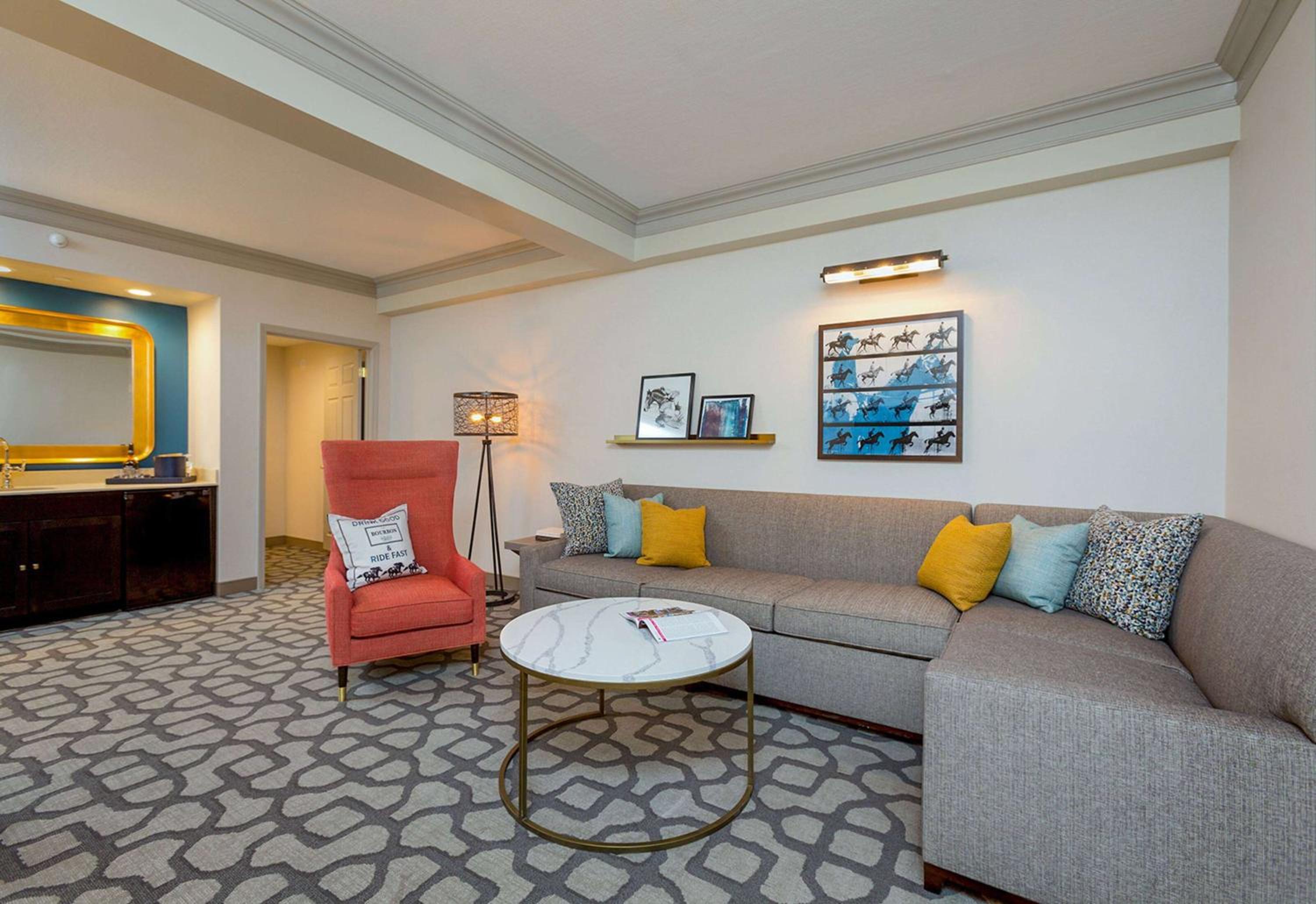 Enjoy modern rooms with stunning city and river views, equipped with all necessities. Stay fit at the rooftop gym, shop at the lobby stores, and benefit from the UPS store. Plus, easy access to the Louisville Arena and Louisville International Airport.