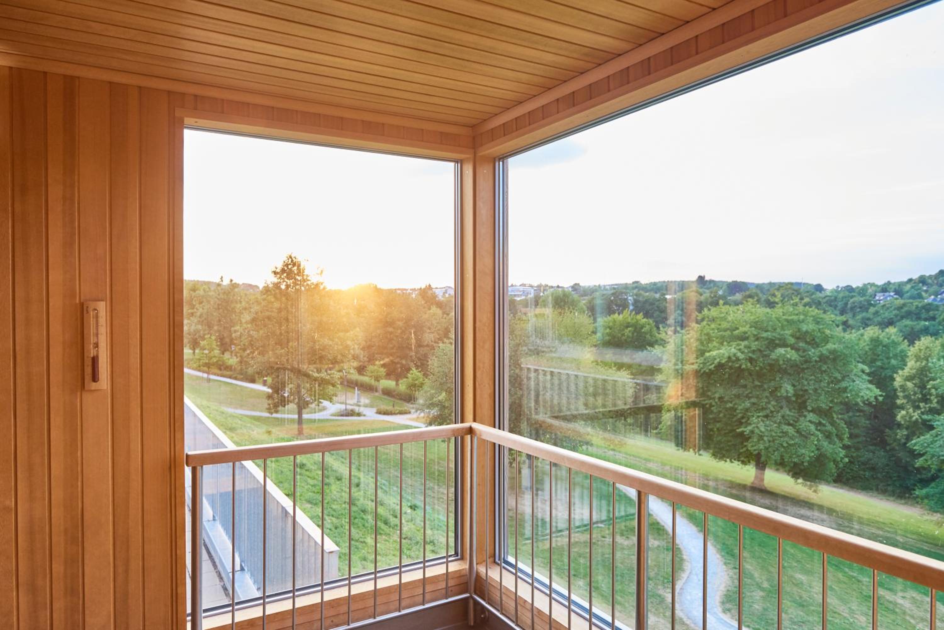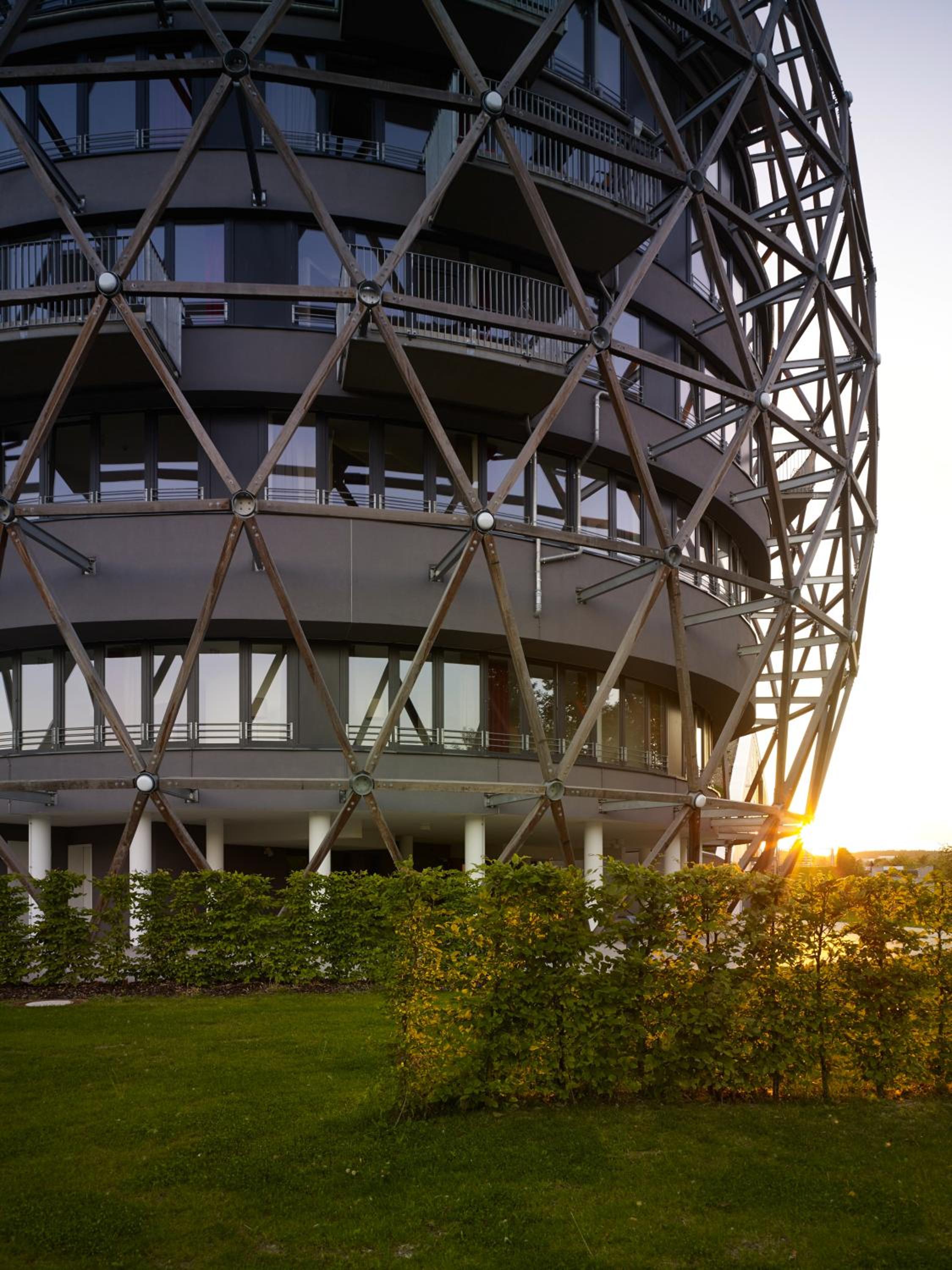 The Hotel Oversum stands out with its distinctive egg-shaped exterior and boasts a spacious wellness area featuring an indoor swimming pool, Finnish sauna, and spa showers.