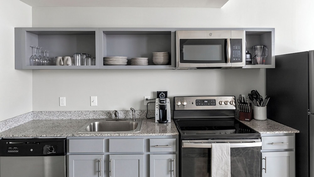 Relax in individually decorated guestrooms with kitchens featuring full-sized refrigerators, ovens, microwaves, and coffee/tea makers.