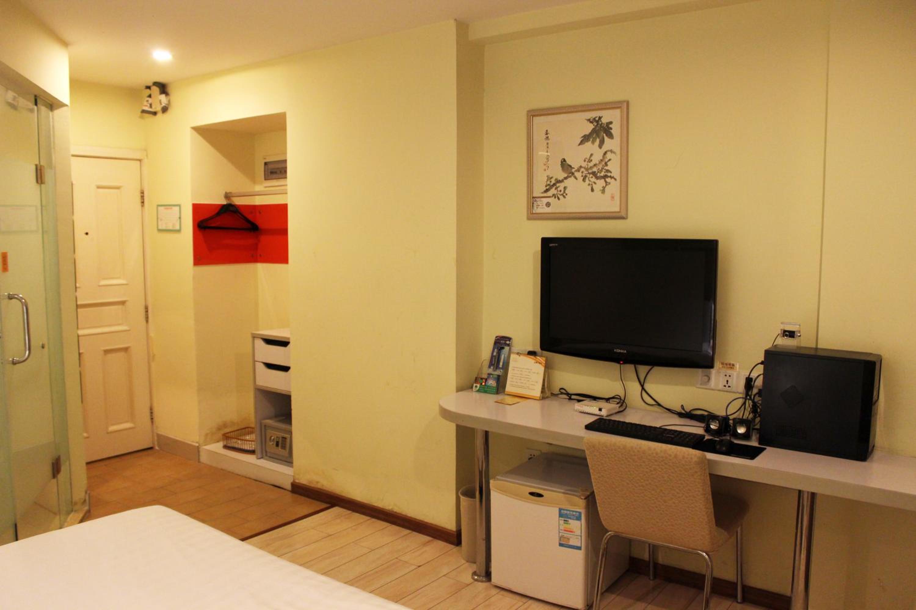 The pictures showed some better facilities. The room is small, has no refrigerator, the shower ran out of hot water pretty quickly, and it's an uncomfortable spring bed that you get. The area outside is fine but it smells like cigarettes and seems unwelcoming compared to the rest of Shenzhen.
