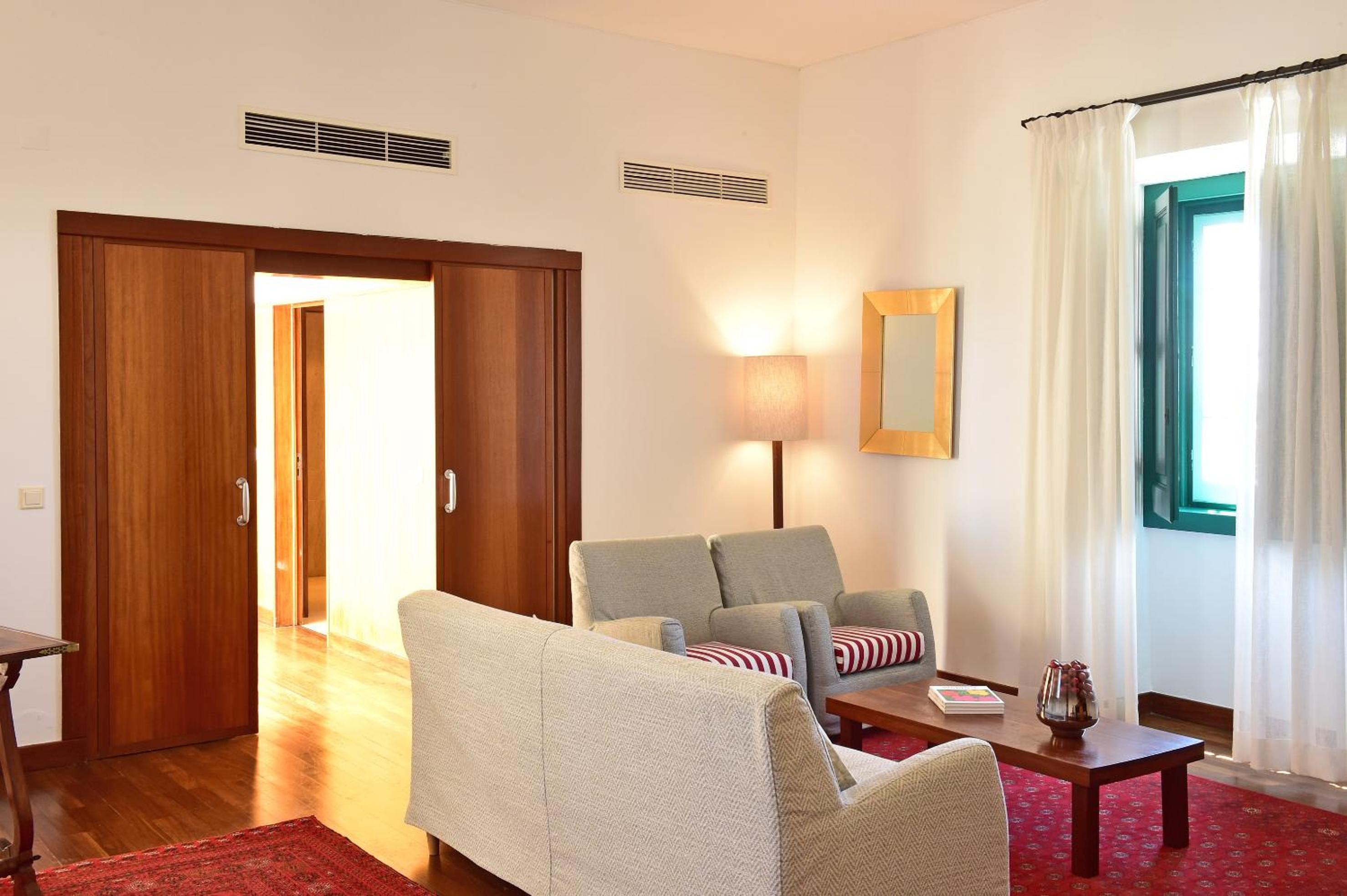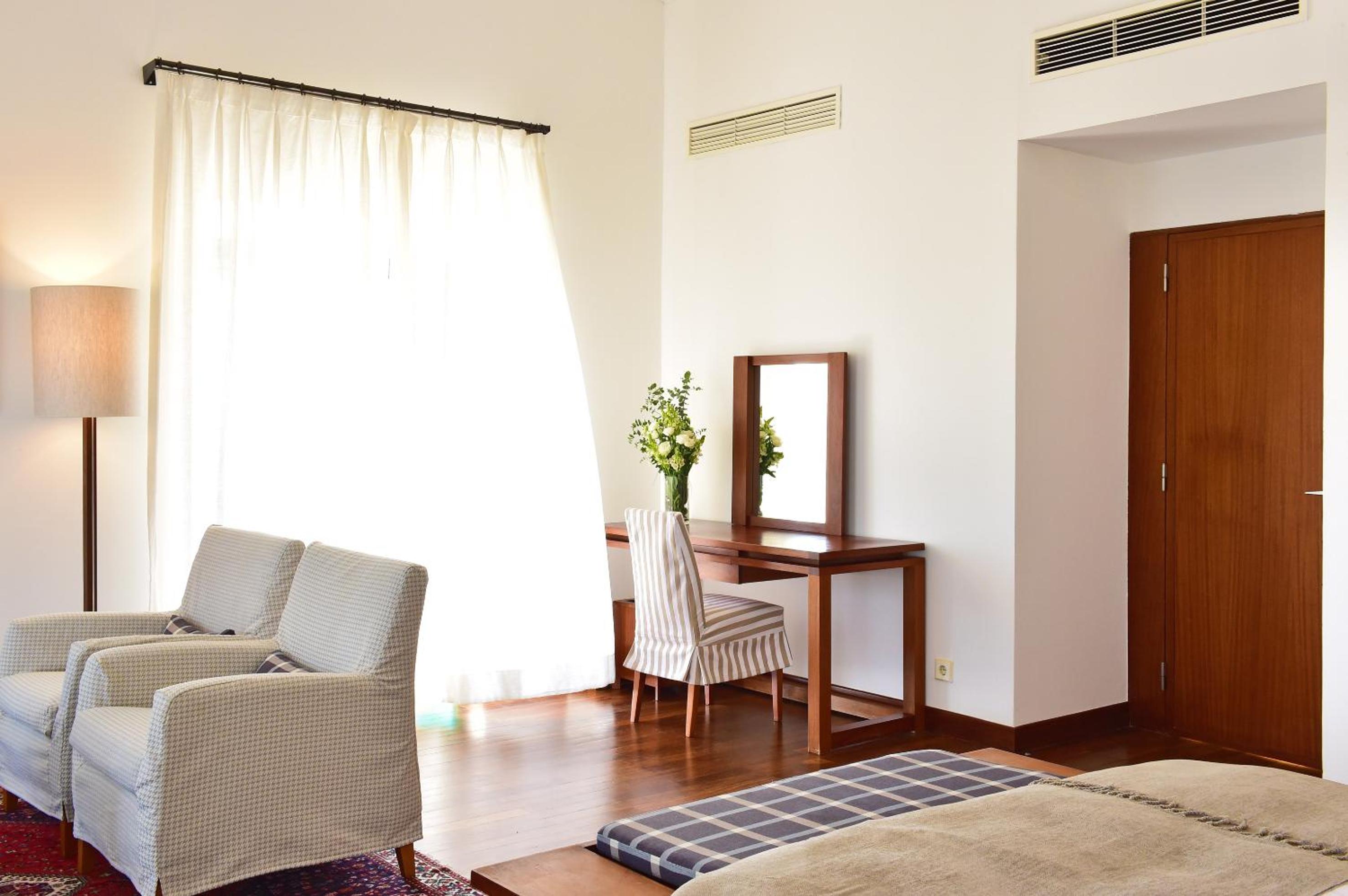 Each room at Pousada Castelo de Alcacer do Sal is elegantly furnished with cable TV, a minibar, and a modern en suite bathroom. The cozy decor and wooden furniture create a warm and inviting atmosphere for guests.