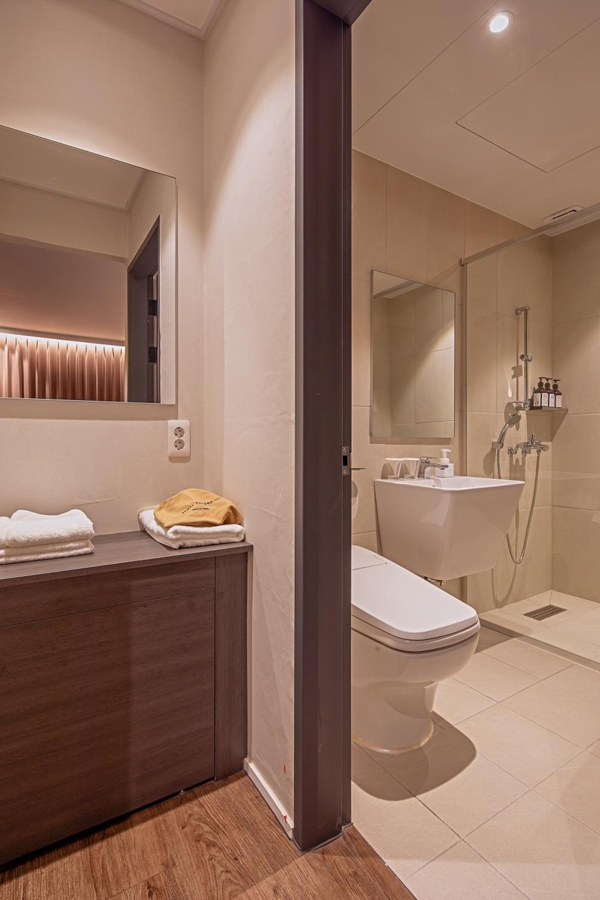 방음이 좀 안되고, 샤워실 물이 잘 배수가 안됨.