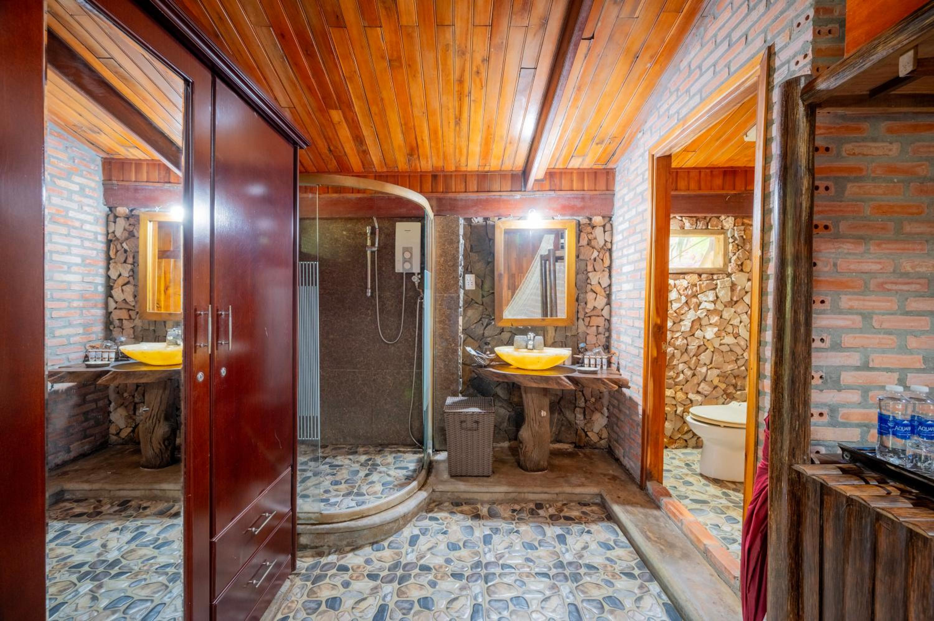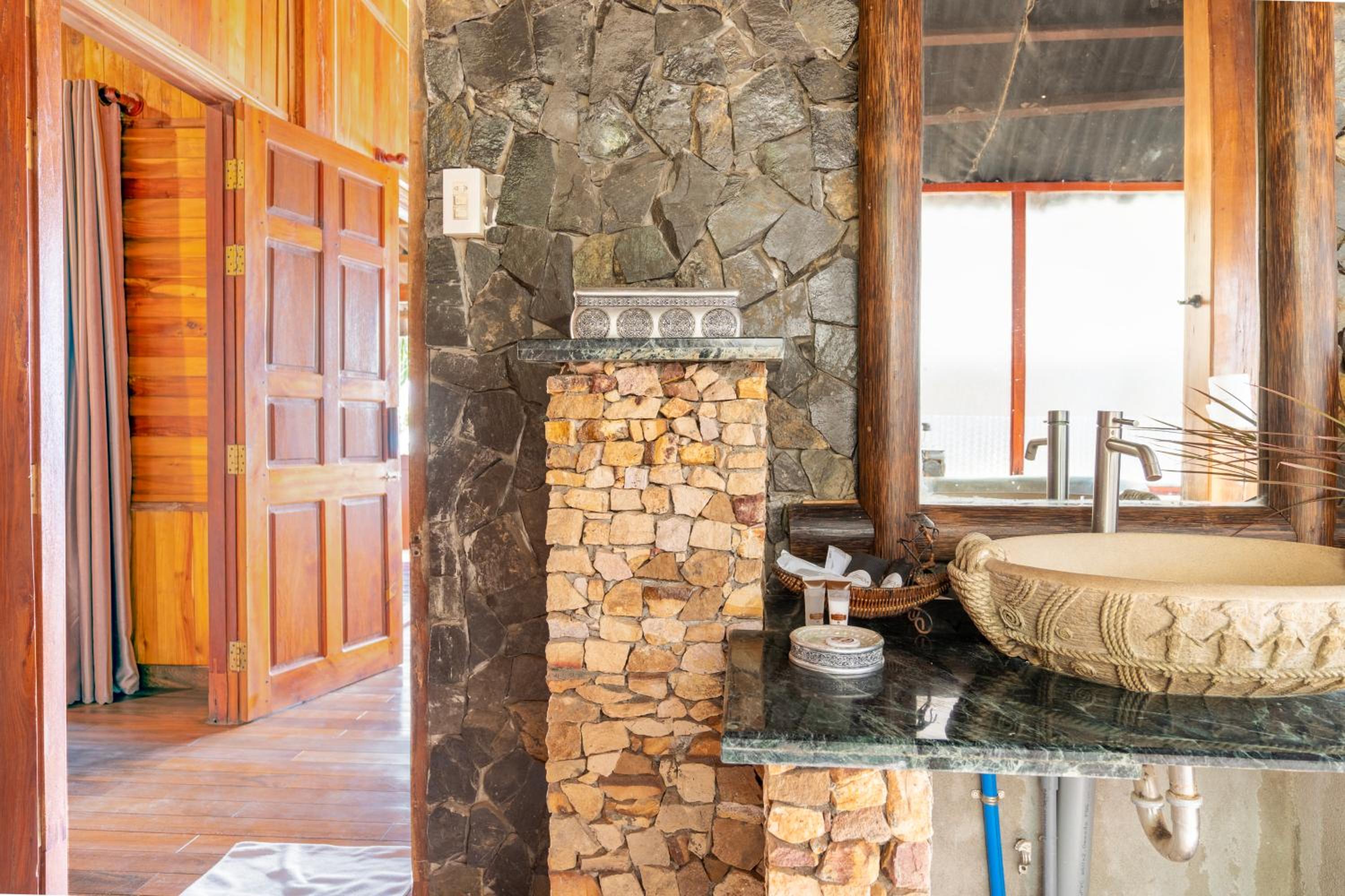 Lack of maintenance, shower (one door out of the two missing) and replace with a simple curtain, corrugated floor and unjoined parquet slat. When it’s raining a lot, there is a small leak coming from the roof (reported at the reception). Breakfast buffet is not kept at temperature, the Fruits should be covered cos a lot flies. The staffs restaurant not reactive, lack of training. Canoes are available unfortunately they take water.