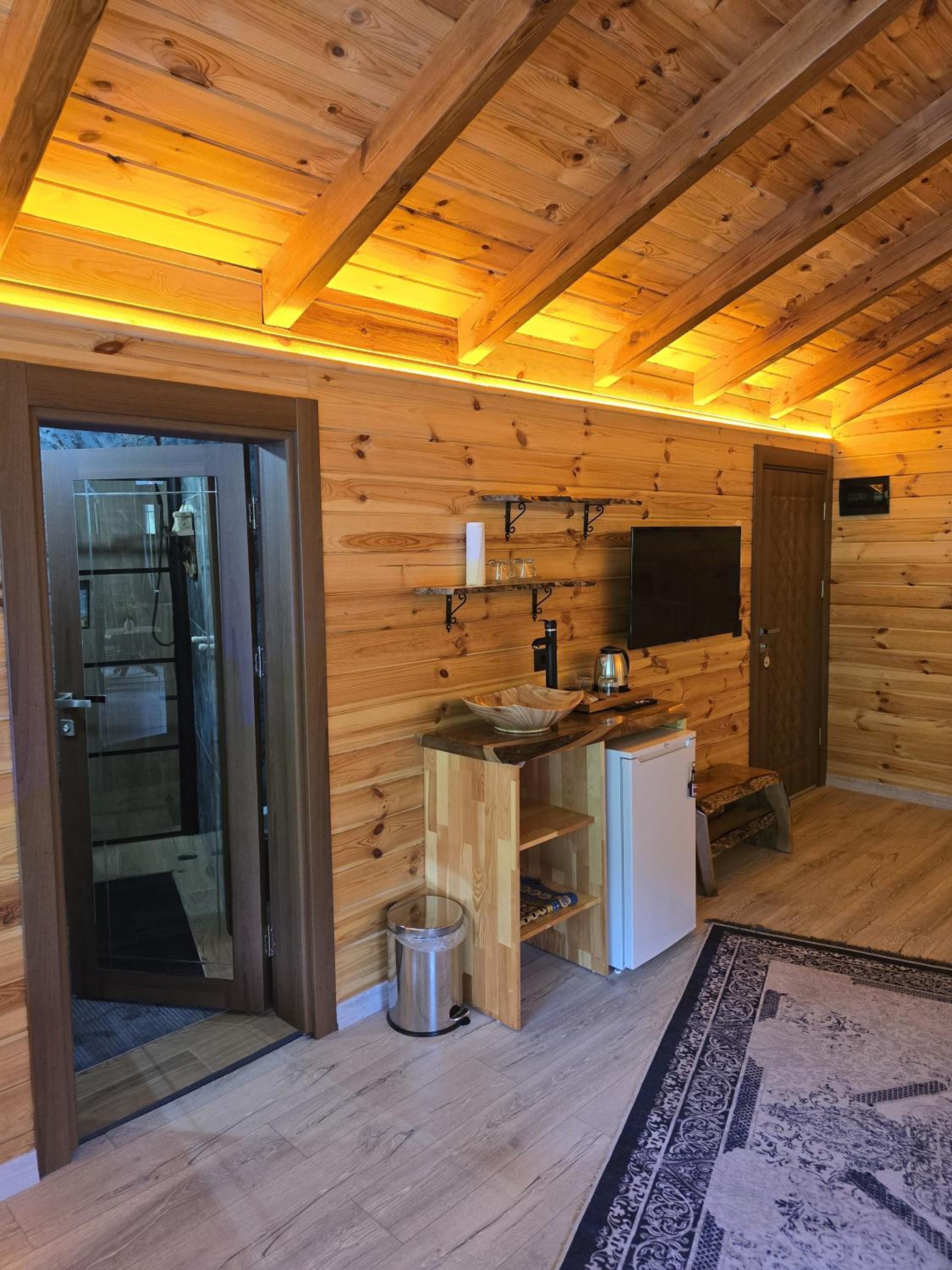 كل شي جميل الكوخ والاطلالة والاثاث والتصميم والافطار والاستقبال واخص بالشكر سردار على حسن استقباله لنا