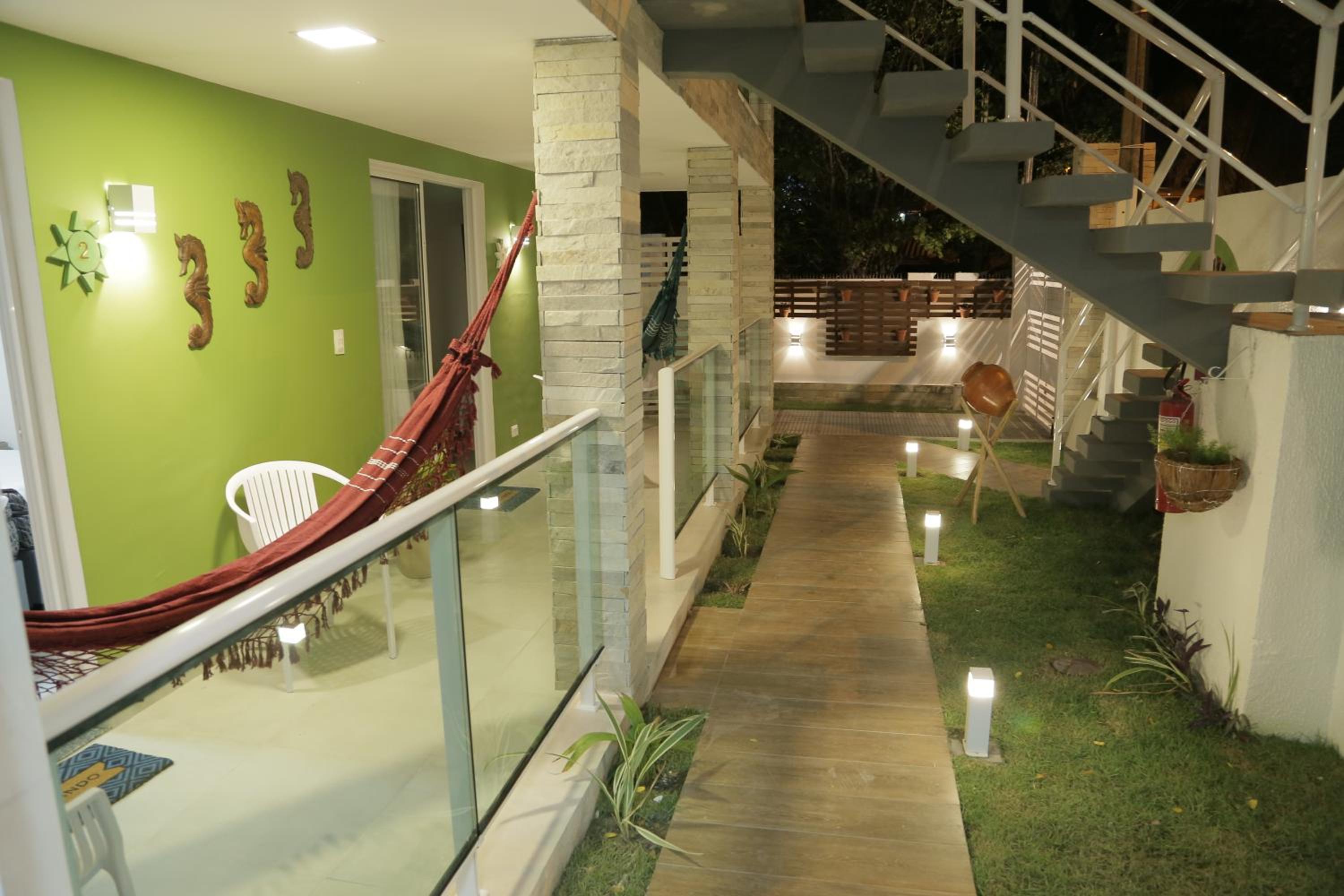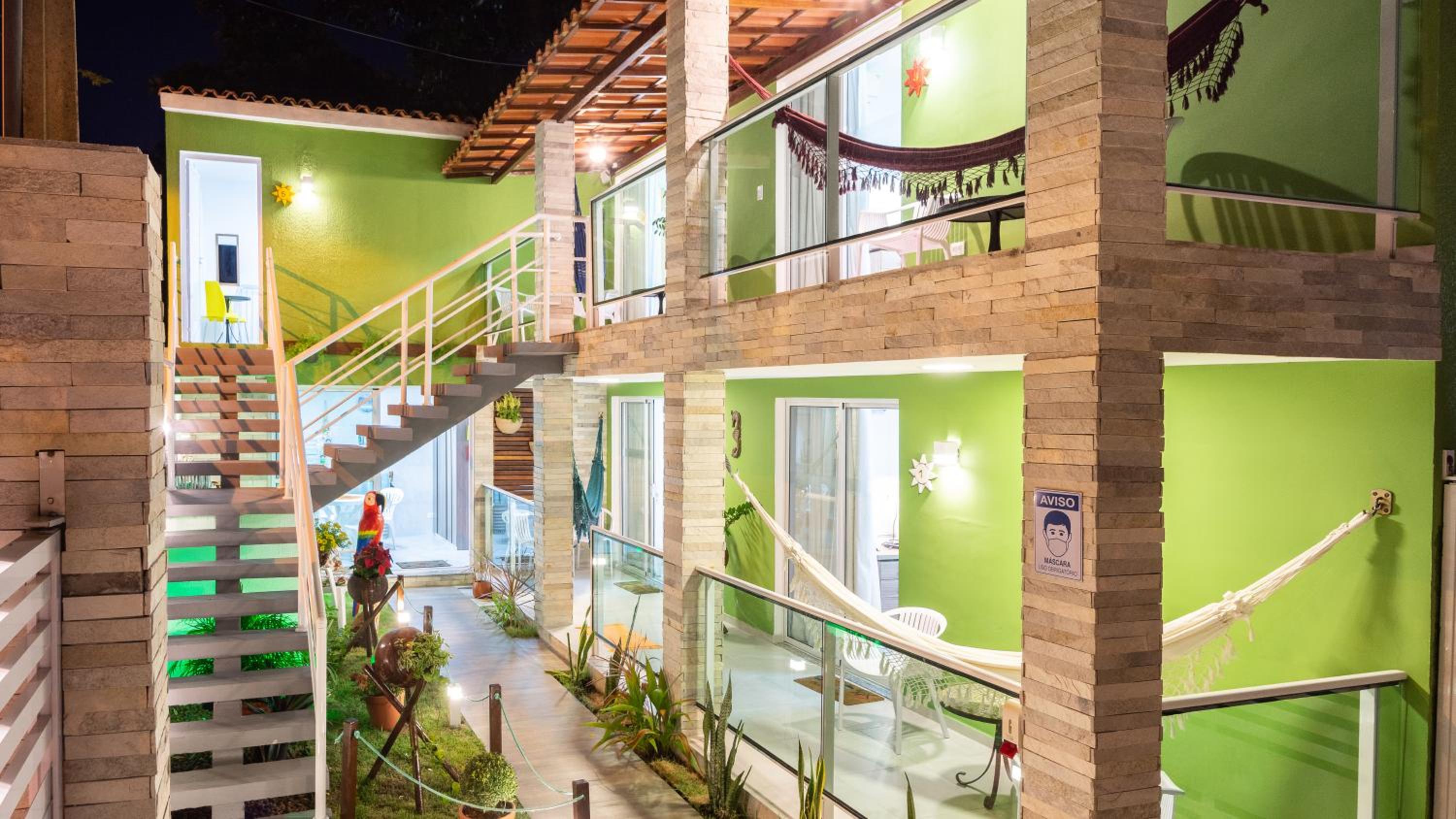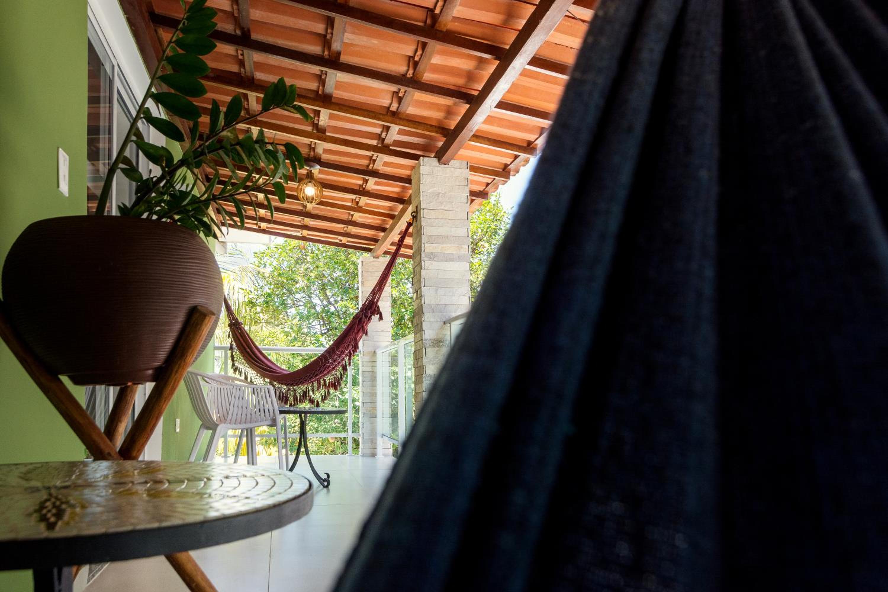 localização bem perto do centro de Porto de Galinhas. quarto muito limpo e ar condicionado muito forte e bom. cama de rede disponível nos quartos com varanda, super confortável. pequena cozinha partilhada disponível, o alojamento disponibiliza gratuitamente sombrinha e cadeiras de praia, coolers para levar para a praia e café e um bolinho delicioso cada dia.