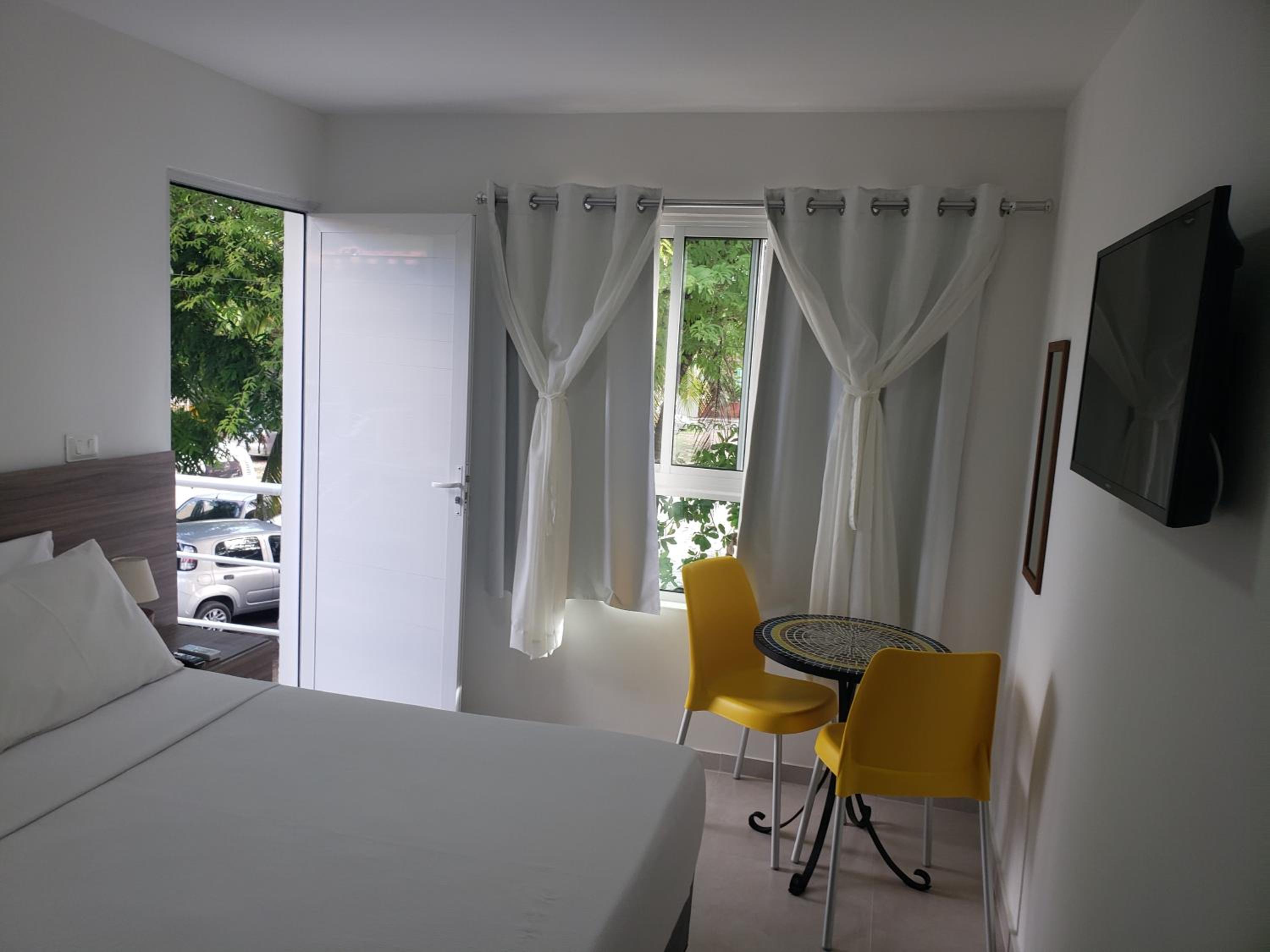Achei o quarto um pouco pequeno, mas não atrapalhou a estadia. A cortina da porta do quarto 1 é muito grande, arrastando no chão, é preciso ter cuidado para não tropeçar.