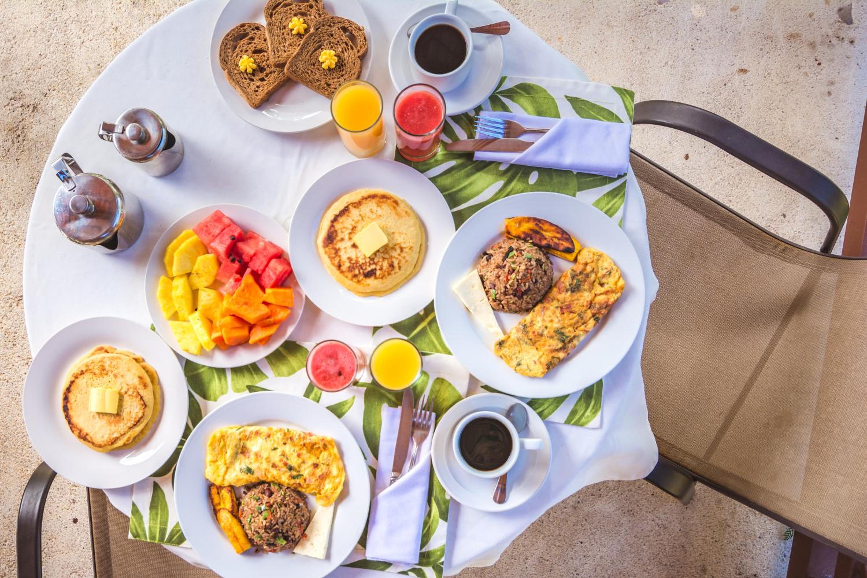 Great breakfast to order as opposed to a buffet! Between the 4 of us we had the typical Costan Rican breakfast, traditional american breakfast, omelettes and pancakes! Everything was delicious and fresh! They also had fresh fruit you could hep yourself to!