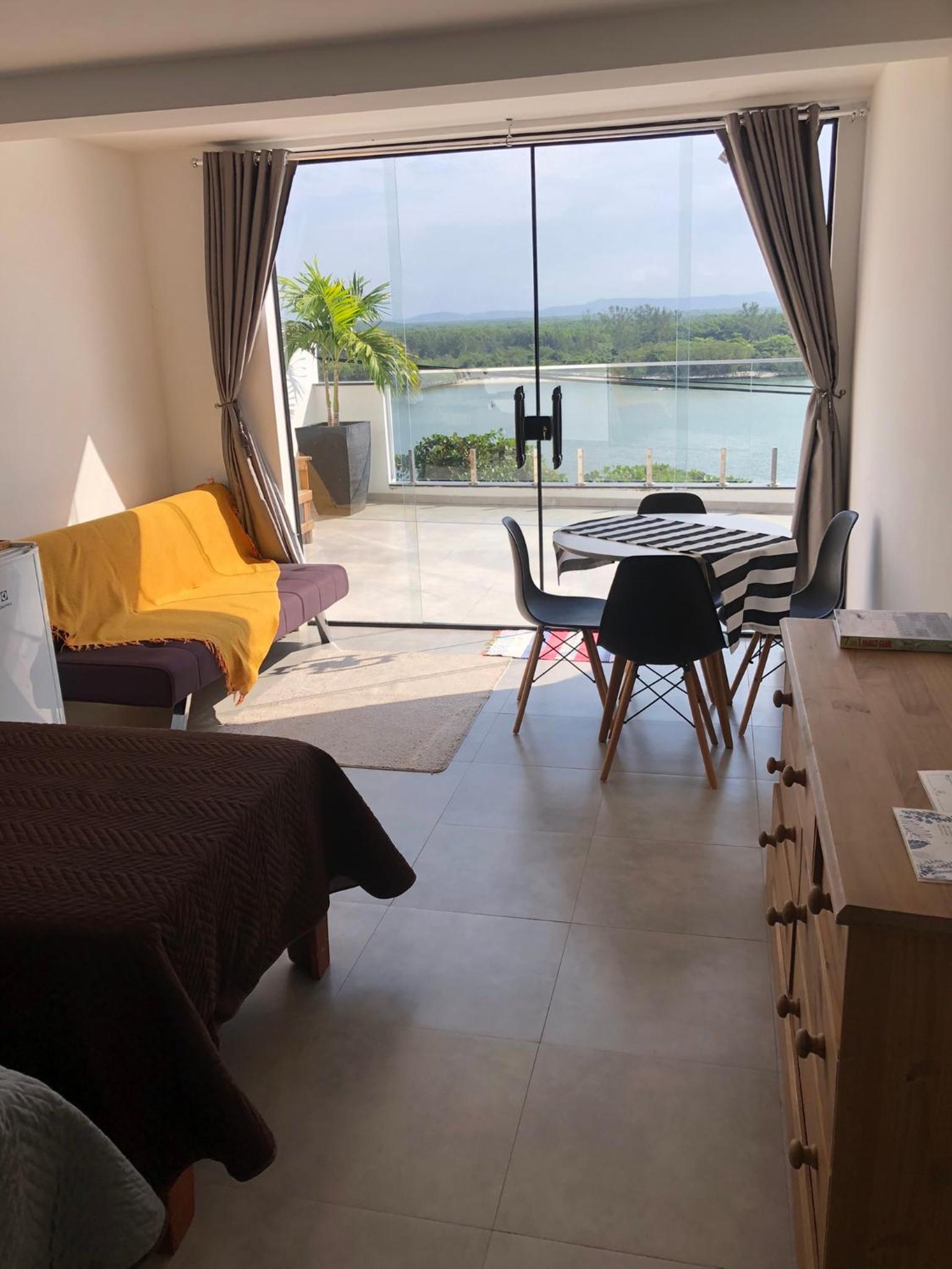 Equipe muito atenciosa durante a estadia. O quarto é amplo e confortável, com uma vista linda para a restinga de marambaia. Embora a acomodação dê para a rua, foi silencioso para dormir. A cama é bastante confortável também. Gostei muito da máquina de café no quarto.