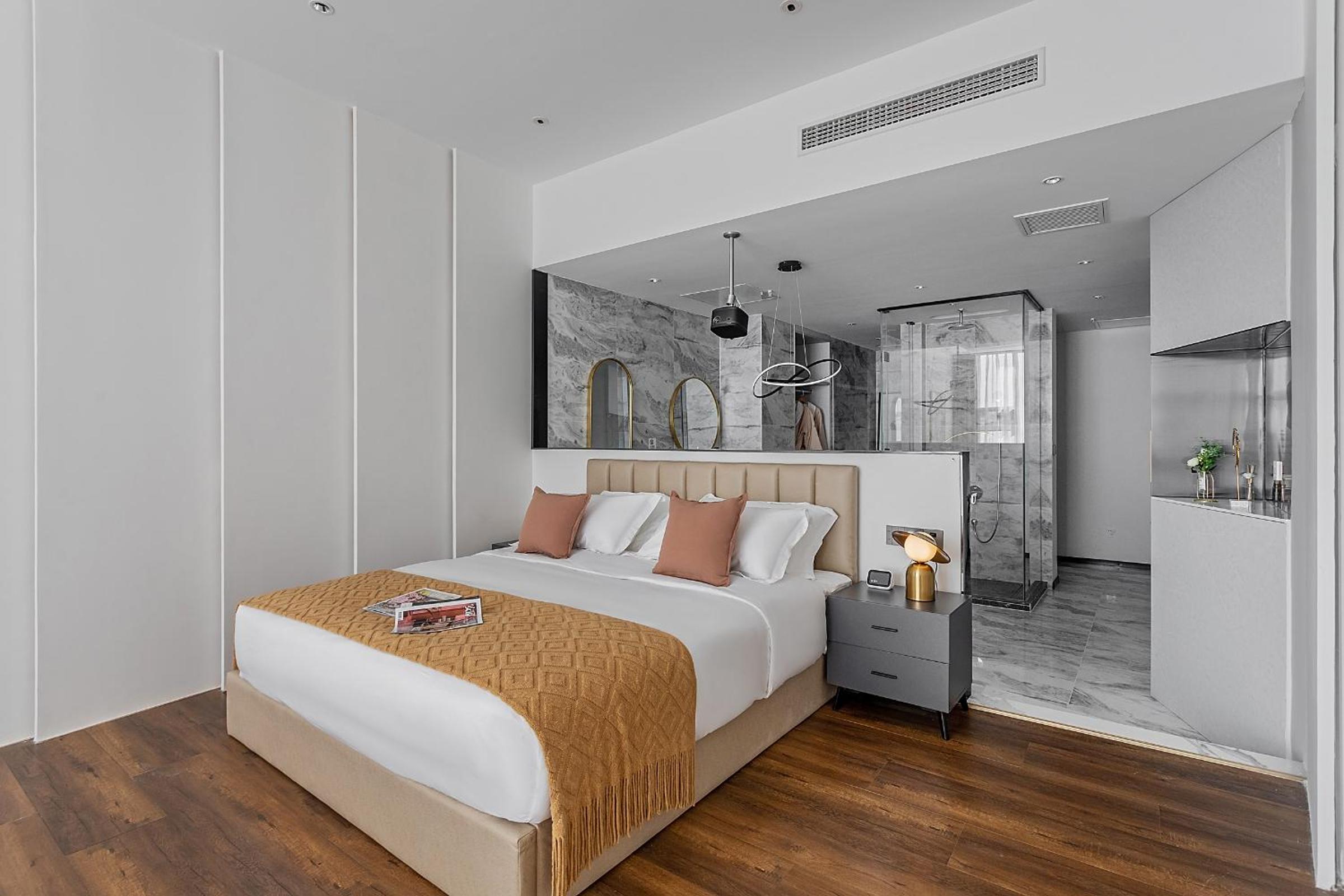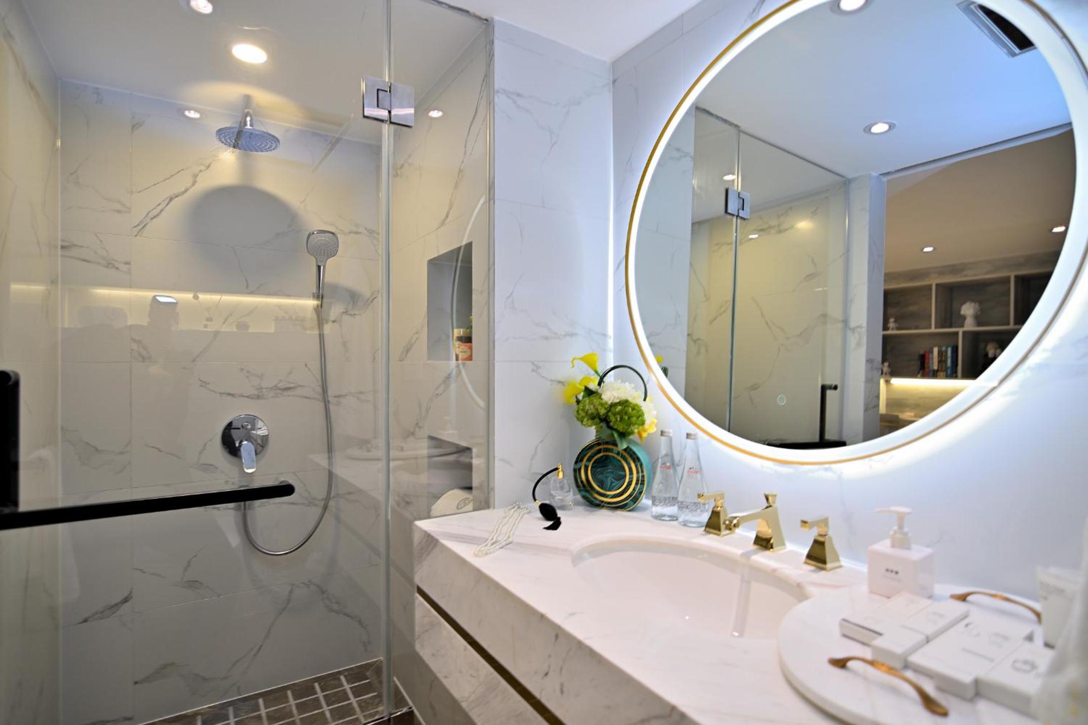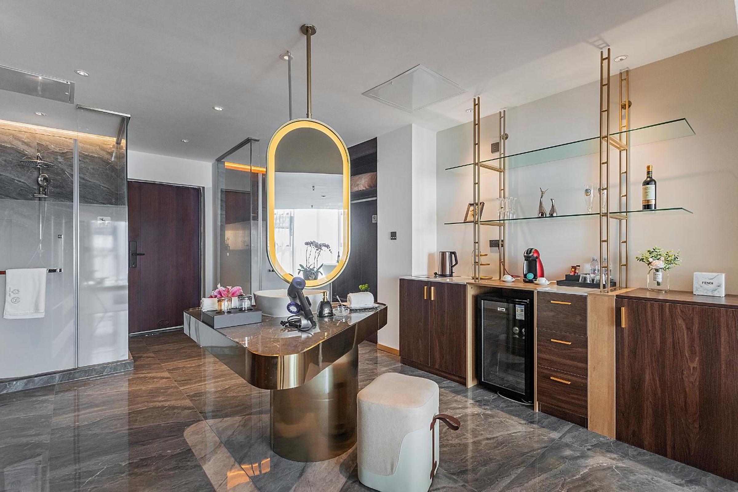 Huge room and luxurious thoughtful fittings. Love the choice of lightings. High floor with view. Short walk from metro station. Good location. Fast response. Will stay there again.