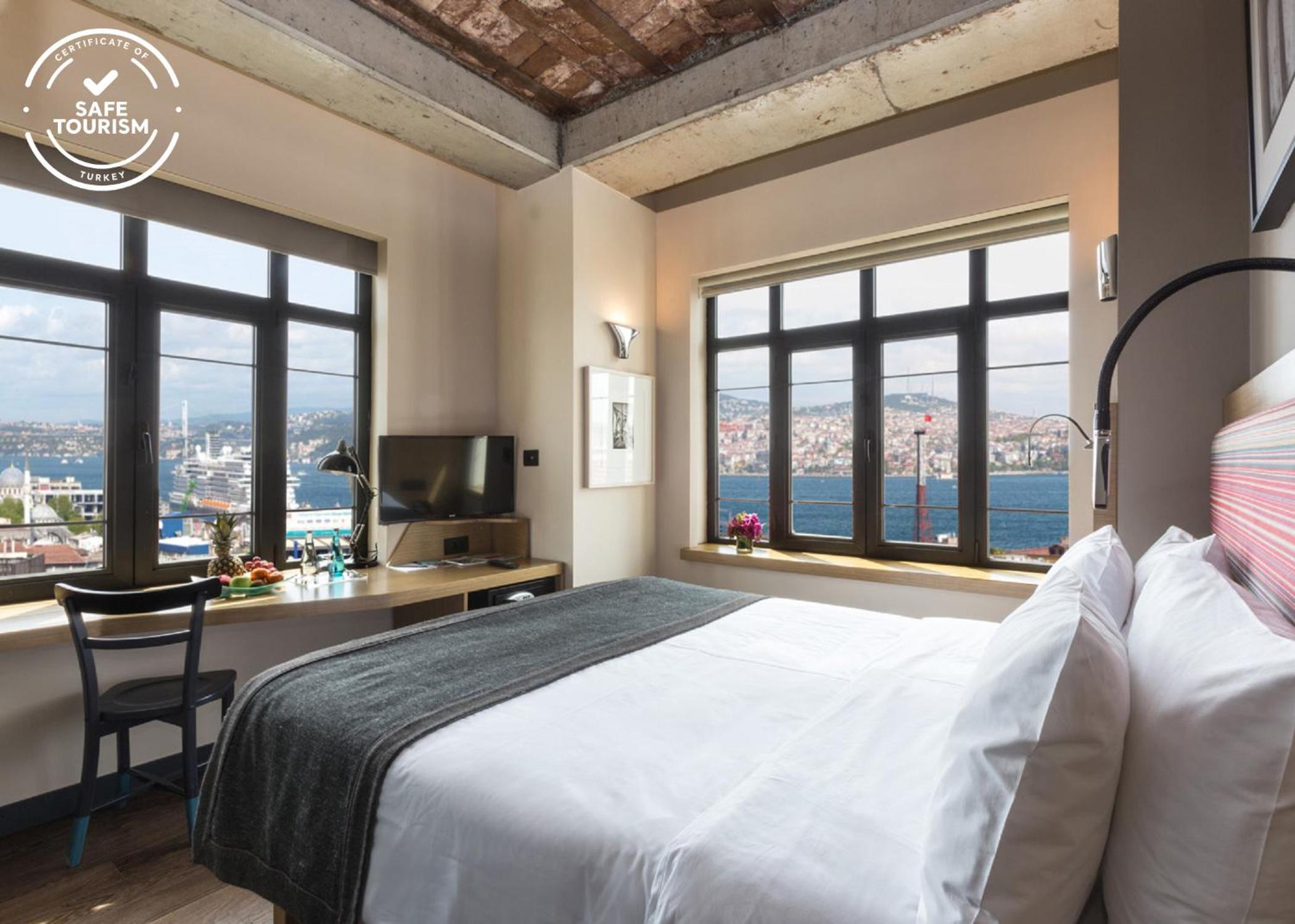Bankerhan Hotel, nestled in the heart of Galata, offers modern rooms with city views, flat-screen TVs, and stylish decor. Some rooms even boast terraces with garden views, ensuring a comfortable stay with all amenities.